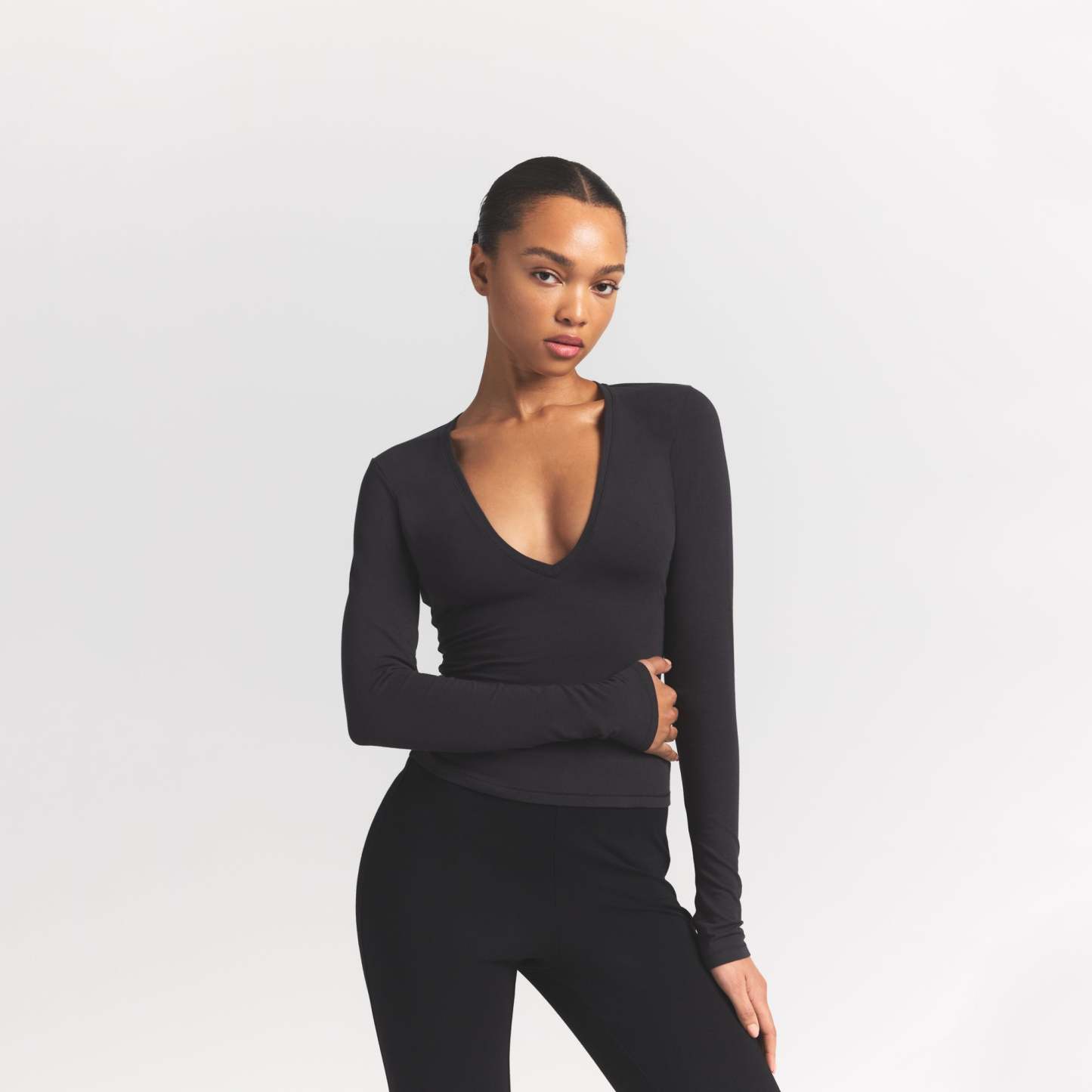 LONG SLEEVE PLUNGE TOP