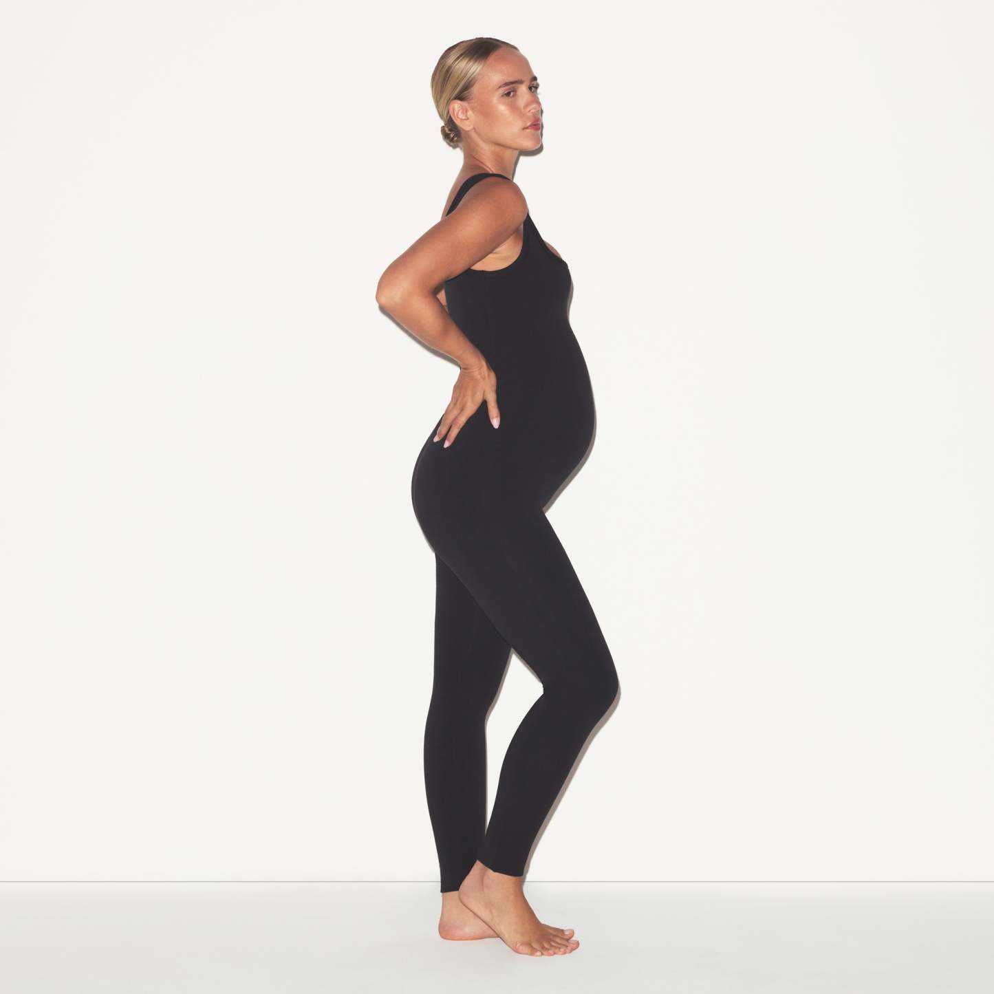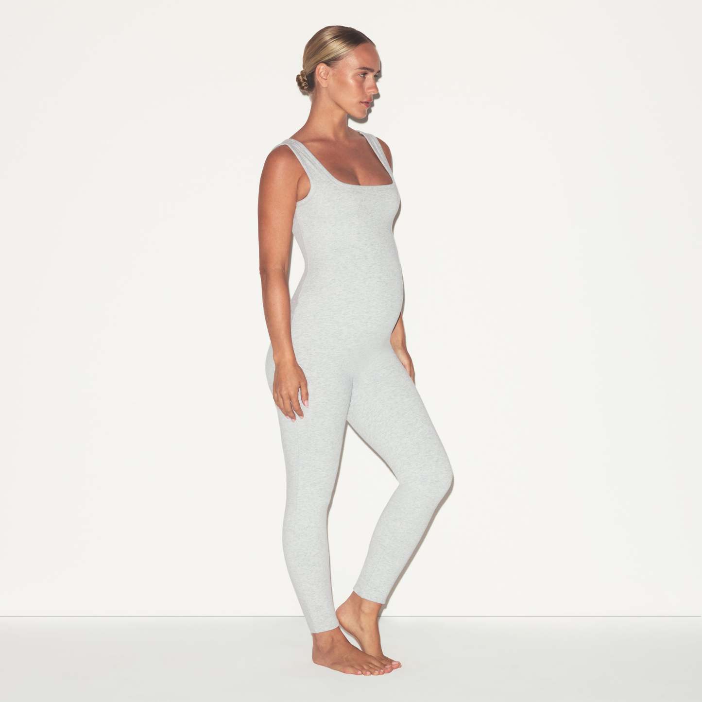 Your go-to one piece for every pregnancy stage. Designed in our soft and stretchy Cotton Jersey, this full-length solution features added room in the waist for your growing bump. Complete with rib detailing at the scoop neckline and a 100% cotton gusset. Fits true to size.