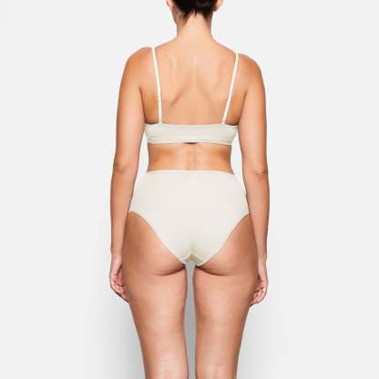 Front scoop neckline to provide subtle coverage, Pullover style (no hook and eye), Fully adjustable straps, Lined in self cotton jersey for softness, Soft elasticated band that provides light, comfortable support