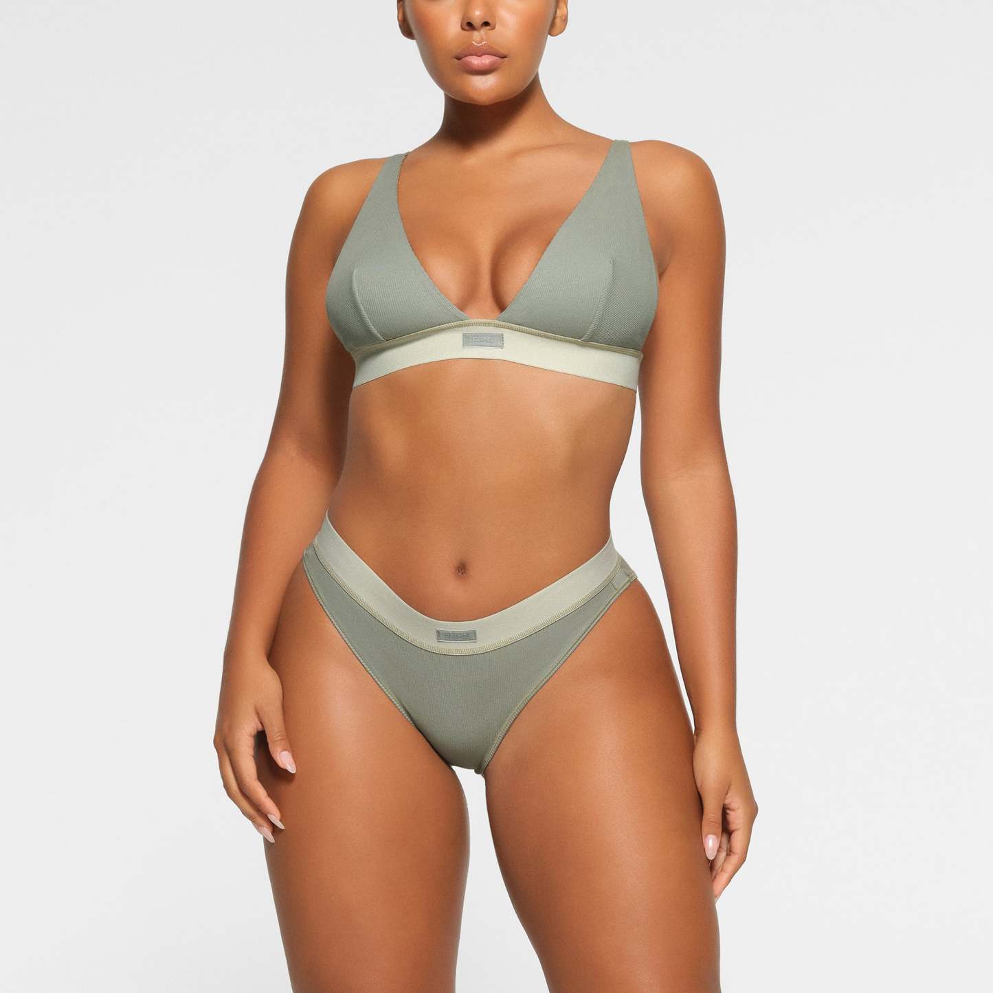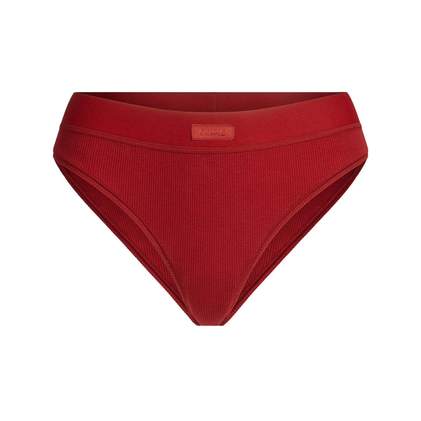 Cheeky back coverage, Soft exposed elastic waistband, SKIMS logo label at center from waistband, 100% Cotton gusset