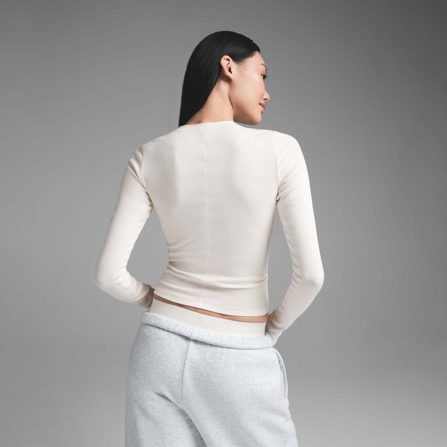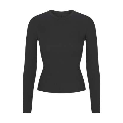 Complement every curve in this stretchy, ultra-flattering long sleeve tee. Made with our selfie-worthy ribbed cotton, this breathable shirt is comfortable for everyday wear. Style alone or as a layering piece. Fits true to size.