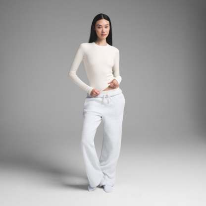 - Crew neckline, Long sleeves, Jersey neckline binding and jersey cuff, Center back jacquard label, Standard length