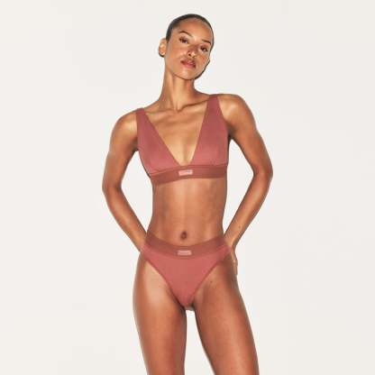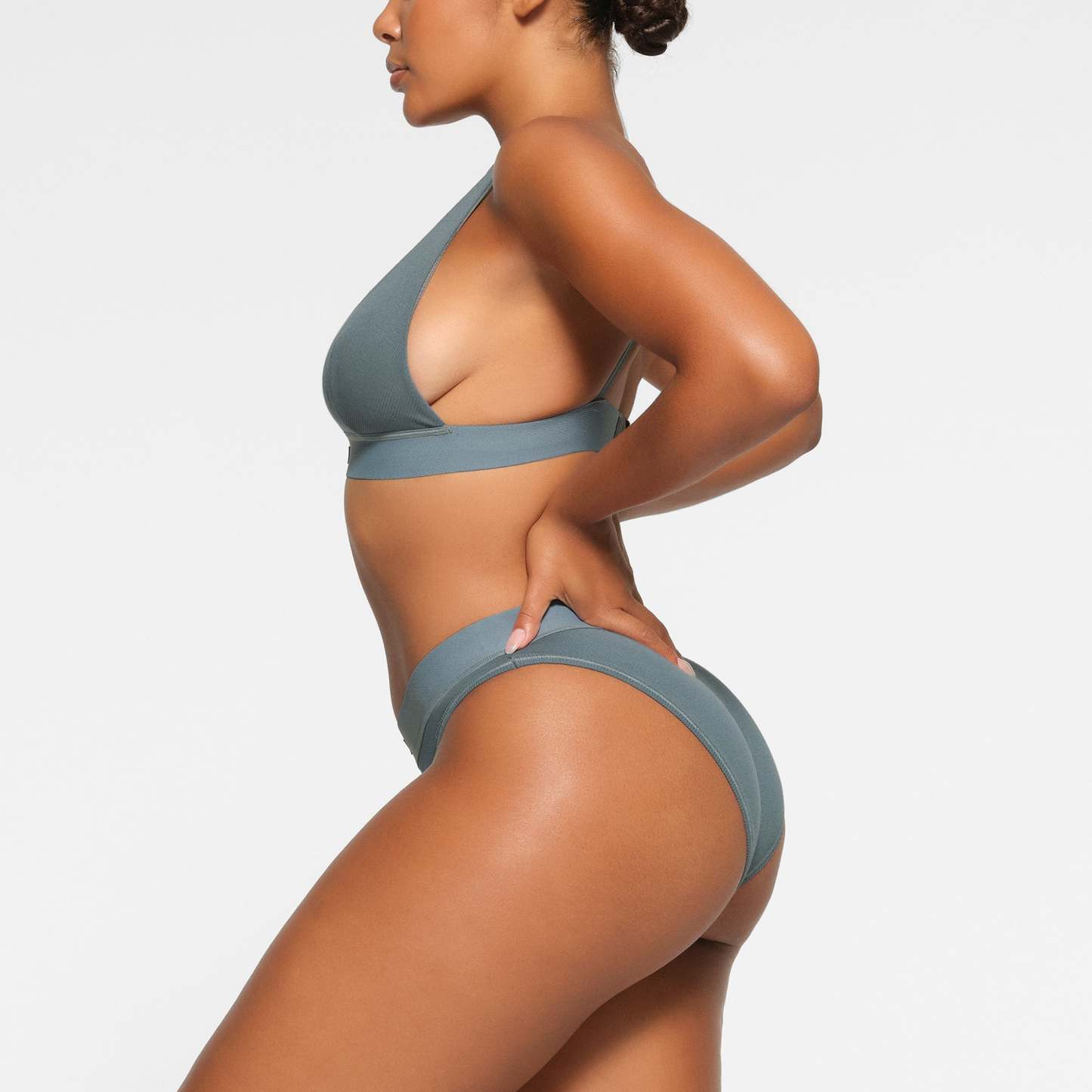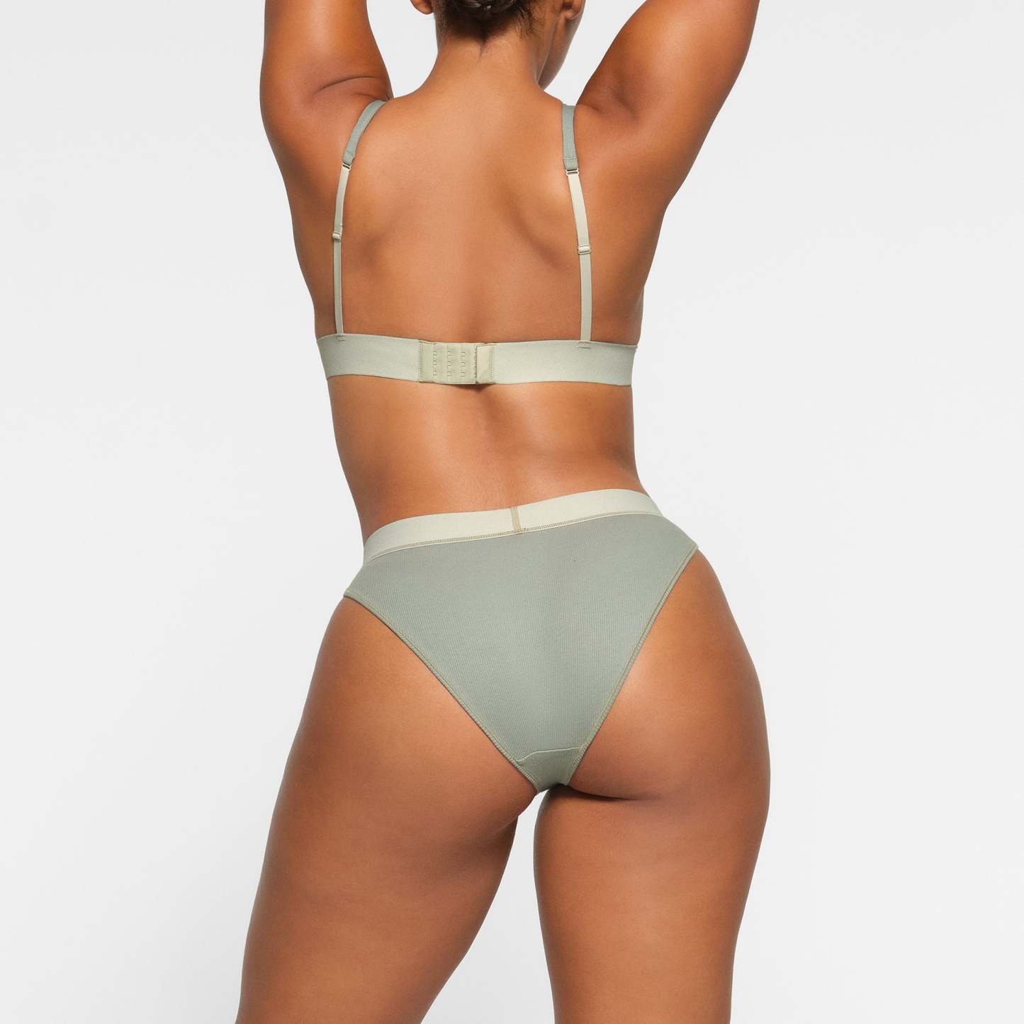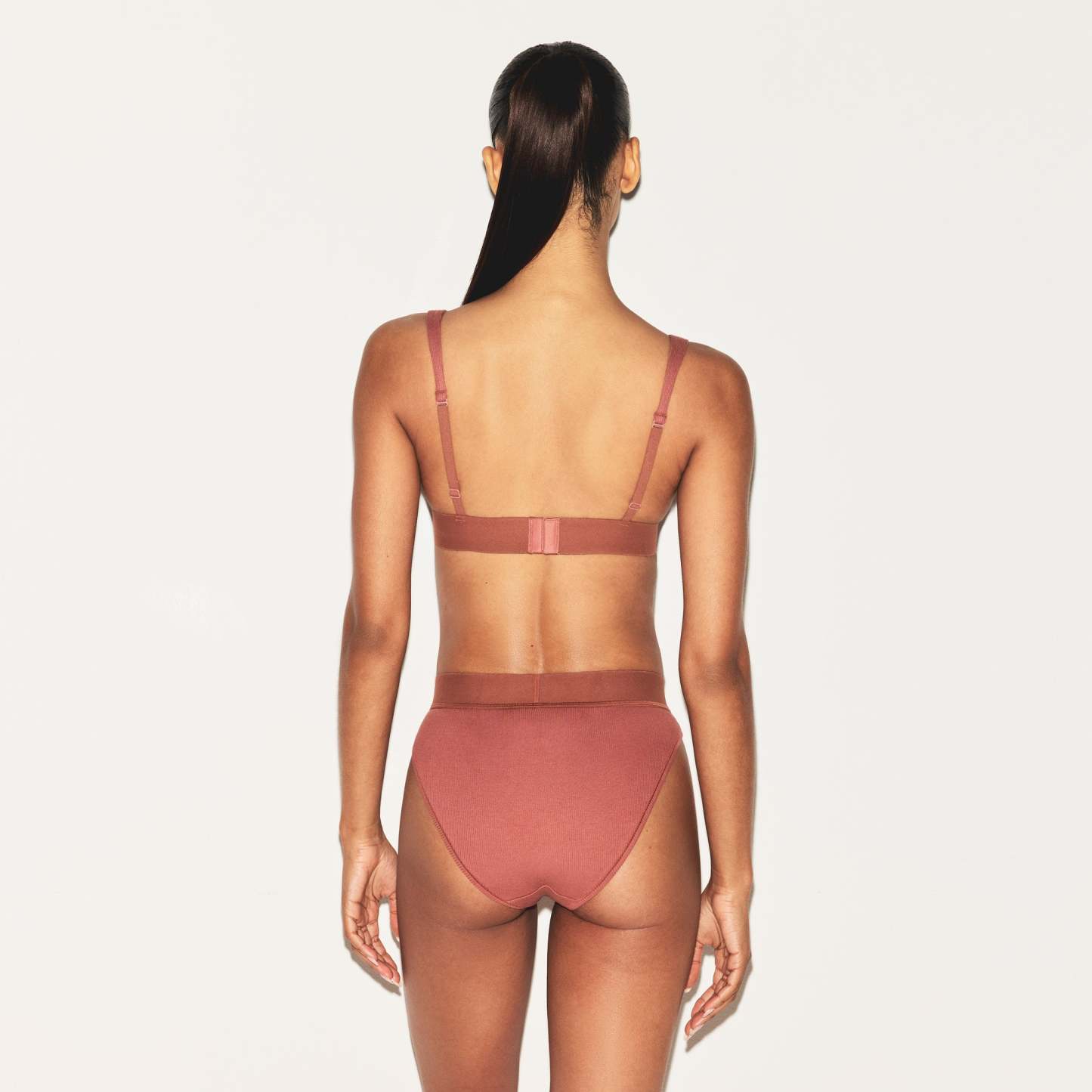 Amina is size 2, 34B, and 5’ 8" (173 cm), wearing SKIMS S