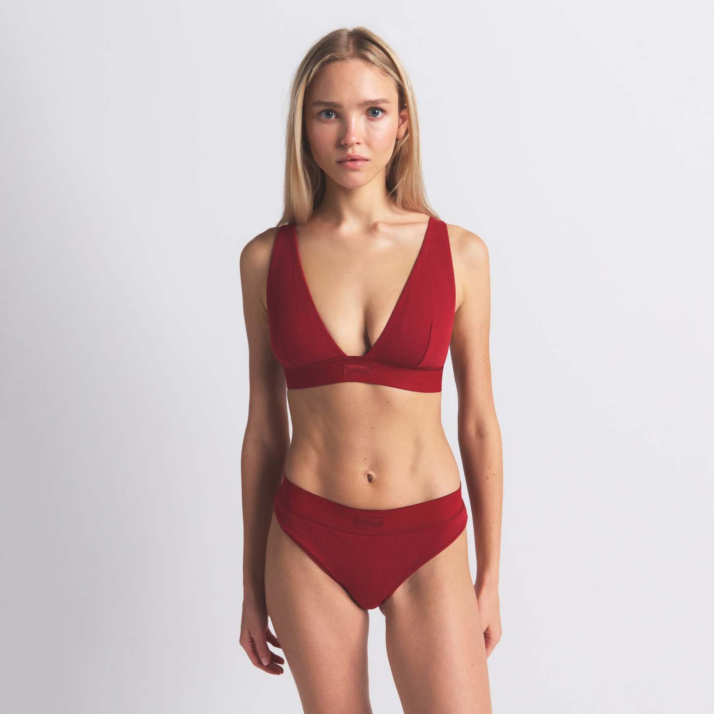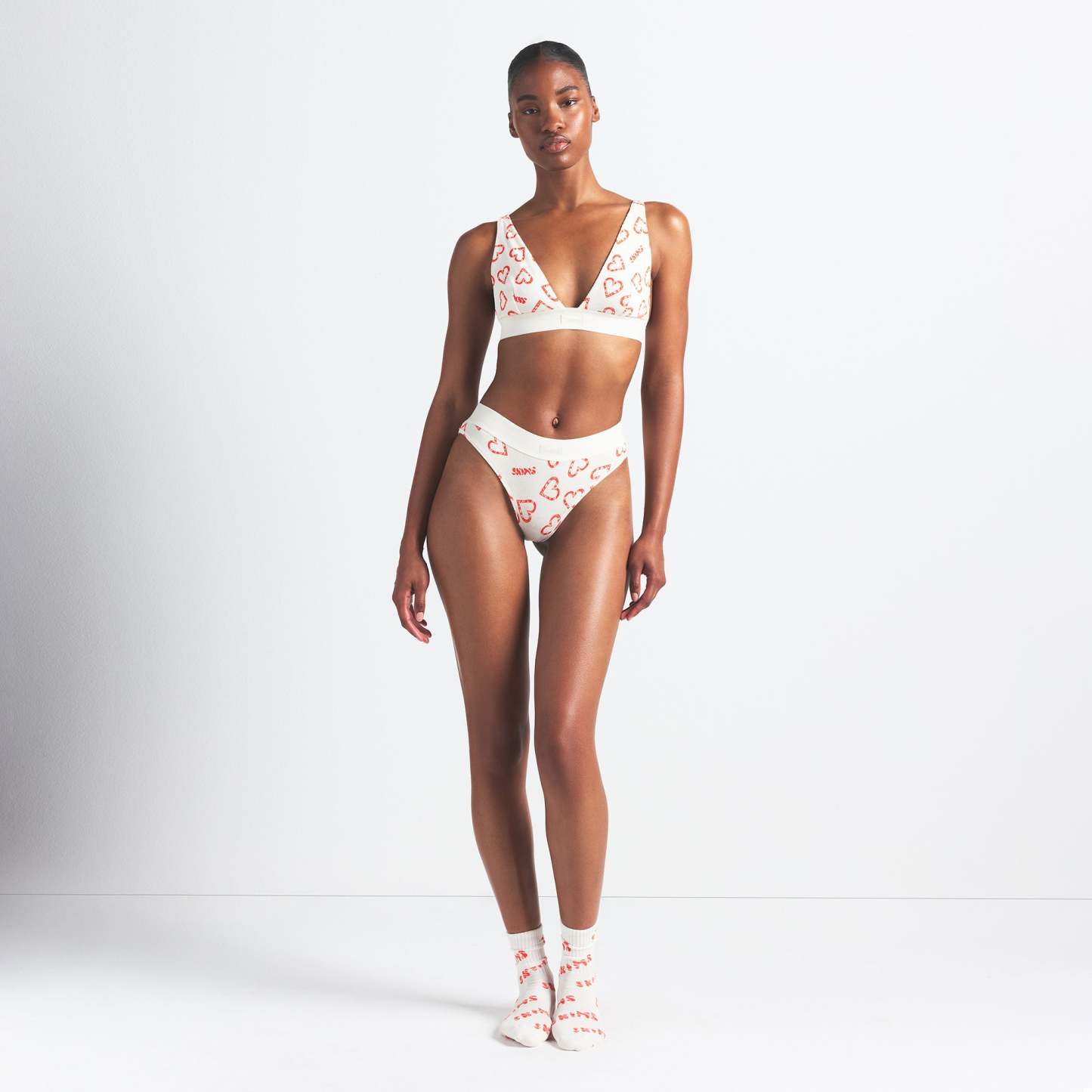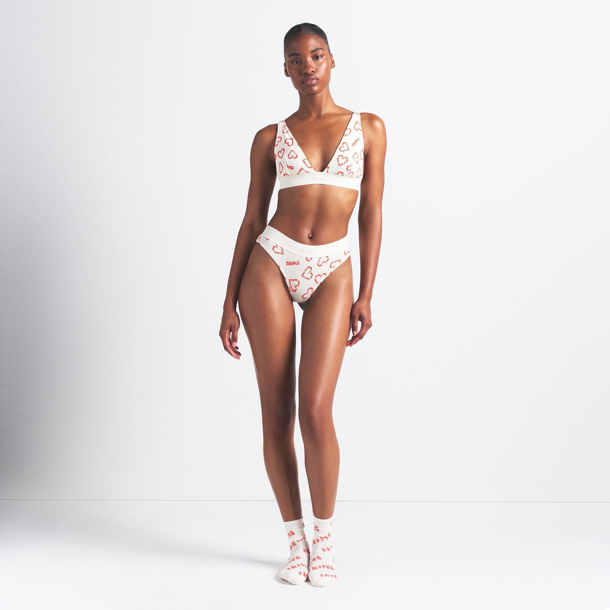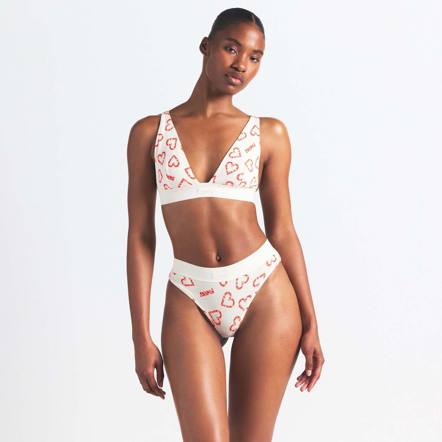 Amina is size 2, 34B, and 5’ 8" (173 cm), wearing SKIMS S