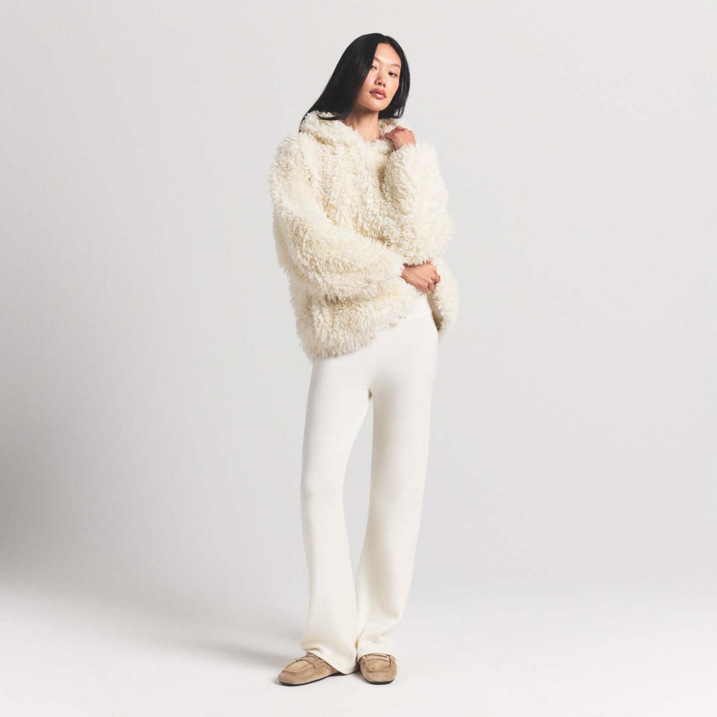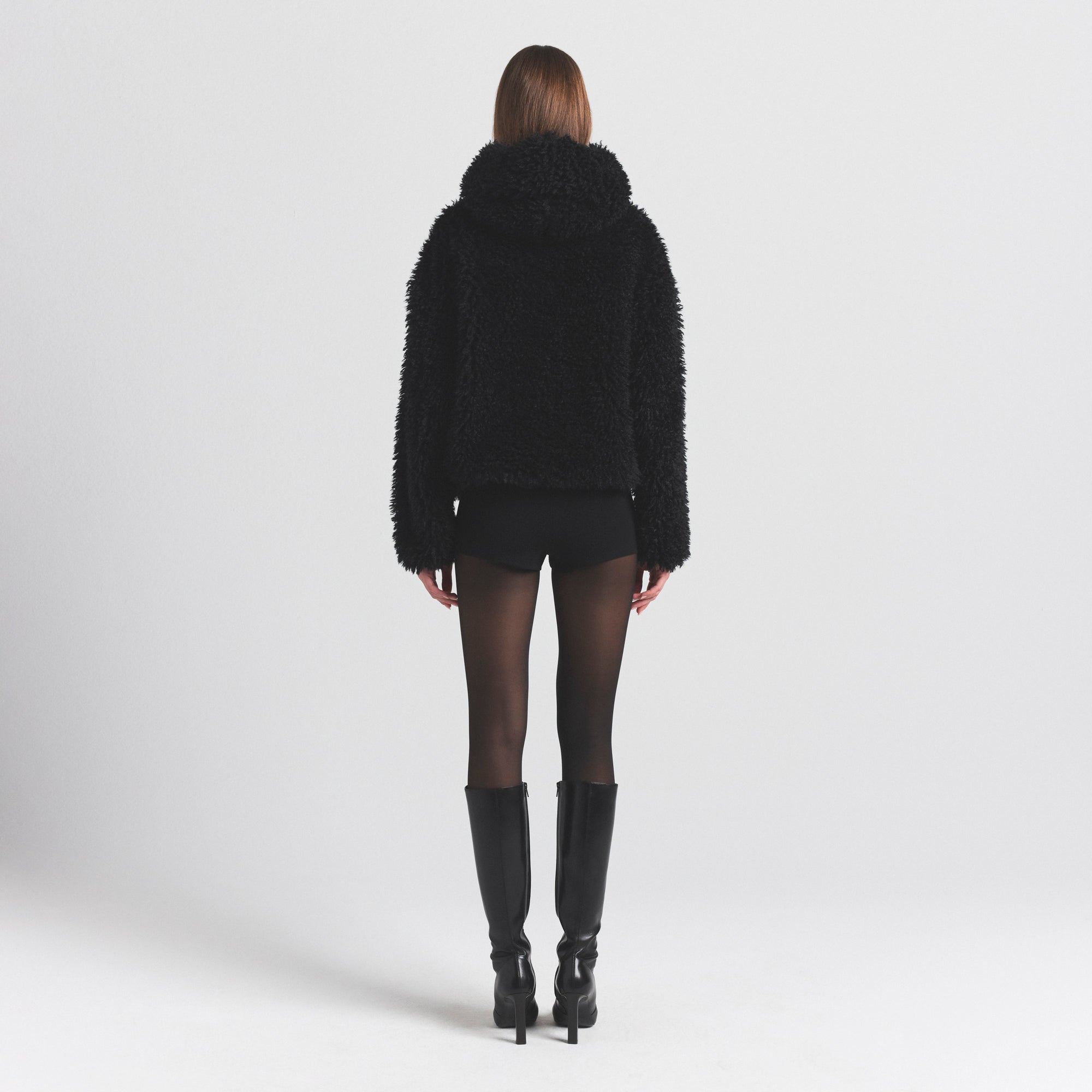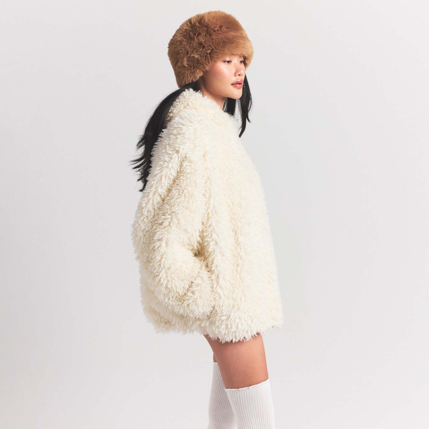 Peak cozy, incoming. This fluffy faux-fur hoodie has an ultra-plush feel and a soft jersey lining for total comfort inside and out. Features an oversized cut with an adjustable bungee hem, drop shoulders, and a side-pocket design.