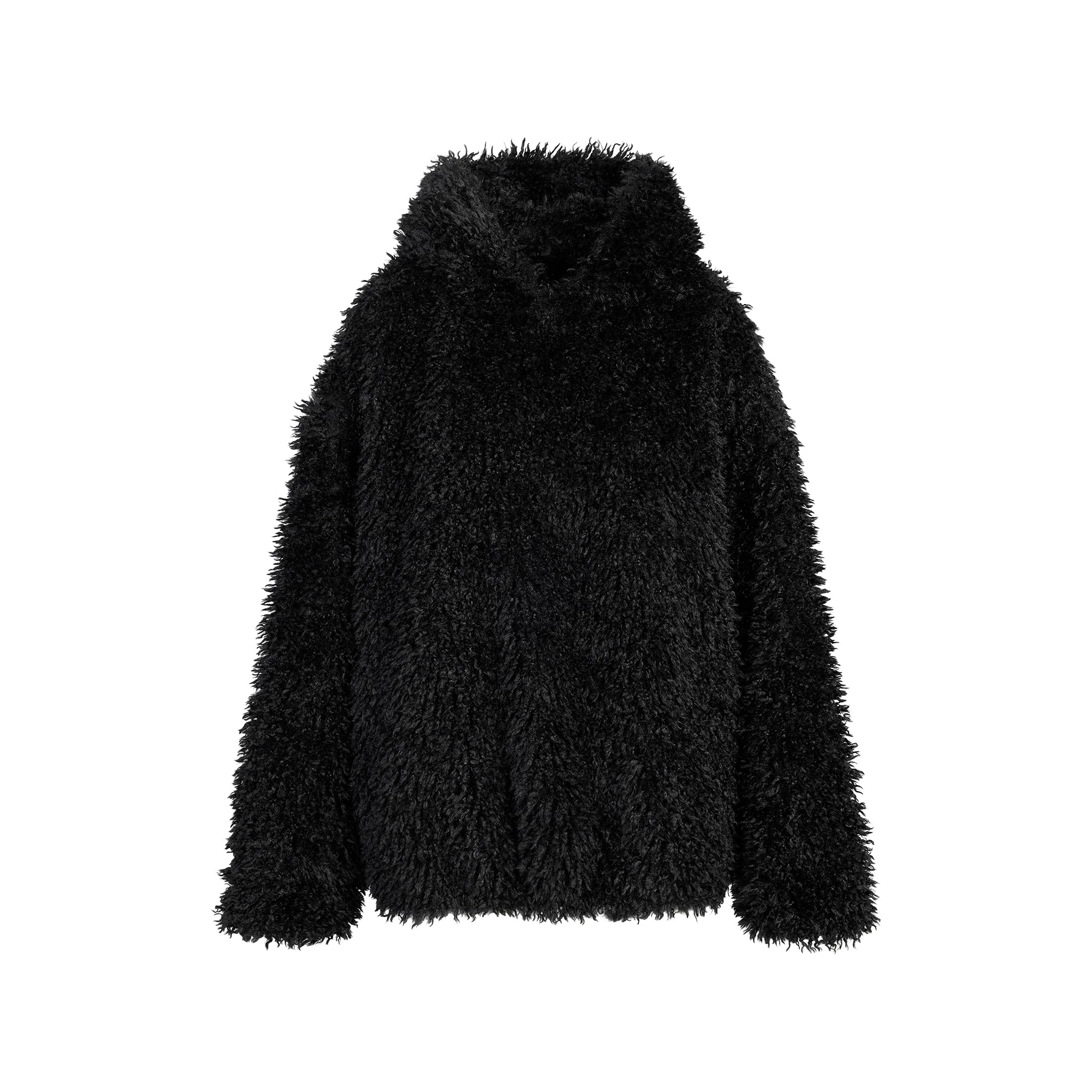 Peak cozy, incoming. This fluffy faux-fur hoodie has an ultra-plush feel and a soft jersey lining for total comfort inside and out. Features an oversized cut with an adjustable bungee hem, drop shoulders, and a side-pocket design.