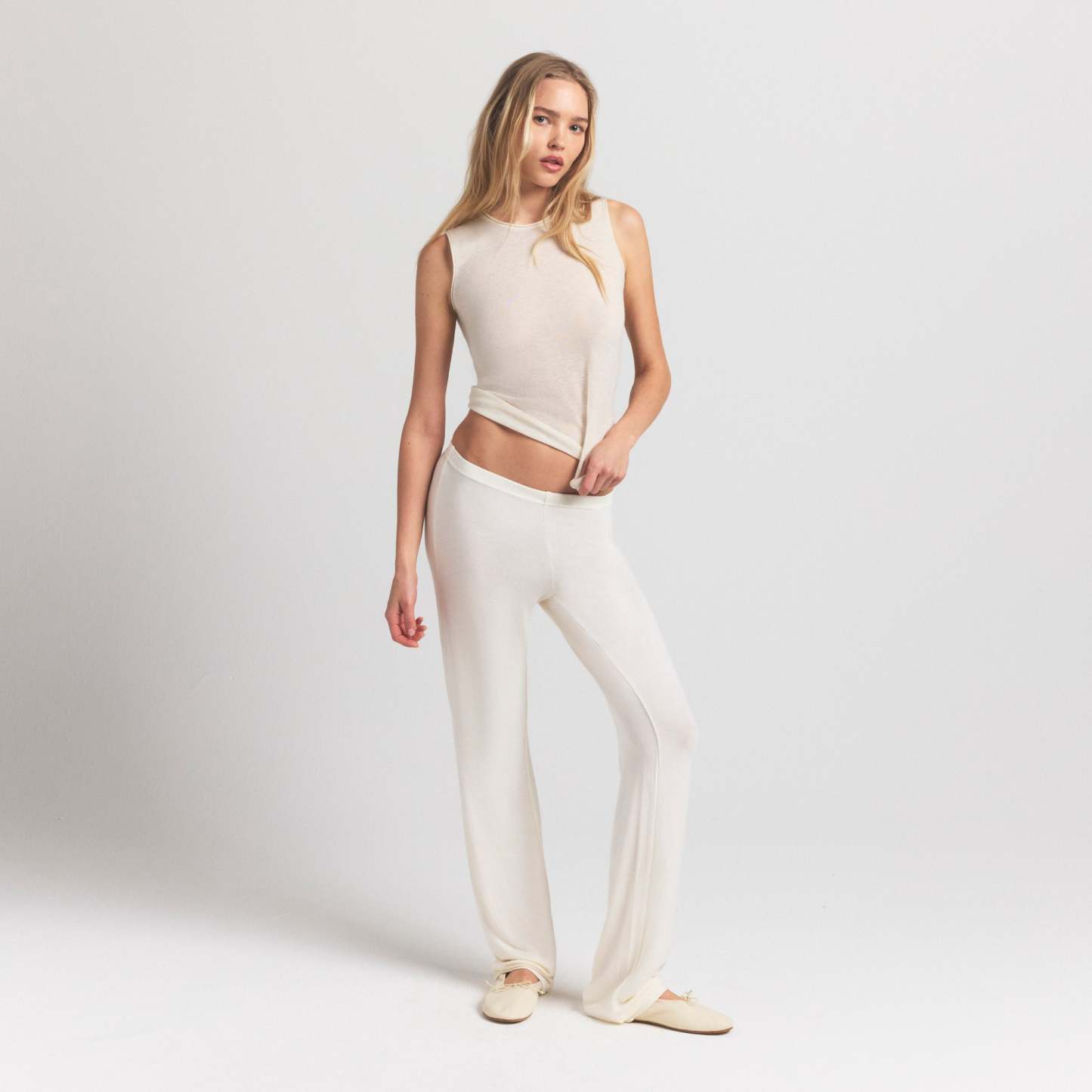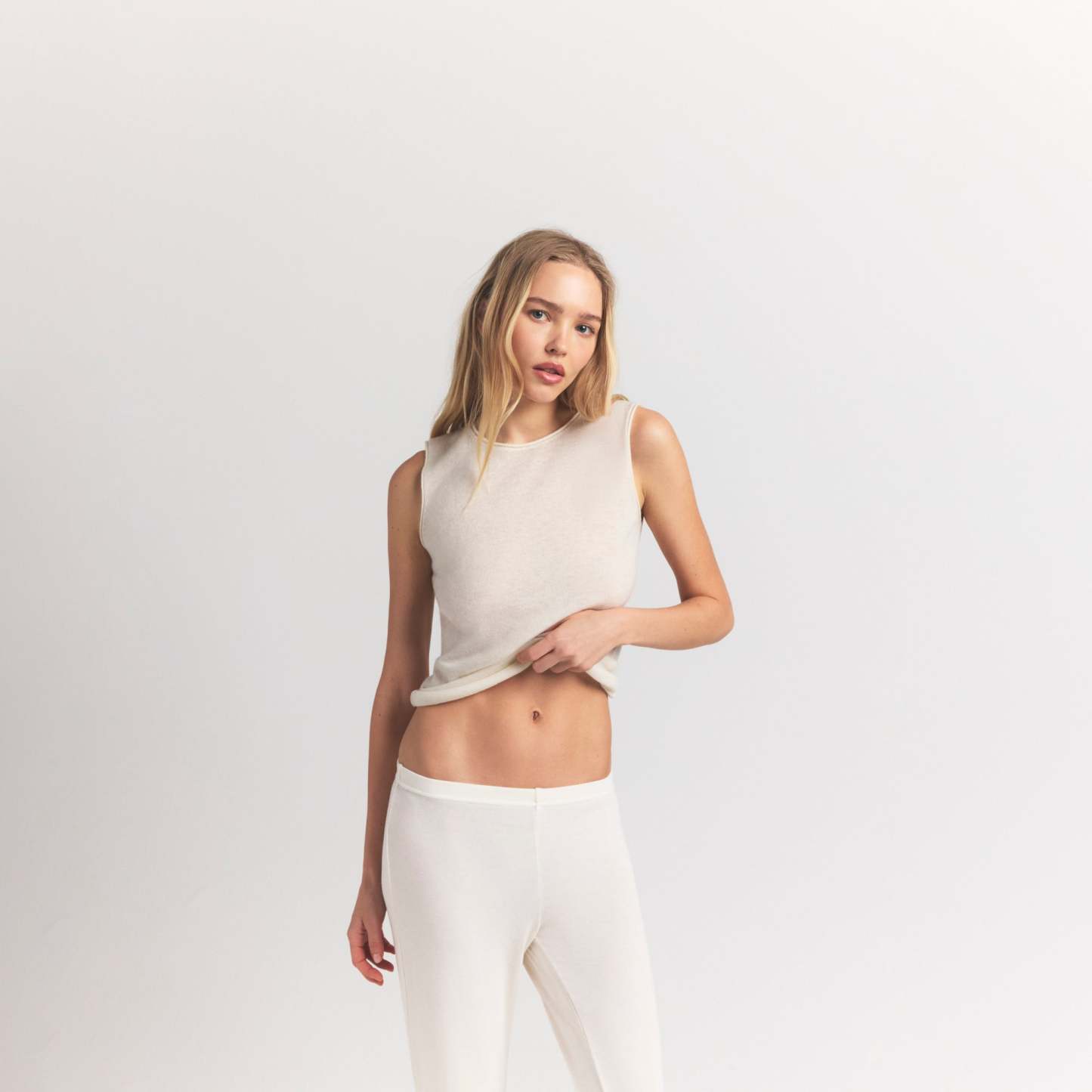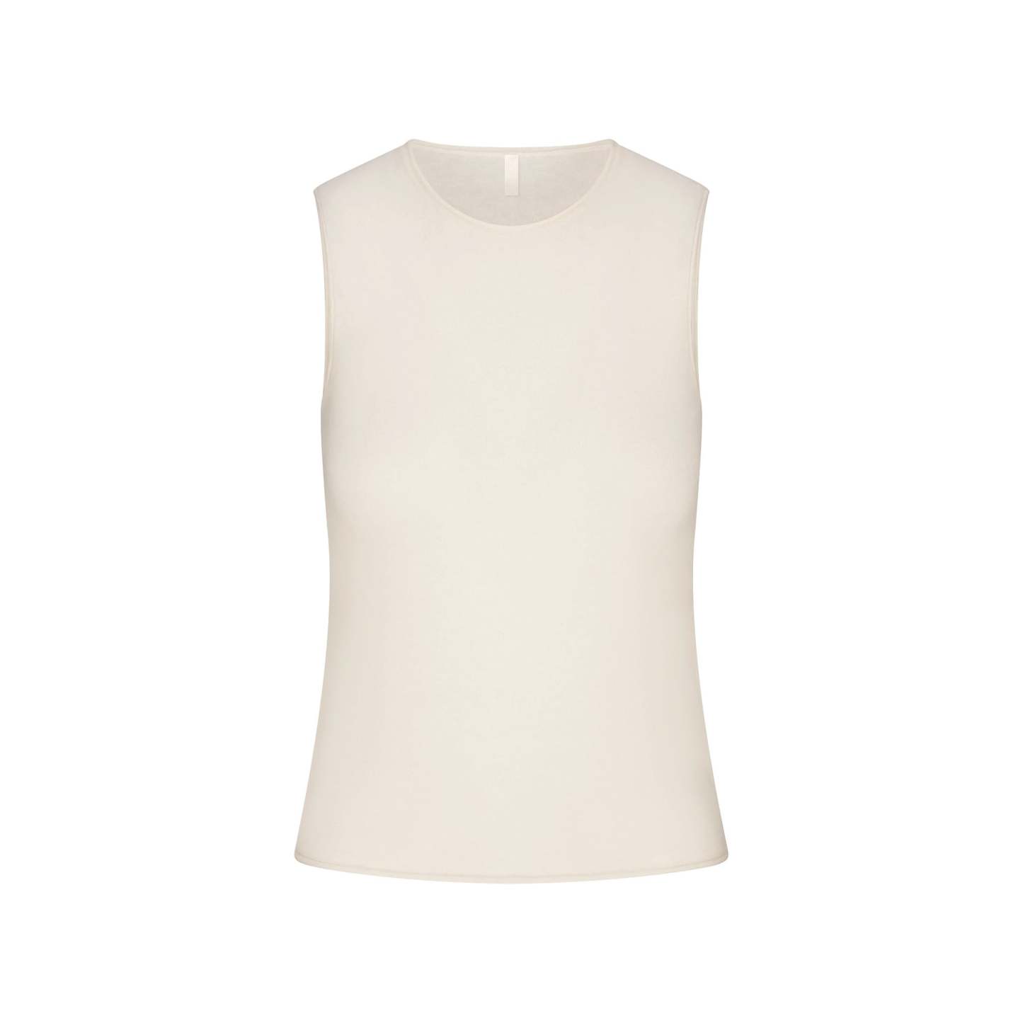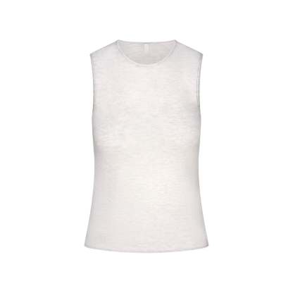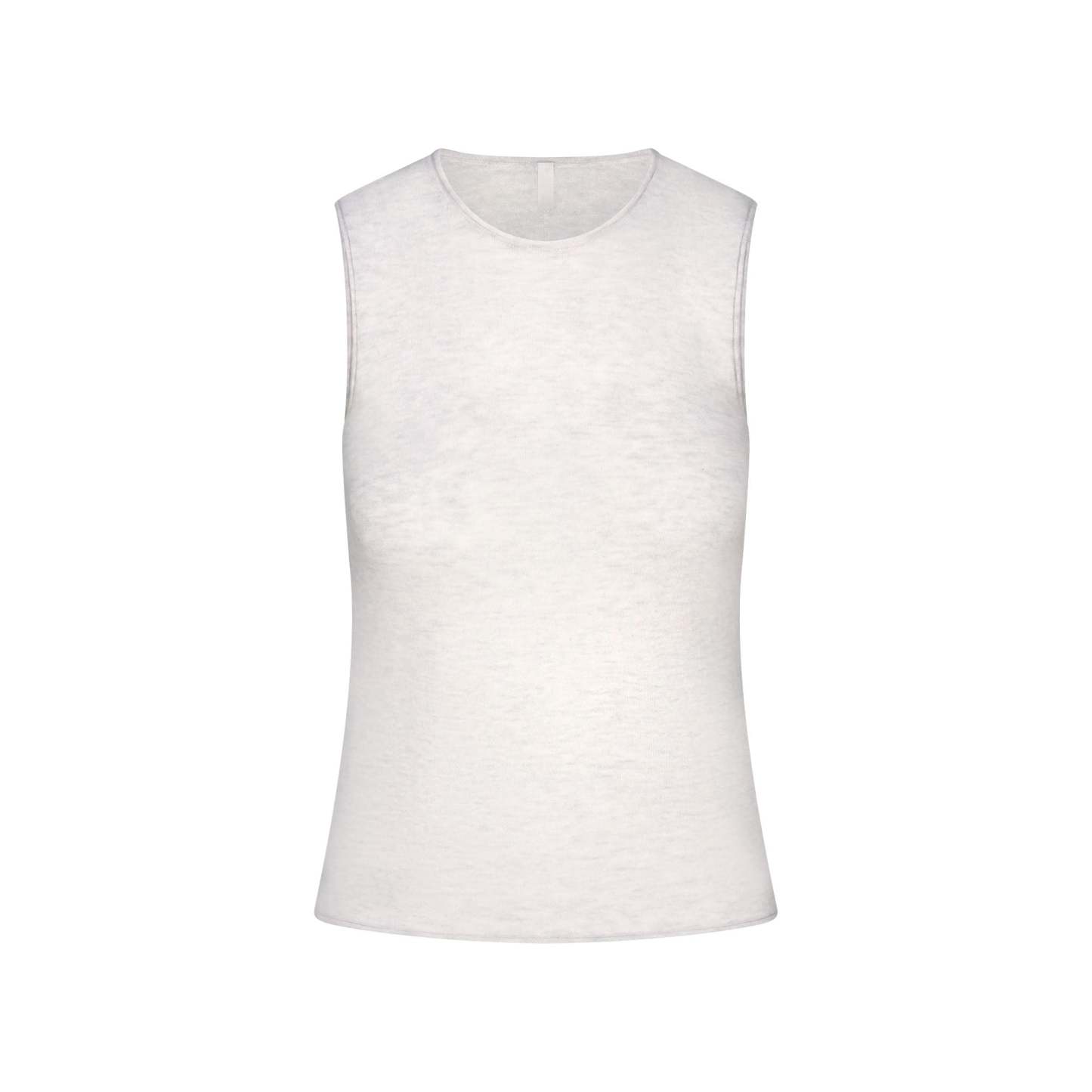 Refined, polished style. This semi-sheer sleeveless top is your-go to layer for luxe comfort, designed in our lightweight, 100% Grade A Cashmere. Features a crew neckline and rolled edge details.