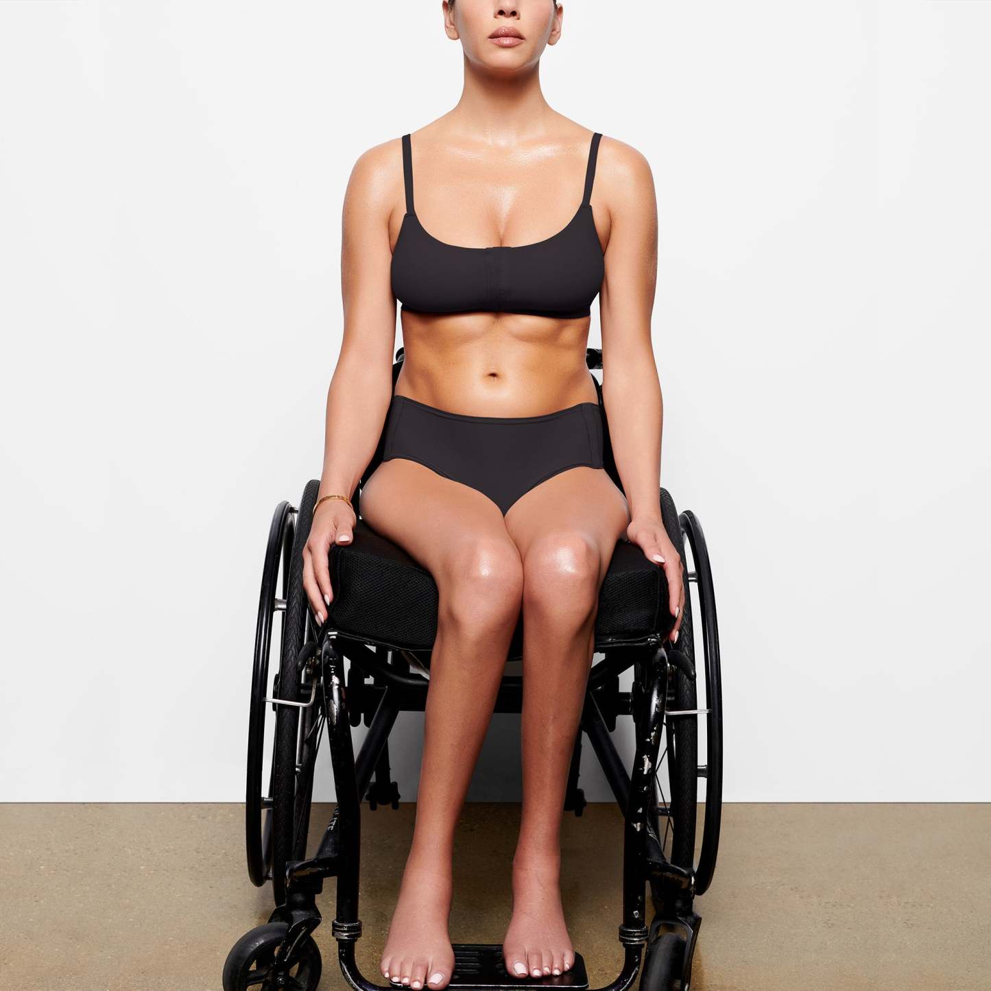 Haleigh is size 4 and 5’ 6” (168 cm), wearing SKIMS S