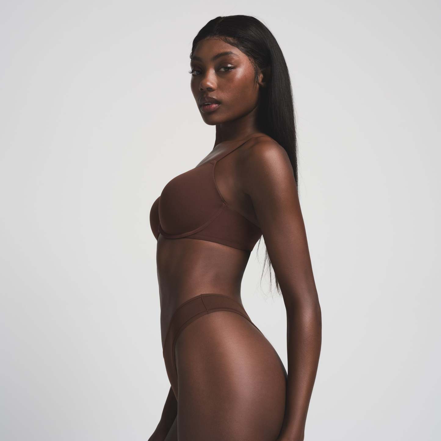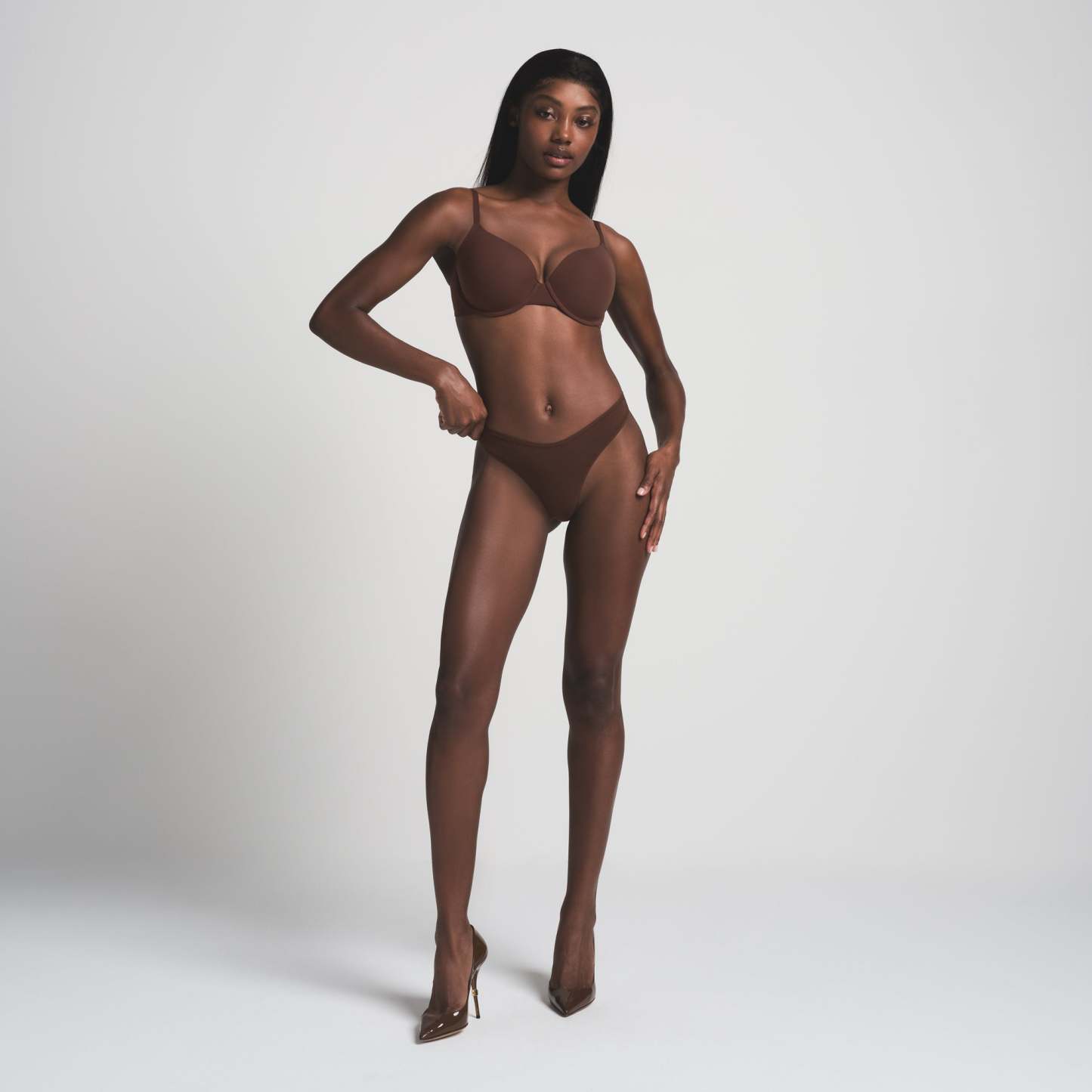 Eden is size 2, 32DD, and 5' 9" (175 cm), wearing SKIMS S
