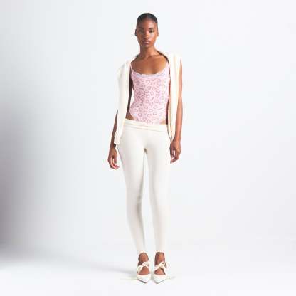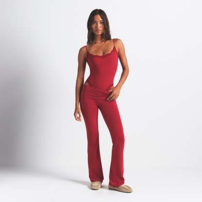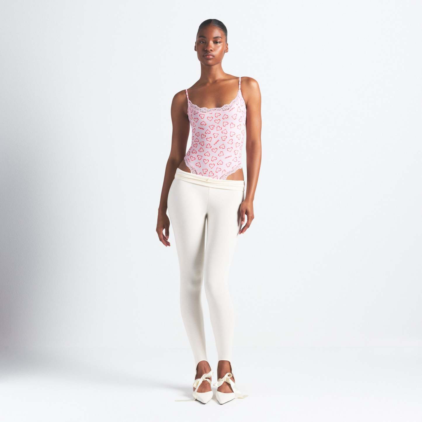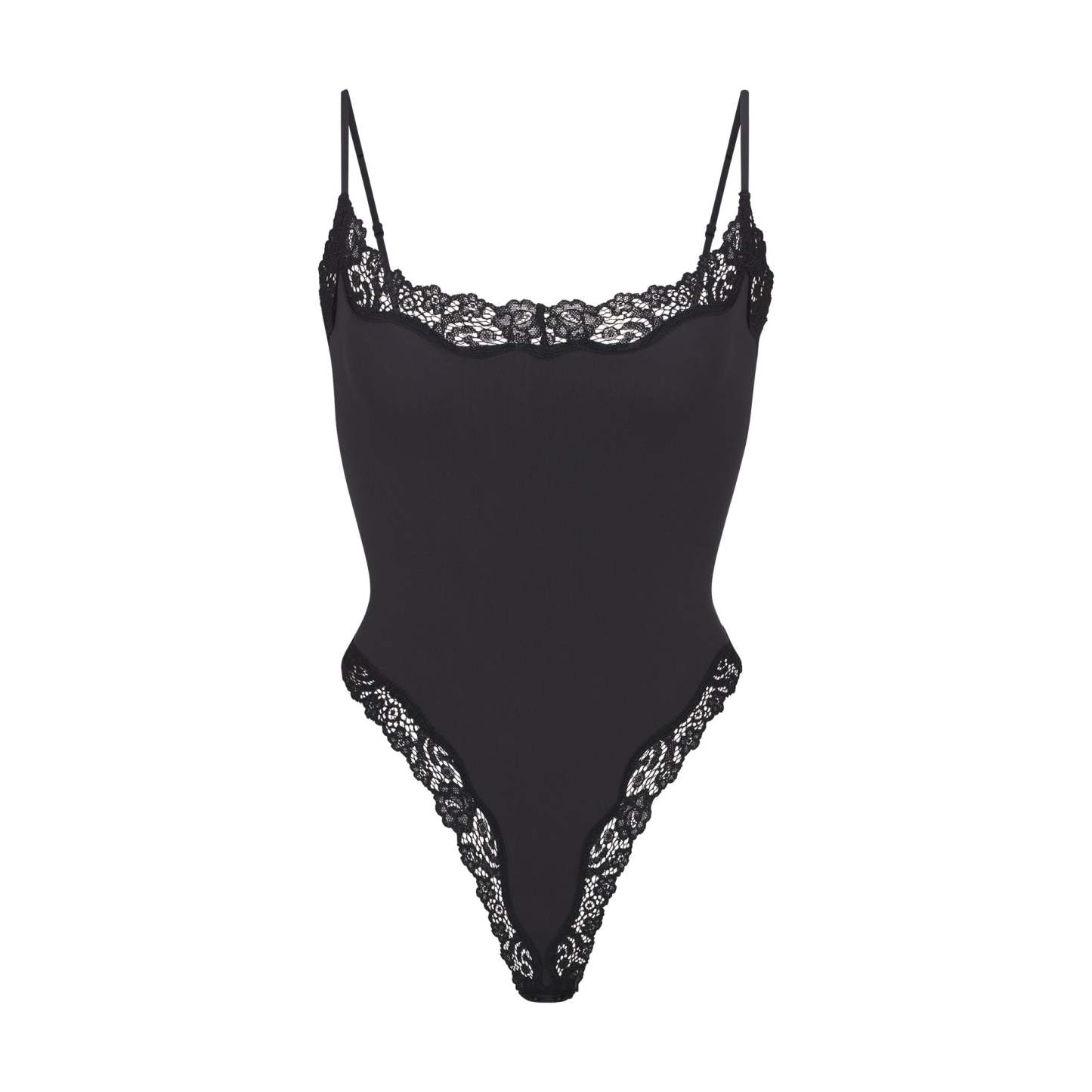 Buttery-soft and ultra-flattering, this romantic stretchy lace trim bodysuit is a must-have. Features a scoop front neckline, adjustable straps, and a 100% cotton gusset with snap closure. Fits true to size.