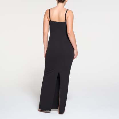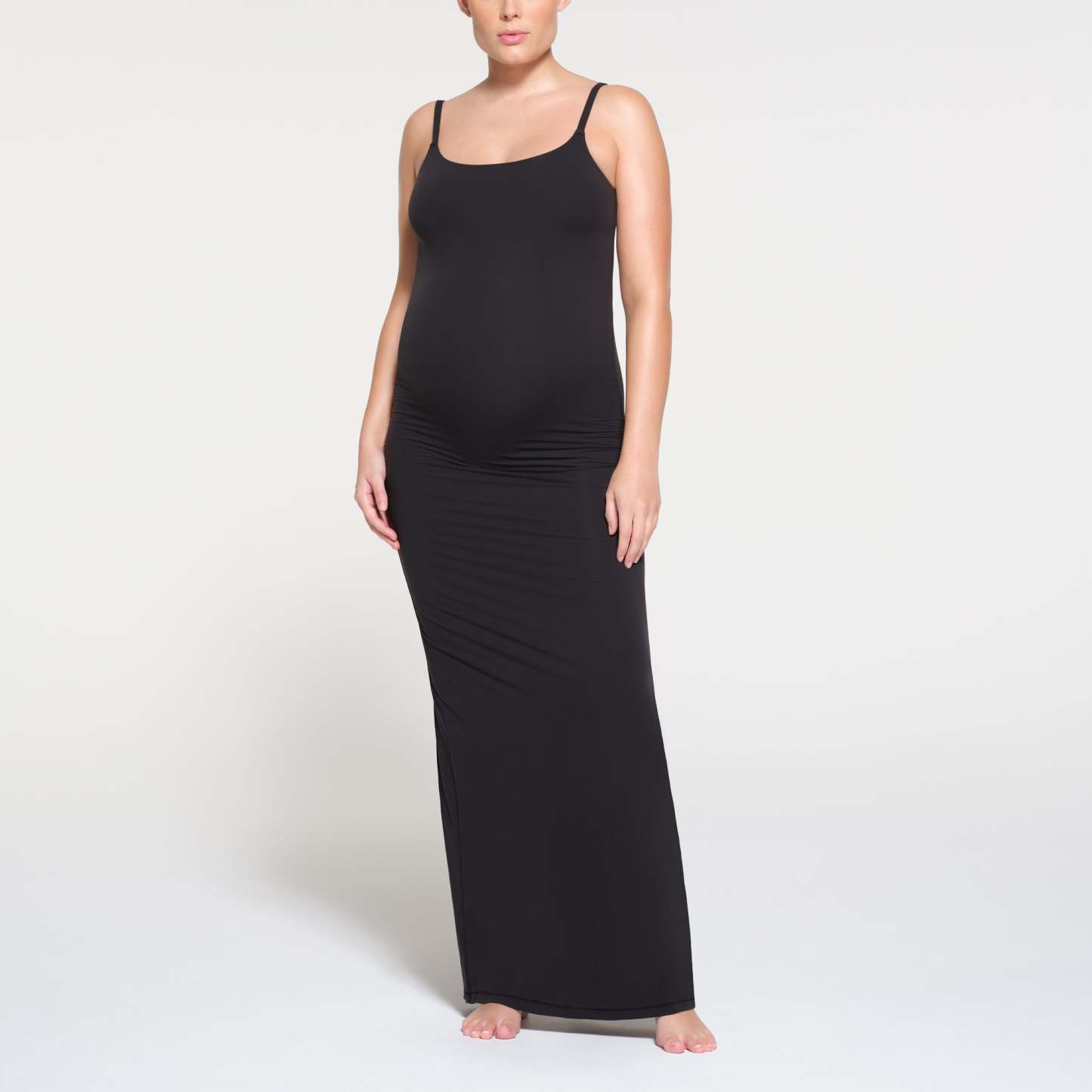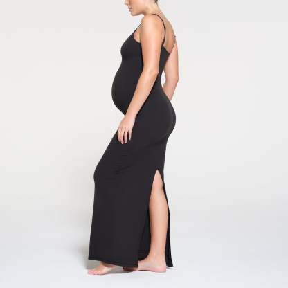 Embrace your glow in this bump-boasting slip dress. Made with our buttery, curve-enhancing fabric, this full-length style comfortably stretches to your growing belly and never loses shape for the perfect fit every time. The built-in shelf bra with underbust elastic and 2-ply construction offers added support. Features a flattering scoop neck, adjustable cami straps, and a center back slit for comfort and ease. Fits true to size.