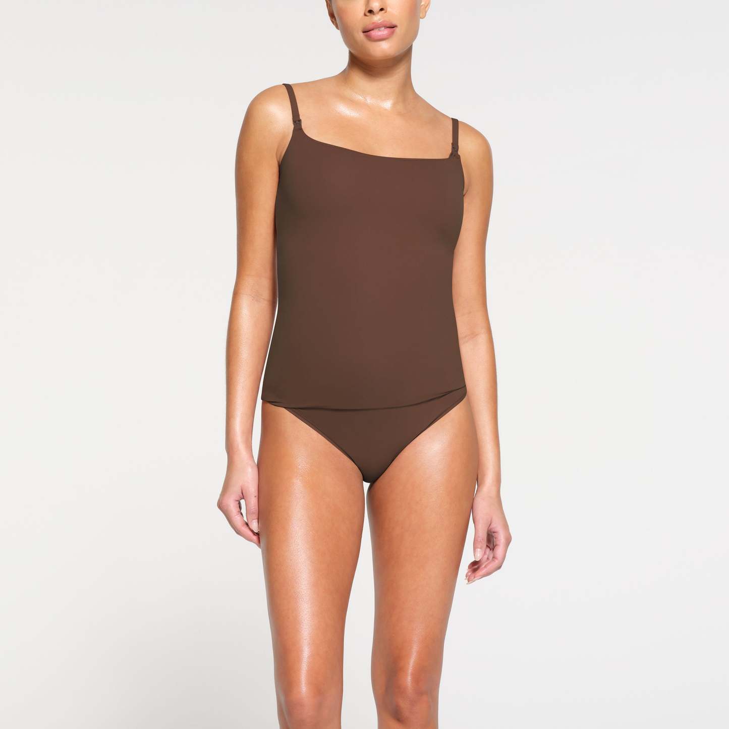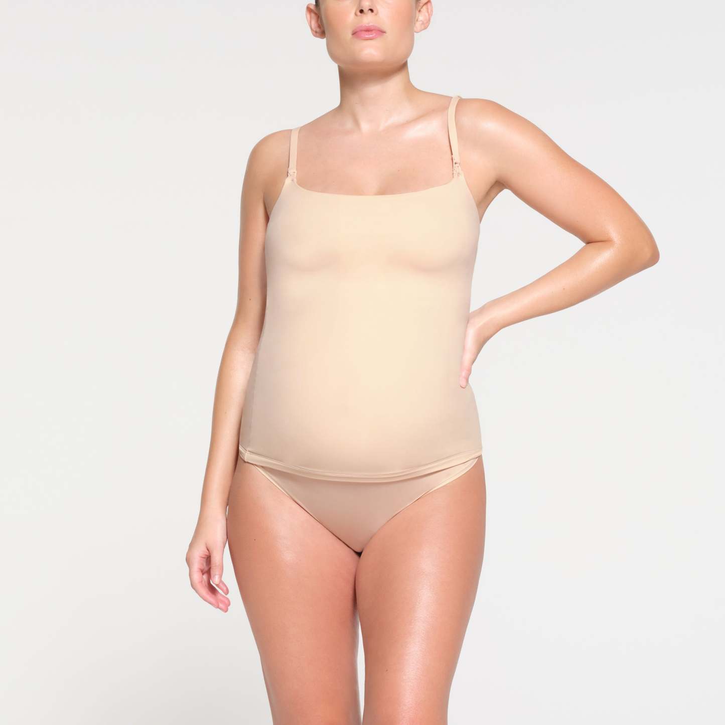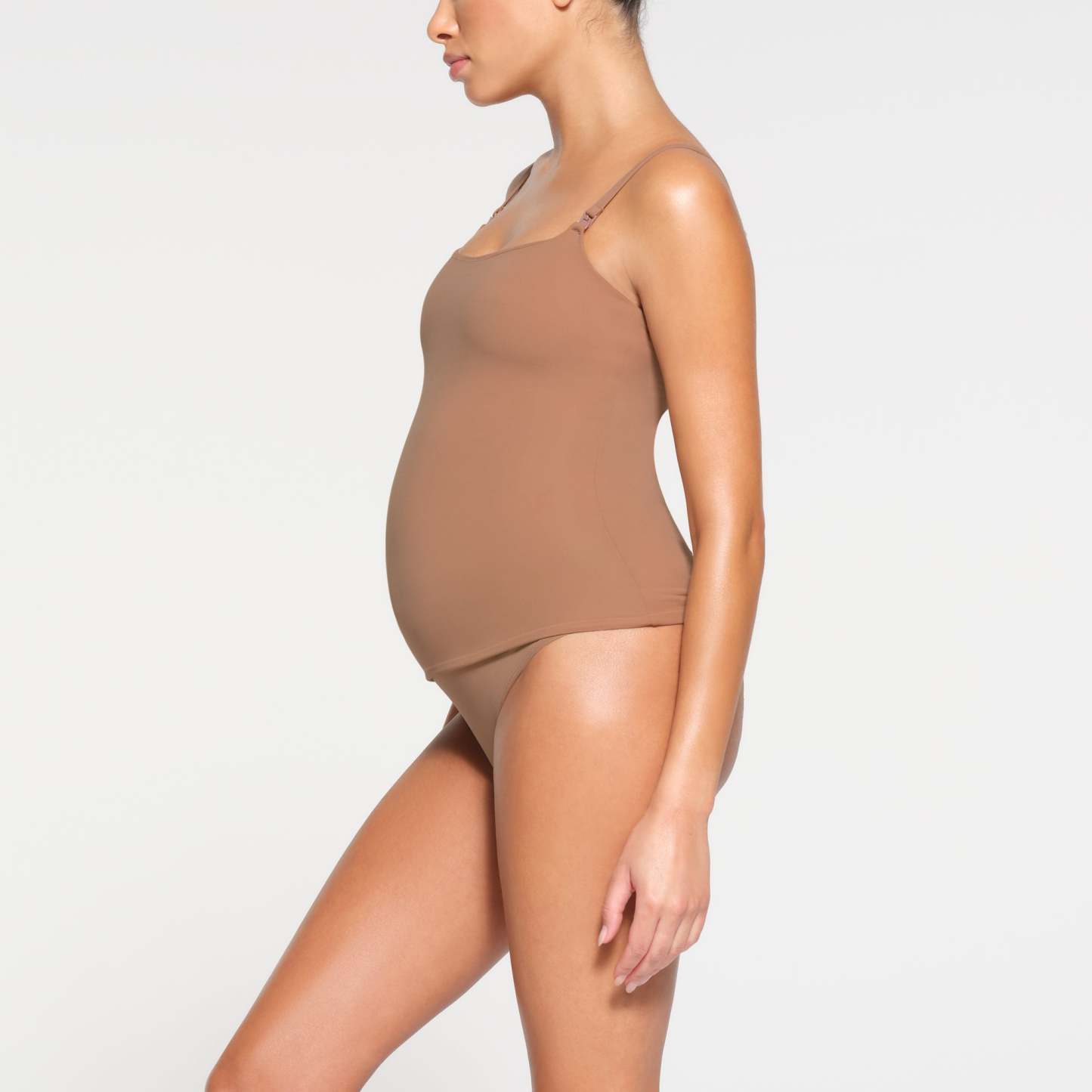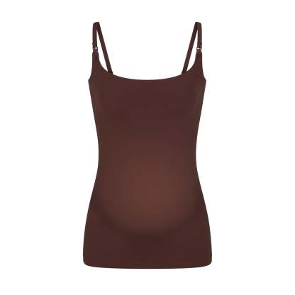 This scoop neck tank is made with our signature buttery-soft fabric that stretches to twice its size and has a 2-ply construction. Features clasps at the adjustable front straps to unhook for easy nursing and pumping. The built-in shelf bra with elastic at the underbust and additional side fabric provide extra comfort and support. Fits true to size.