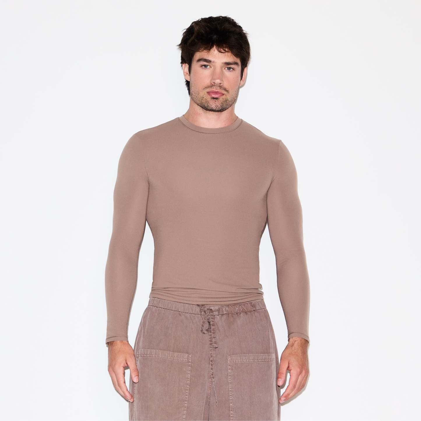 - Crew neckline, Long sleeves, Fits tight to body, Standard length