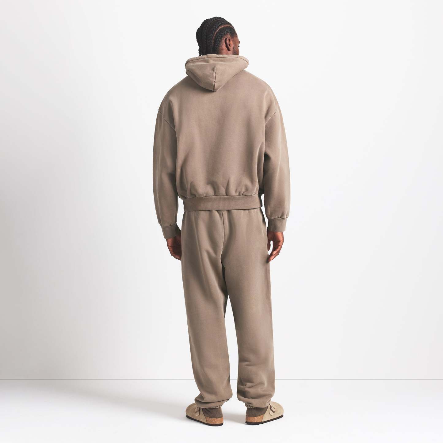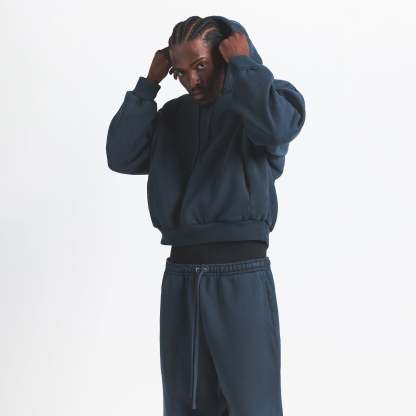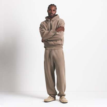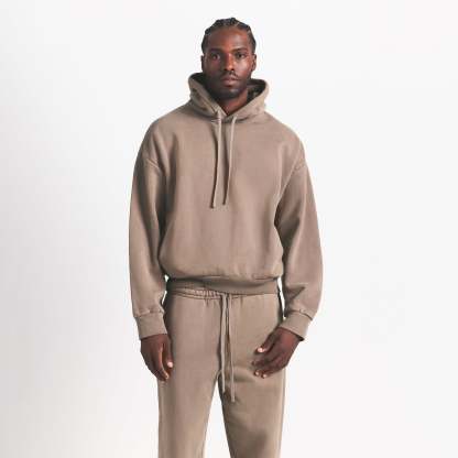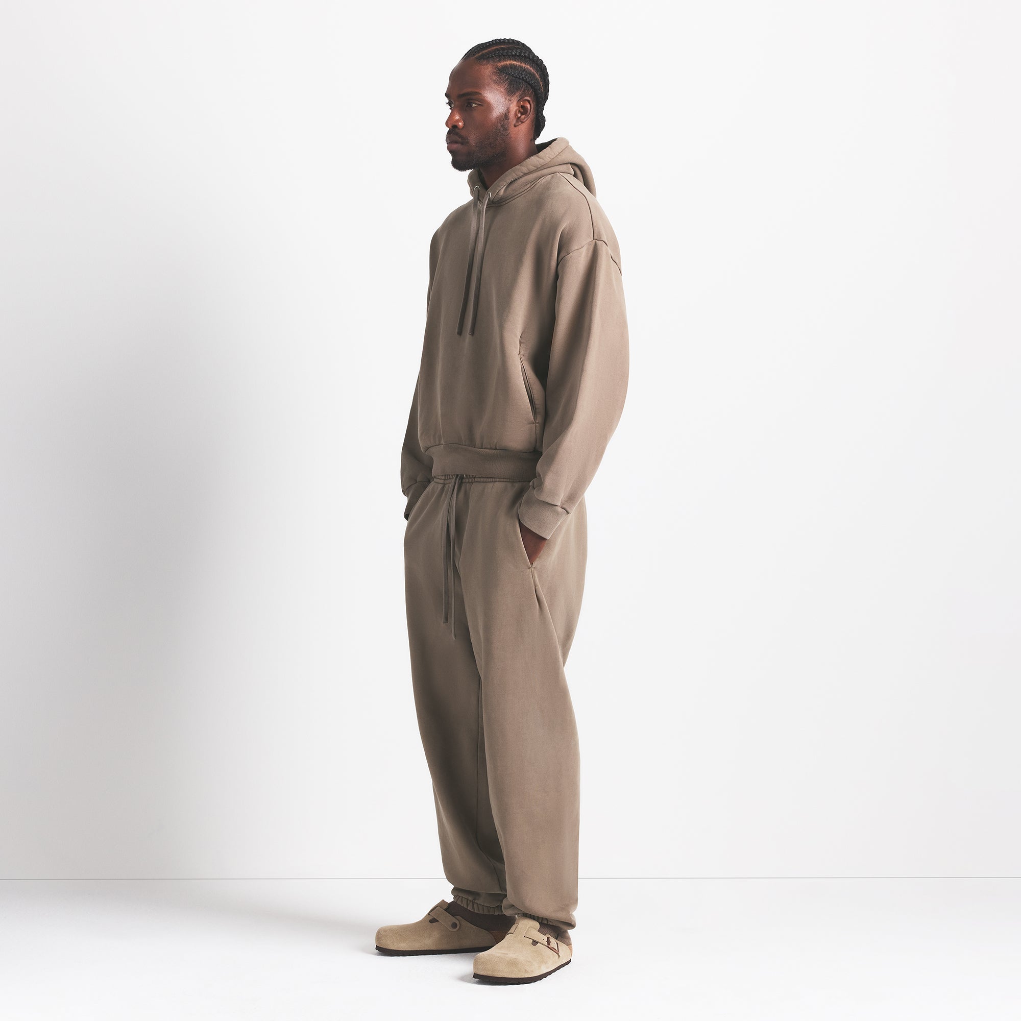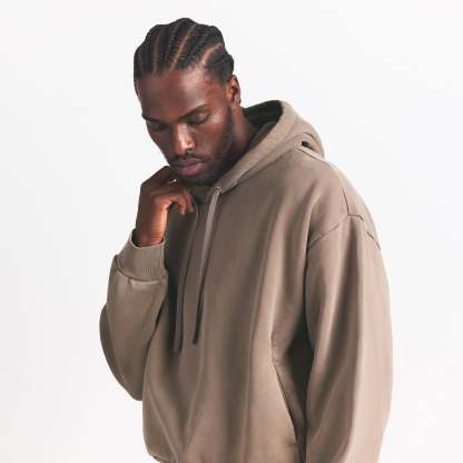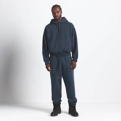 - Relaxed fit, Pullover hoodie, Drawcord for adjustability, Dropped shoulders, Darted pocket, Rib cuff and hem, Branded leather patch