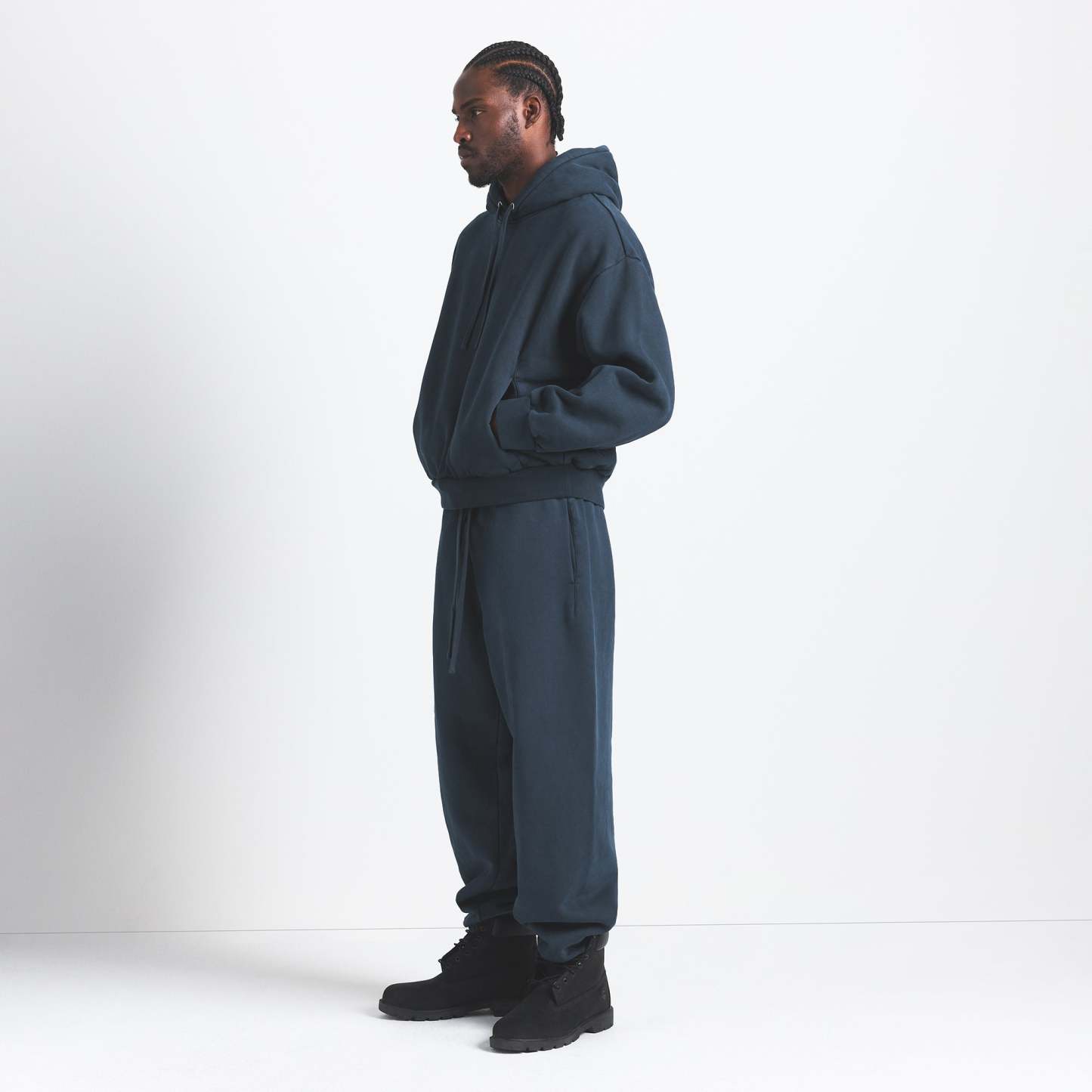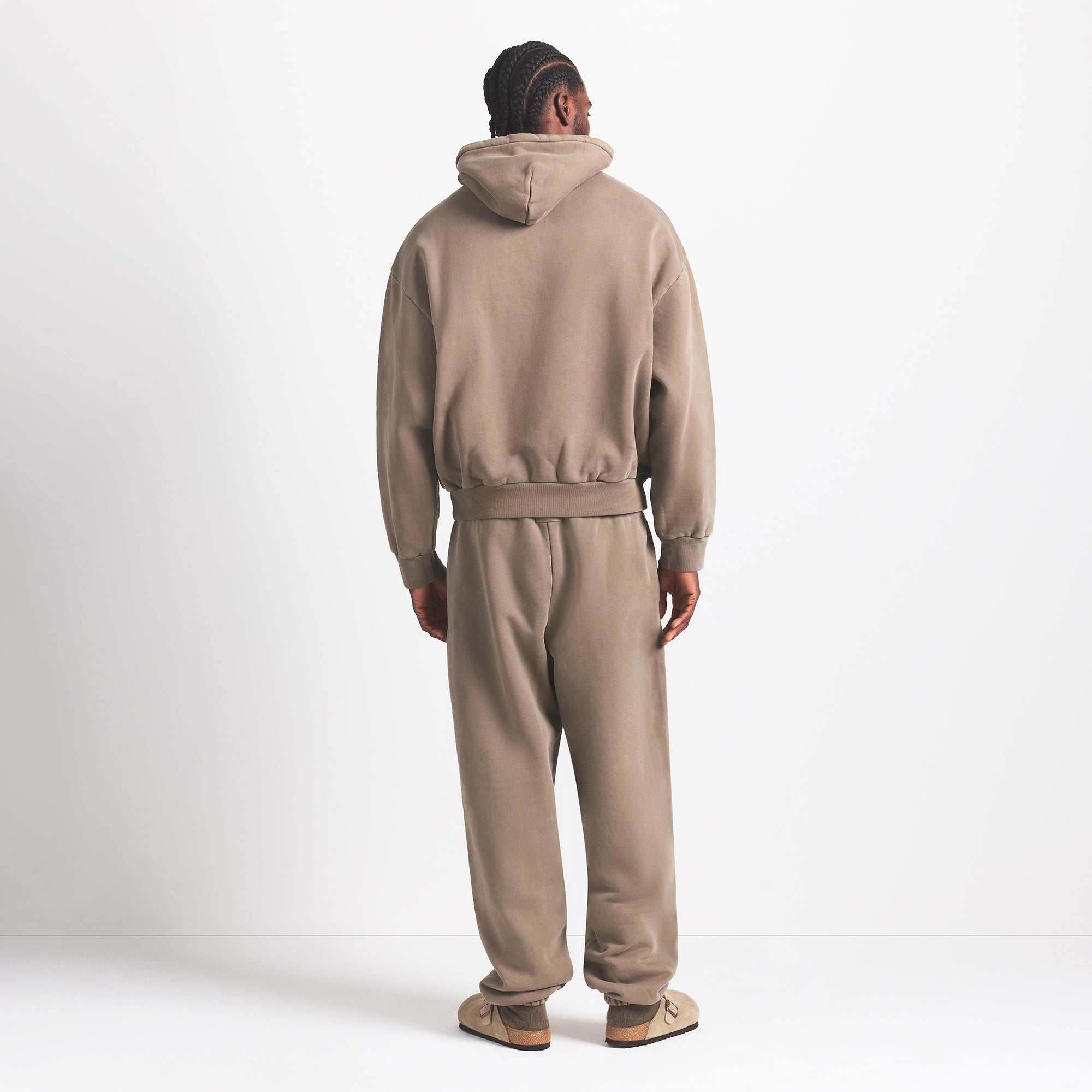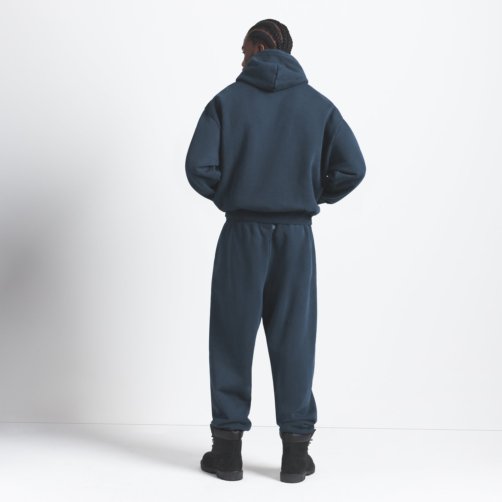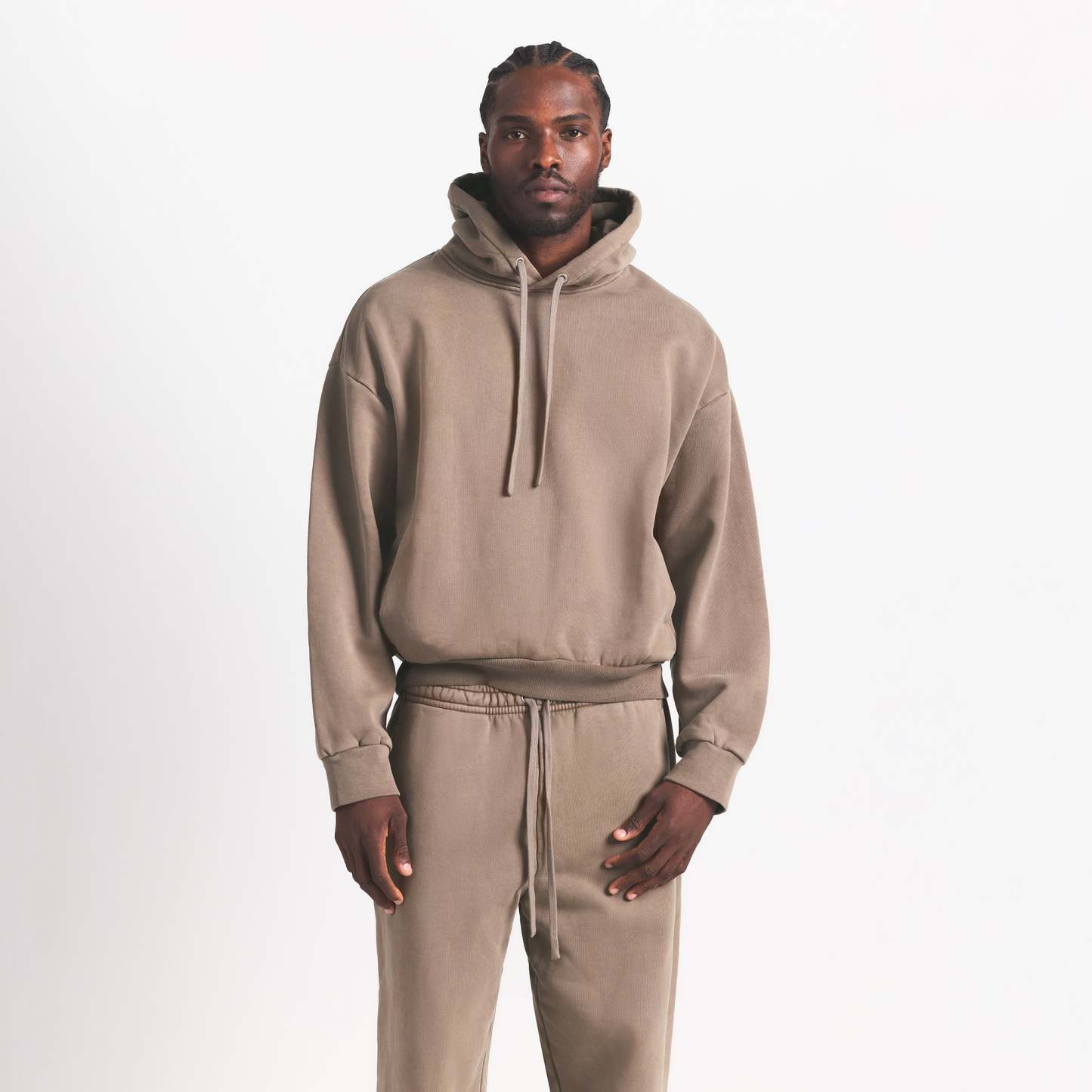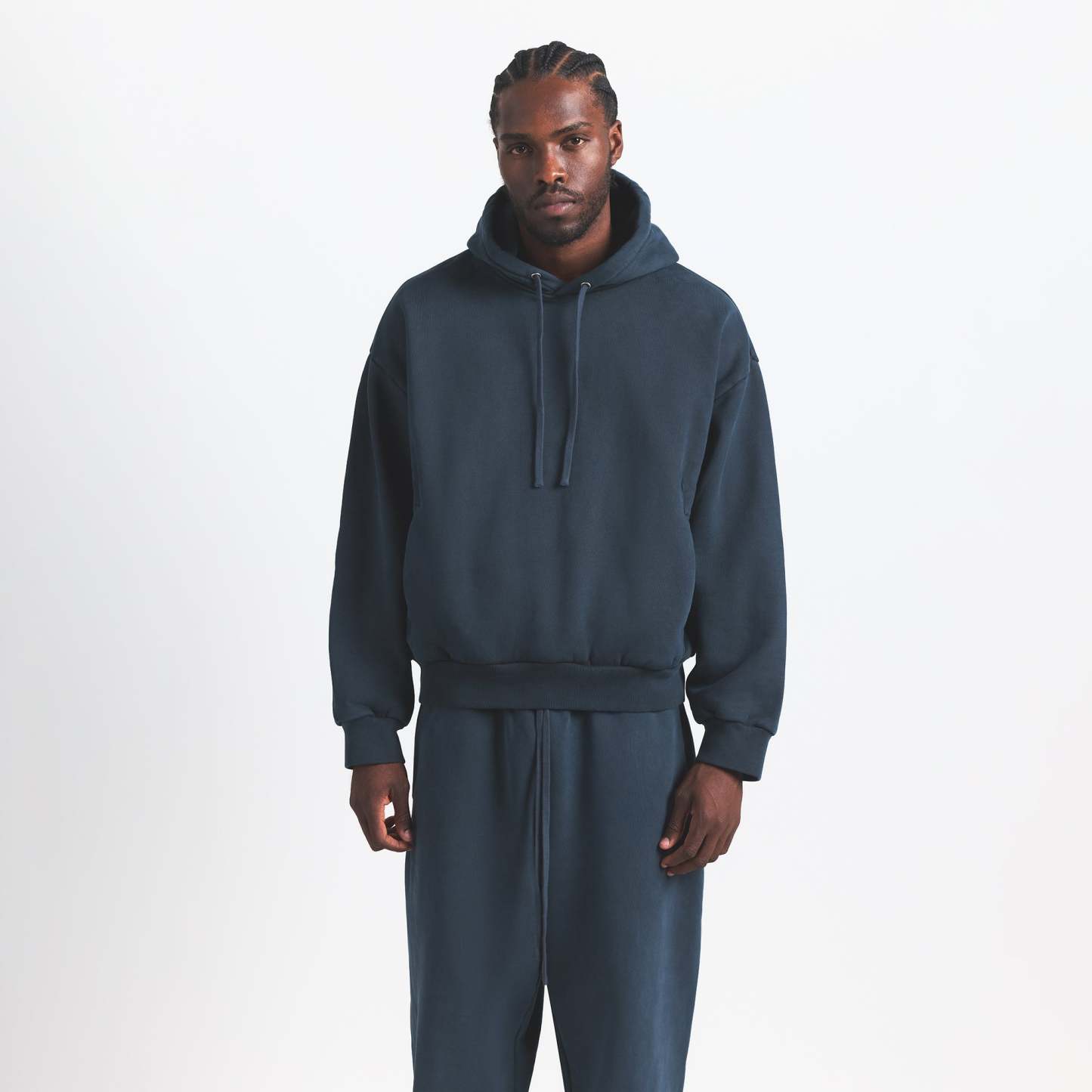 Your warmest layer. Designed in our 100% cotton heavyweight fabric, this relaxed pullover hoodie features a drop shoulder silhouette and adjustable drawstring. Complete with a darted pocket, branded leather patch, and ribbed details at the cuff and hem. Fits true to size.