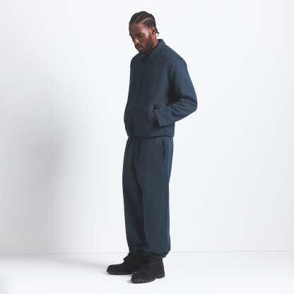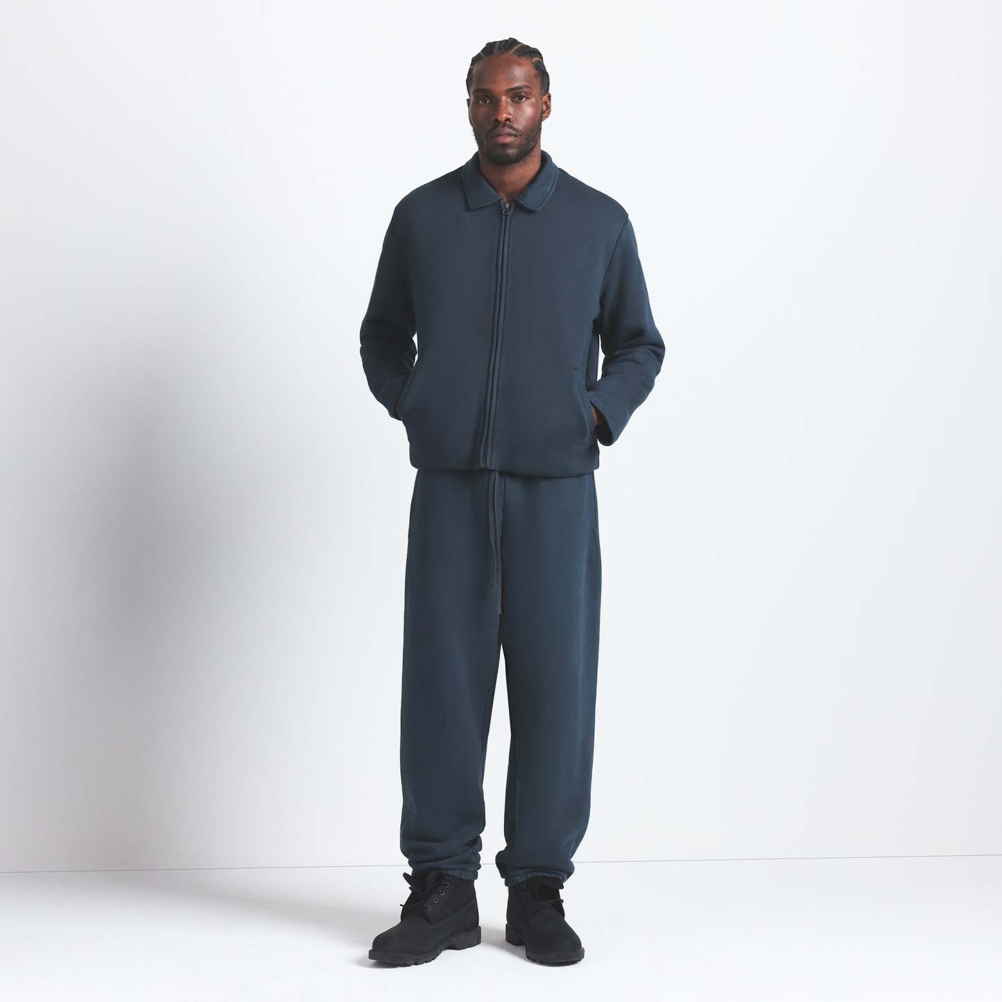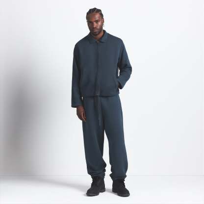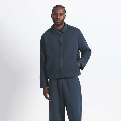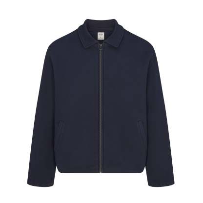 Elevate your weekend wear with this collared zip up. This relaxed style is made with our 100% cotton heavyweight fabric and lined in sherpa for effortless warmth. Features a comfortable, relaxed fit and drop shoulder silhouette. Complete with welt pockets and a branded leather patch at the center back neck. Fits true to size.