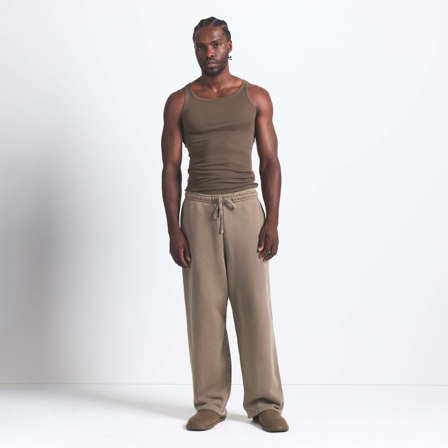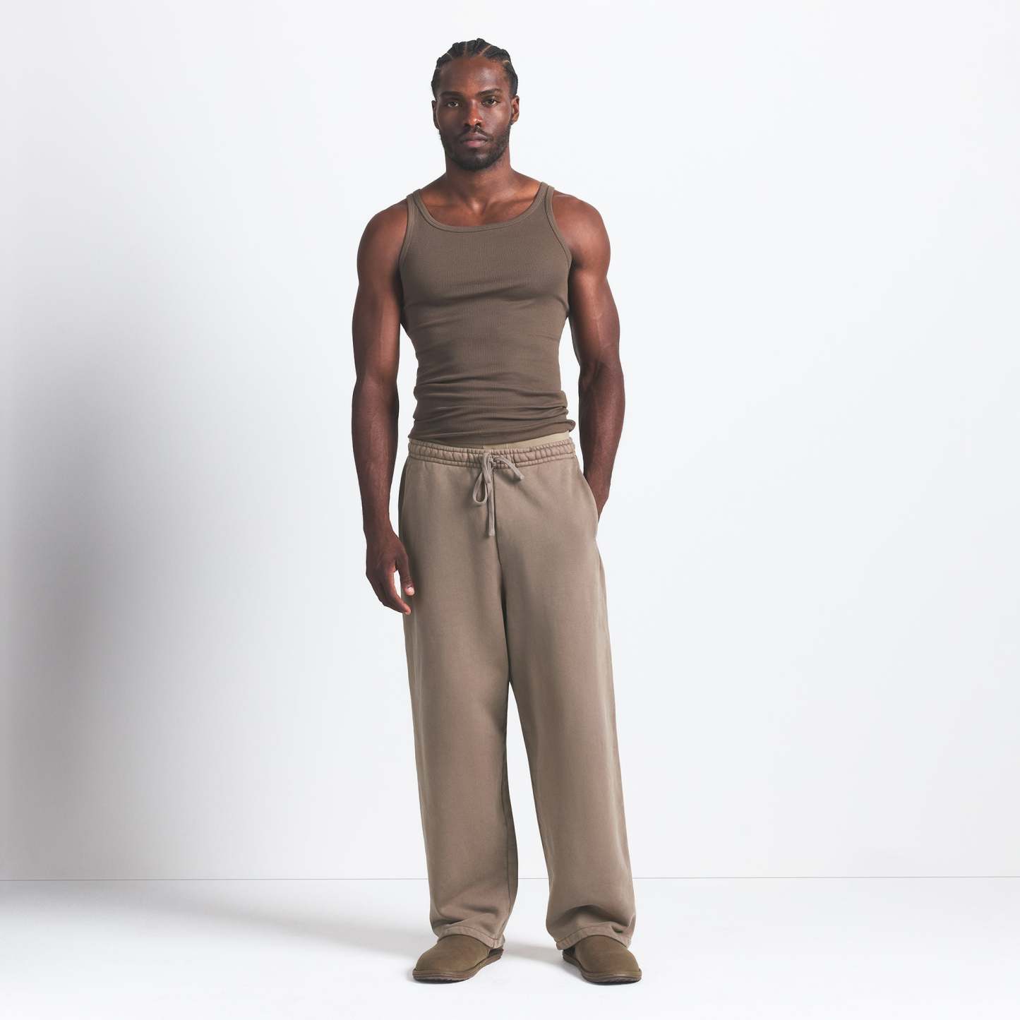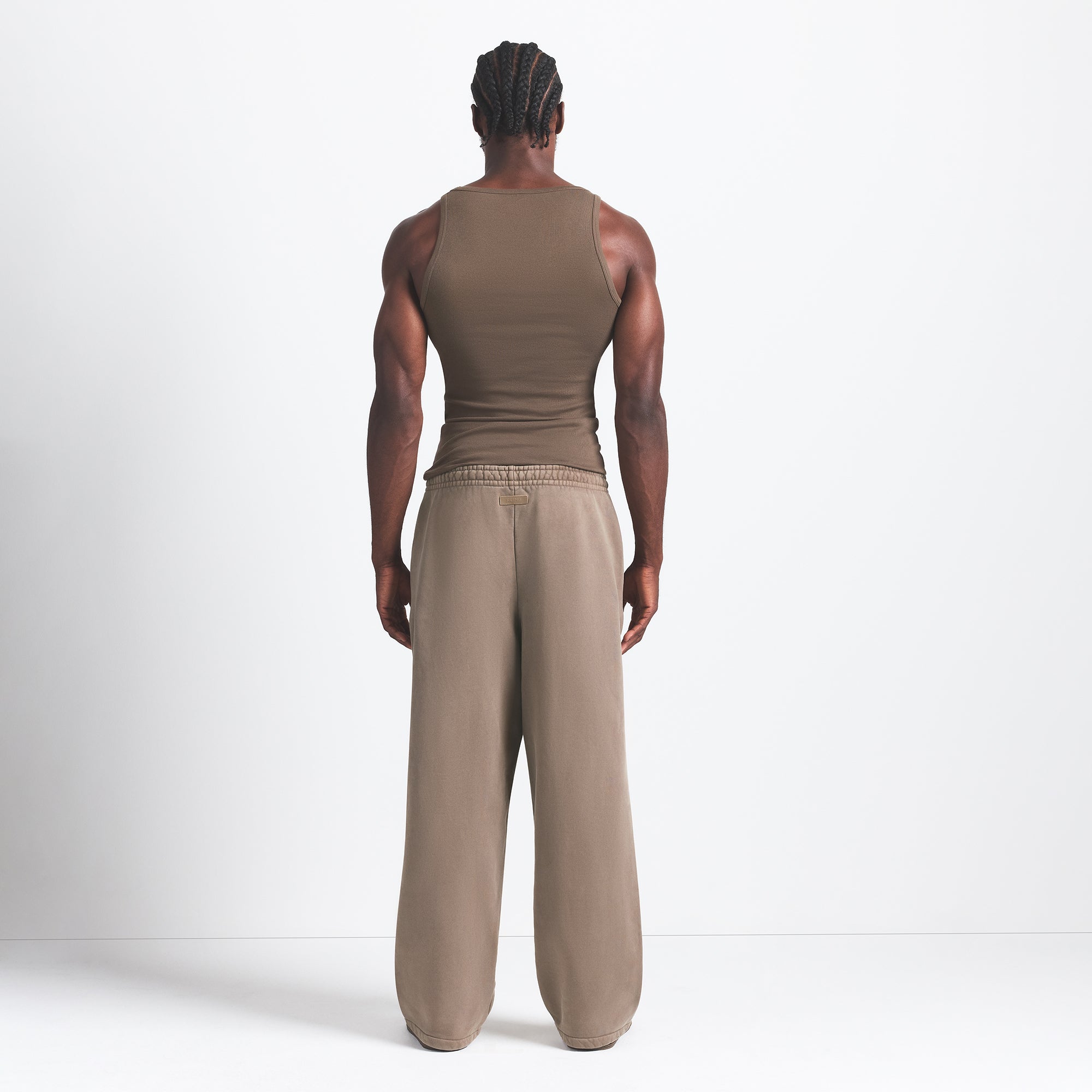 Relaxed fit, all-day comfort. This straight leg pant is made with our premium, 100% cotton heavyweight fabric. Features an elastic waistband and exterior adjustable drawstring for a comfortable fit. Complete with darted side pockets and a branded leather patch. Fits true to size.