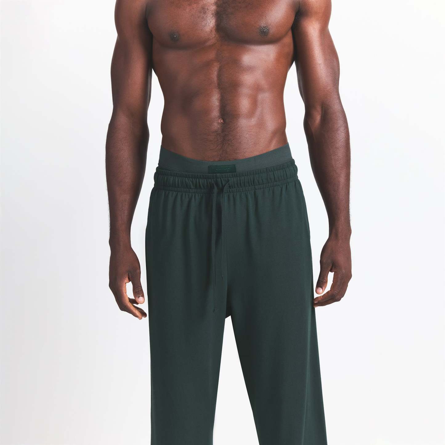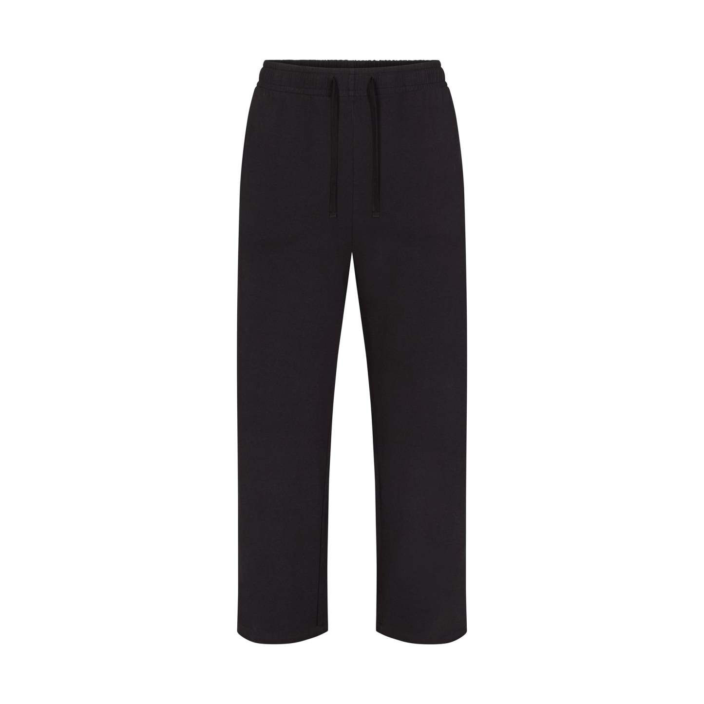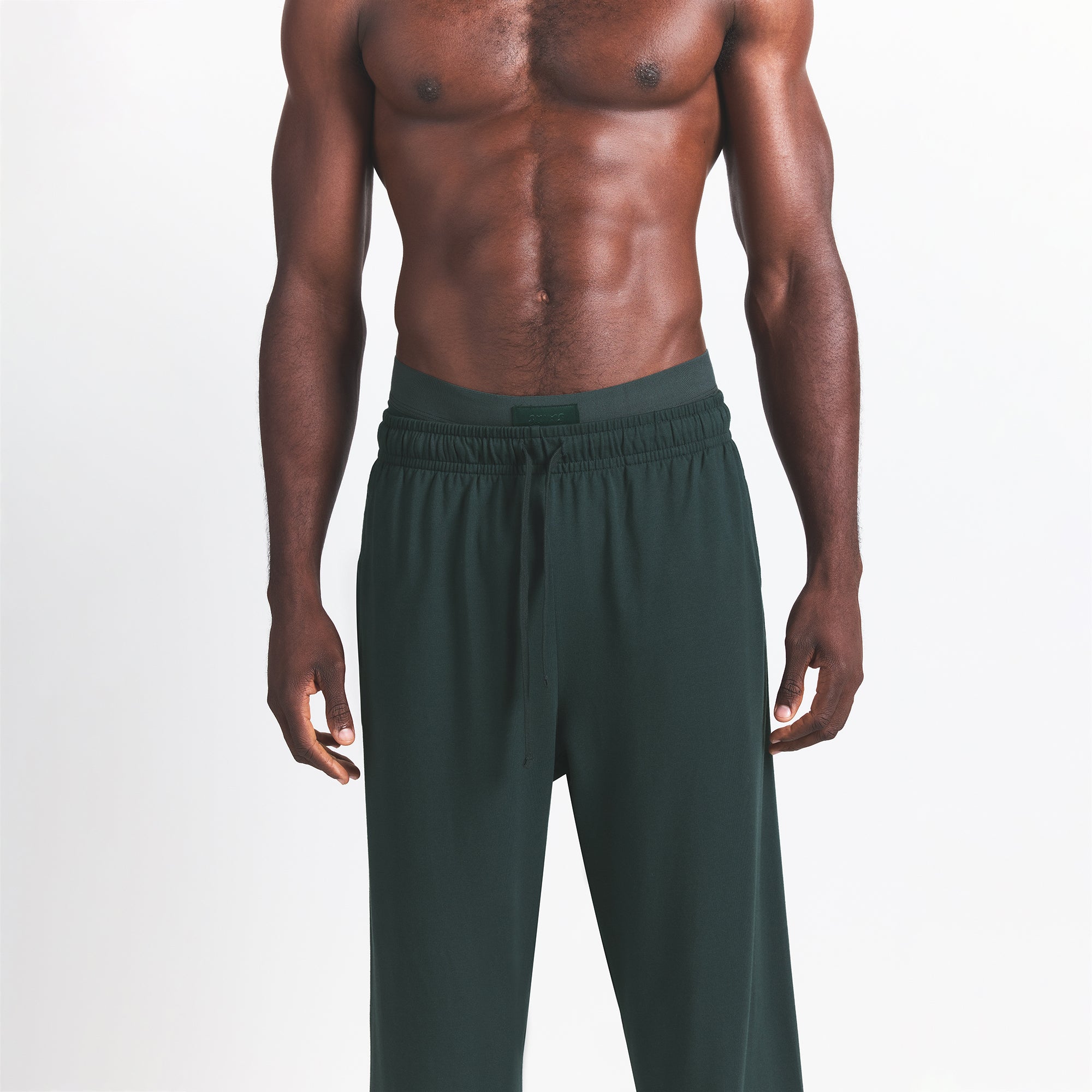 - Soft knit encased elastic waistband with drawcord, Side welt pockets, Straight leg silhouette, Relaxed fit, Inseam: 32 1/4”