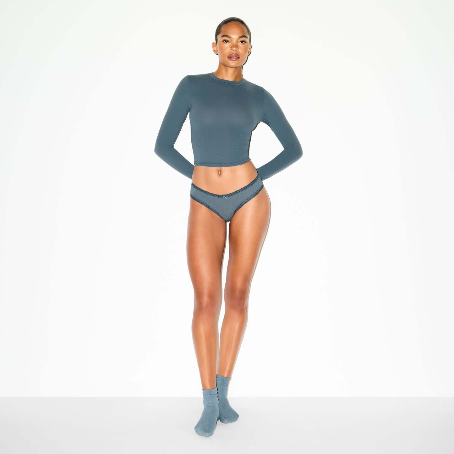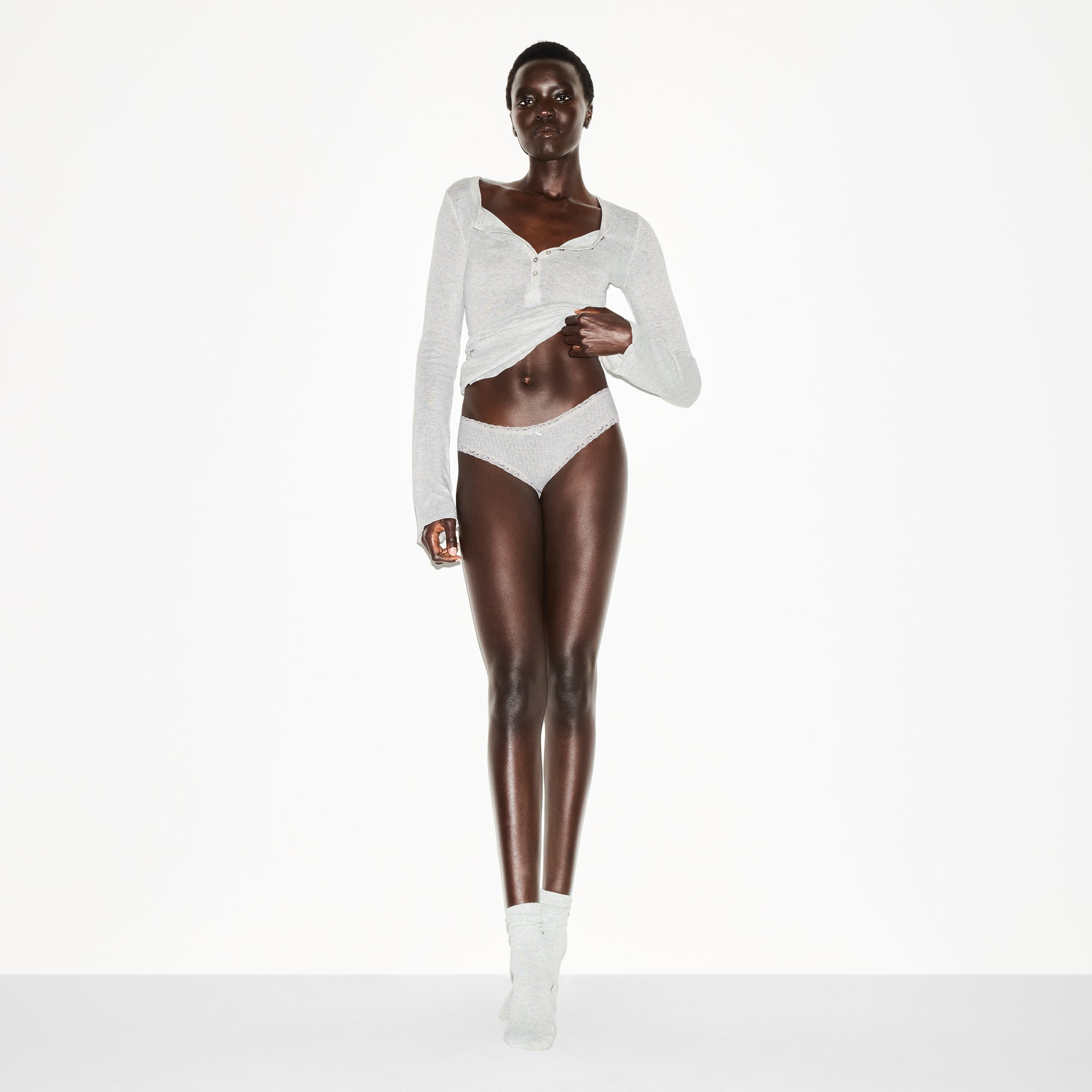 Feminine details, lightweight comfort. This lace-trimmed brief is designed in our new lightweight cotton pointelle fabric with a center bow detail. Complete with a 100% cotton gusset and fits true to size.