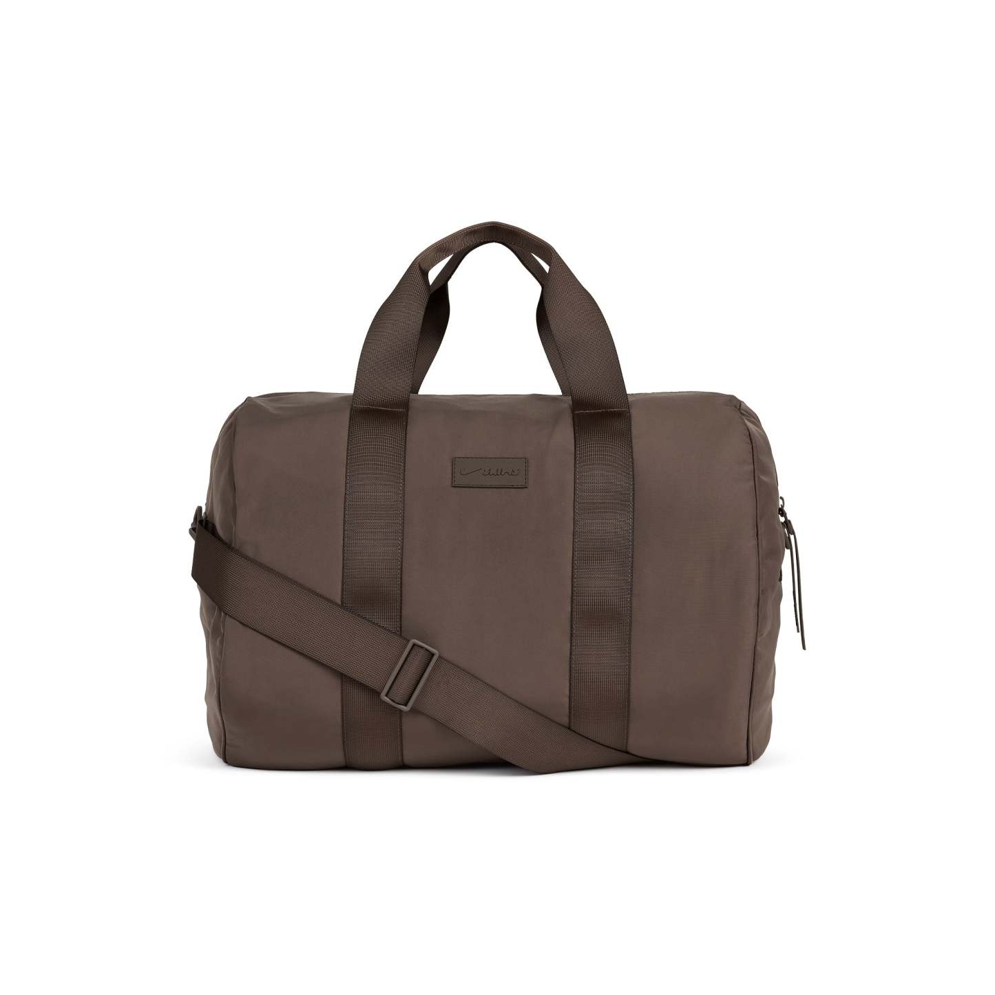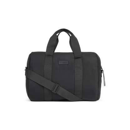 - Padded gym bag, Branded matte silicone logo label at center front, Branded matte silicone zipper tab, Short handles and removeable, Adjustable shoulder strap, Features multiple interior pockets: large padded compartment for laptop or tablet, Side pockets to organize small items, Key fob attachment, Detachable shoe dust bag