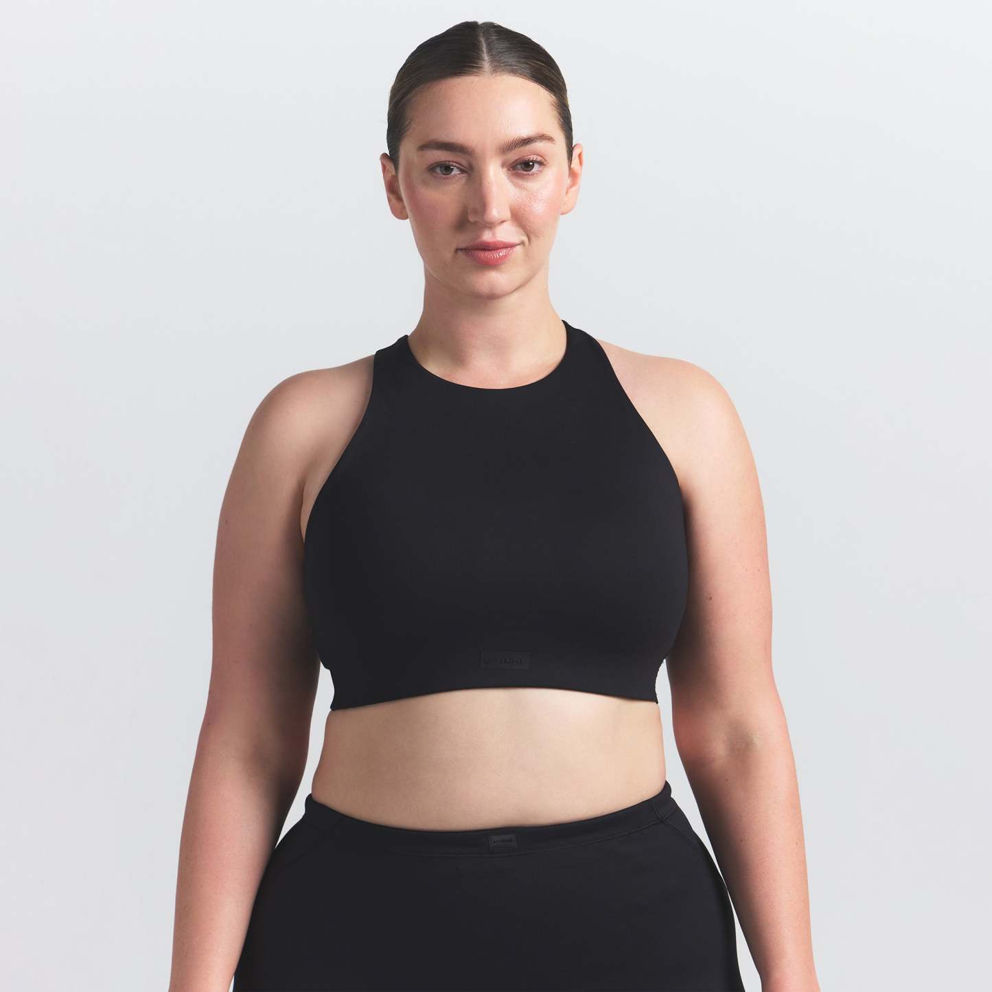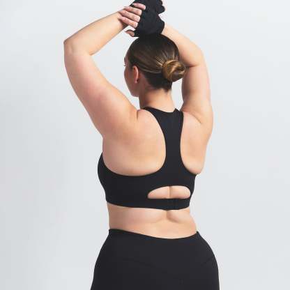 - Built in soft lightly molded pads for comfort and coverage, Silicone matte logo at center front, Cut out detail at lower back, Racerback with hook and eye closure, Lined in power mesh for additional support, Fits tight to body, Best for high impact