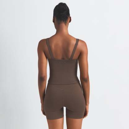 Square neck, Built in soft mold pads that provides comfort and coverage, Silicone matte logo at center back, Fits tight to body