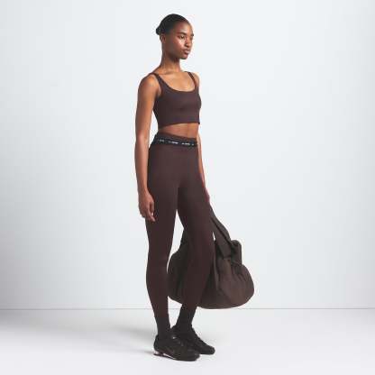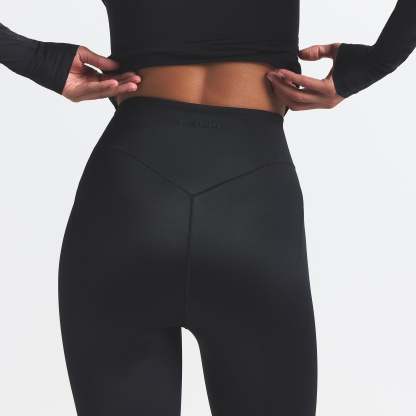 High-waisted, Elastic waistband with internal branded drawcord for adjustability, Side dart detail, Silicone matte logo at center back, 100% Cotton gusset, Fits tight to body