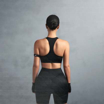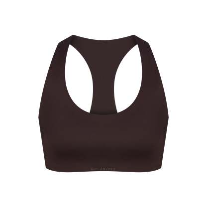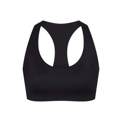 Scoop neck, Built in soft lightly molded pads, Racerback design, Silicone matte logo at center front, Pullover style, Lined in power mesh, Fits tight to body, Best for low impact