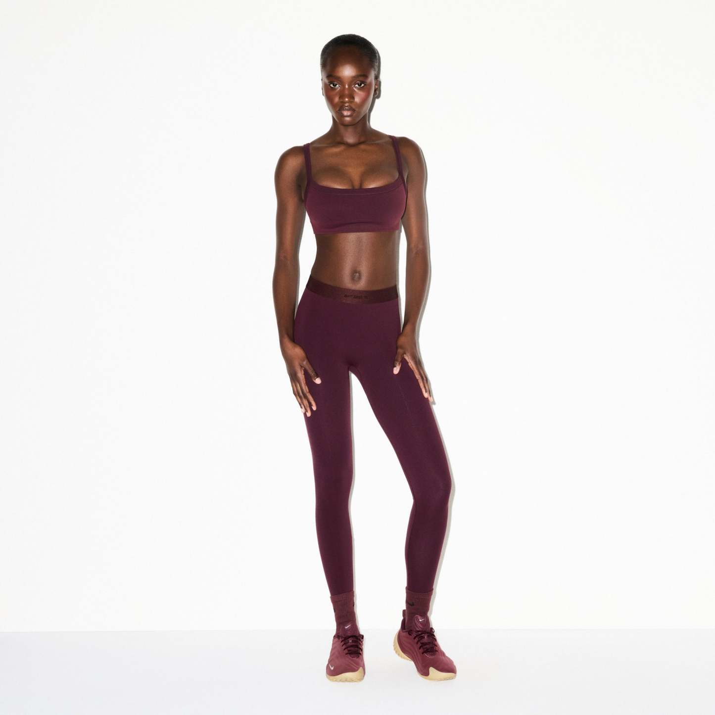 Amber is size 10, 36C, and 5’10.5” (179cm), wearing SKIMS L