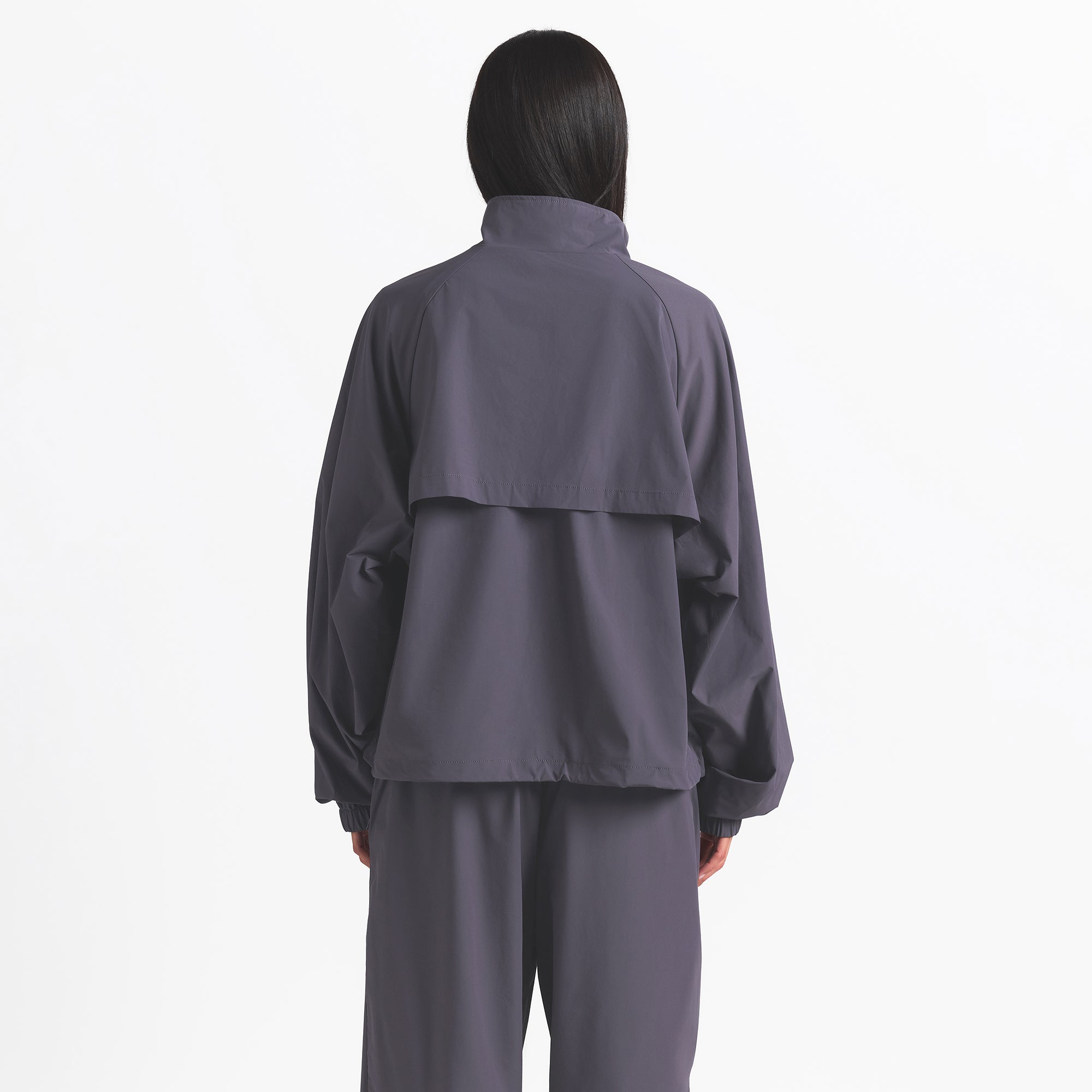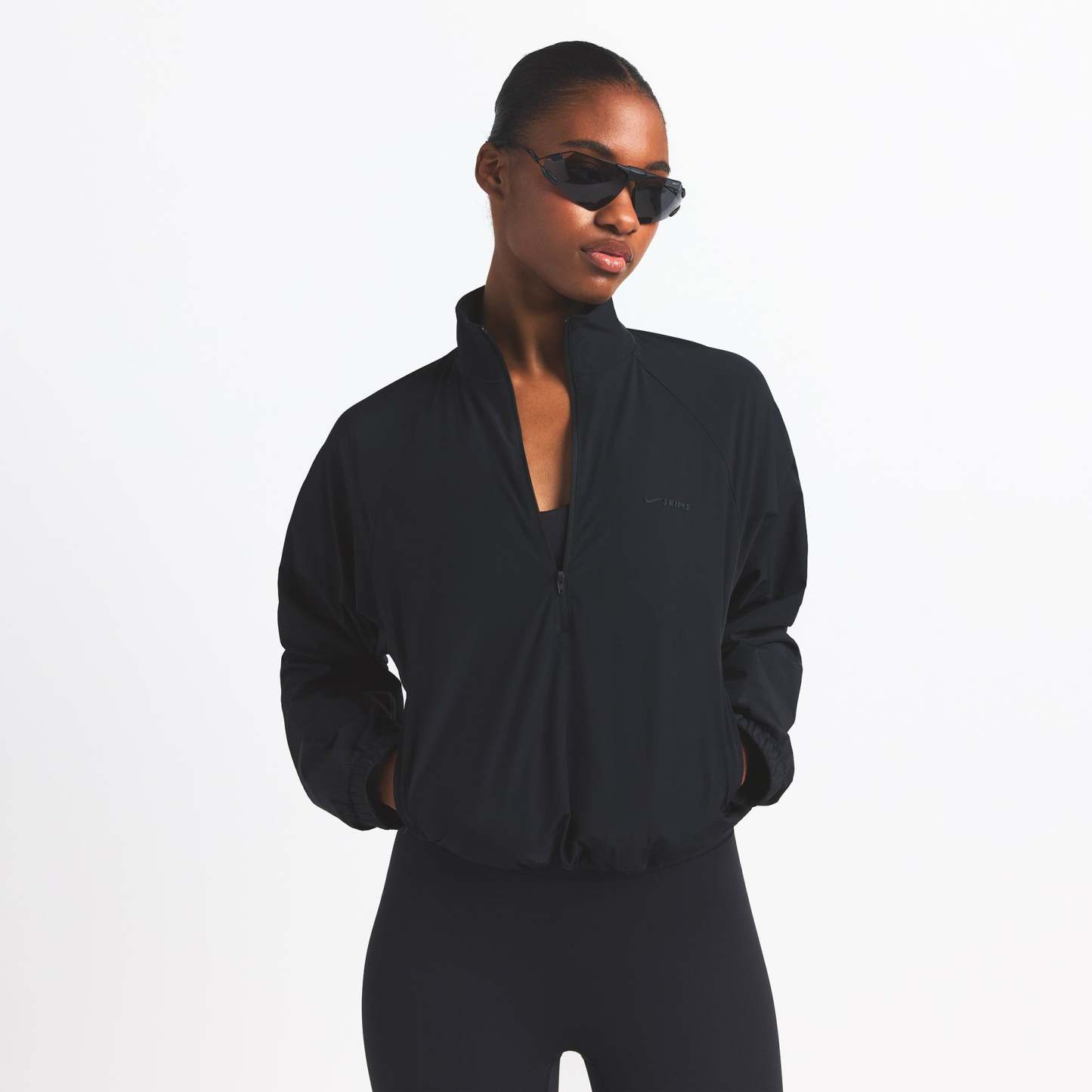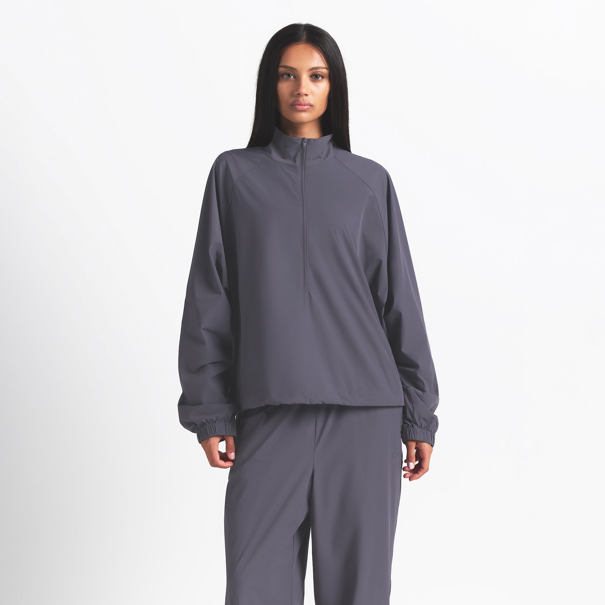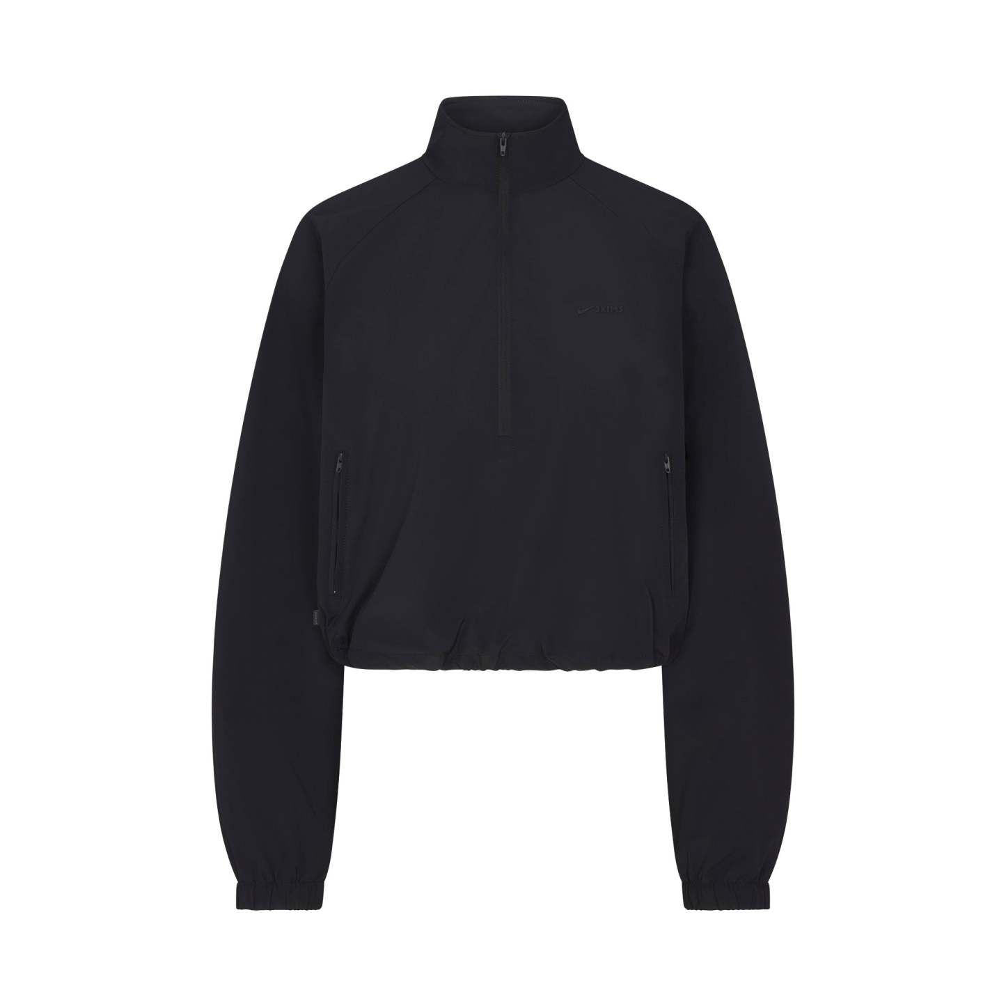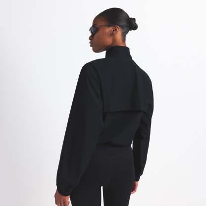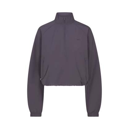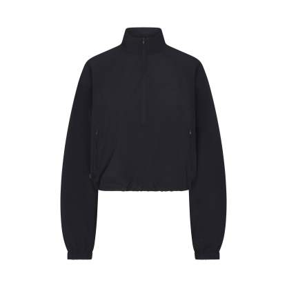 Finish off your workout look with this half-zip, made from our lightweight Woven Nylon fabric. Features a flattering mock neck, welt zipper pockets, adjustable bungee, and seam details.
