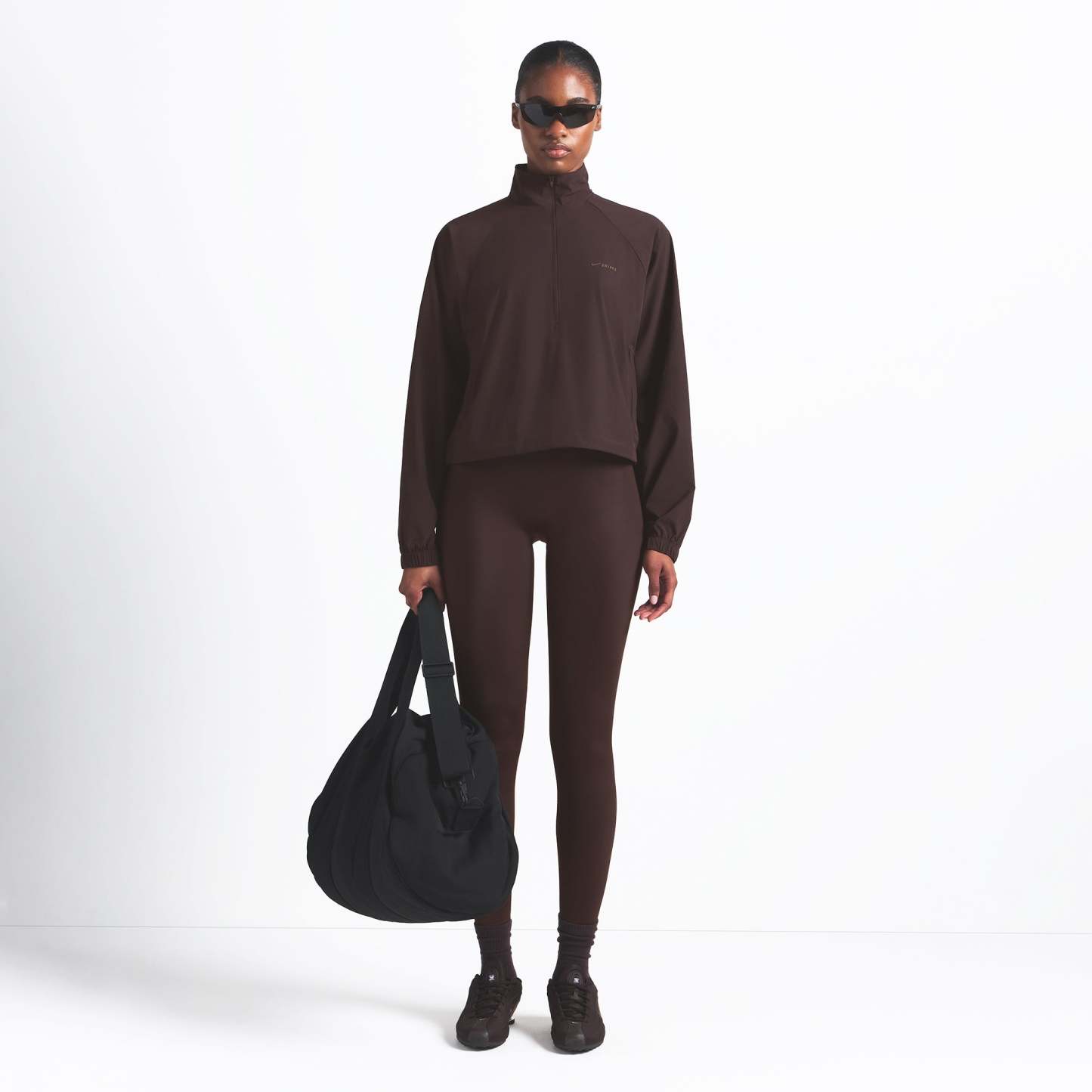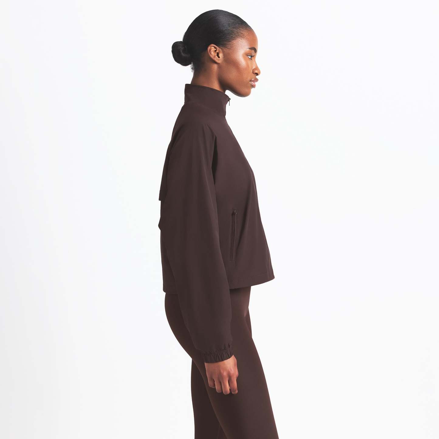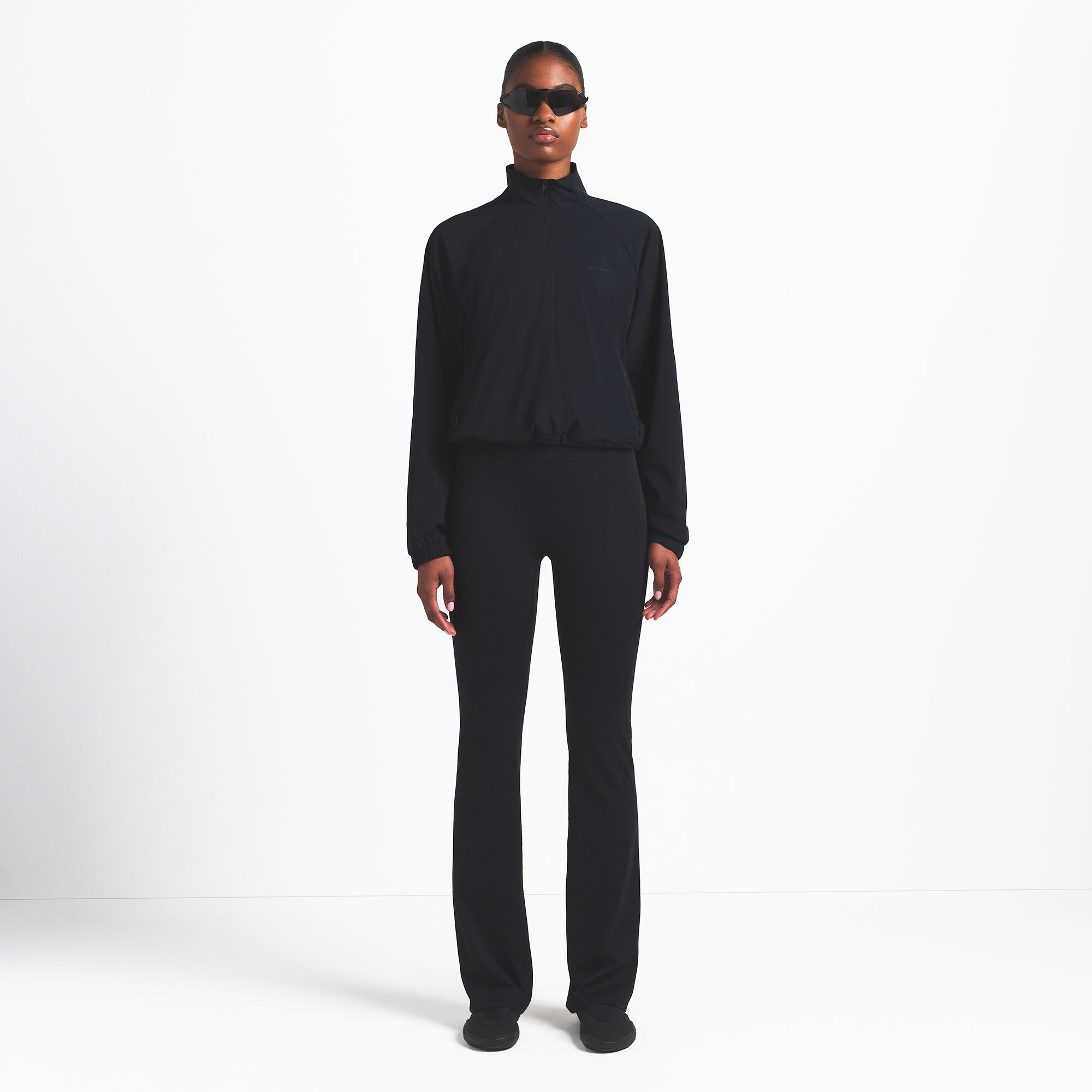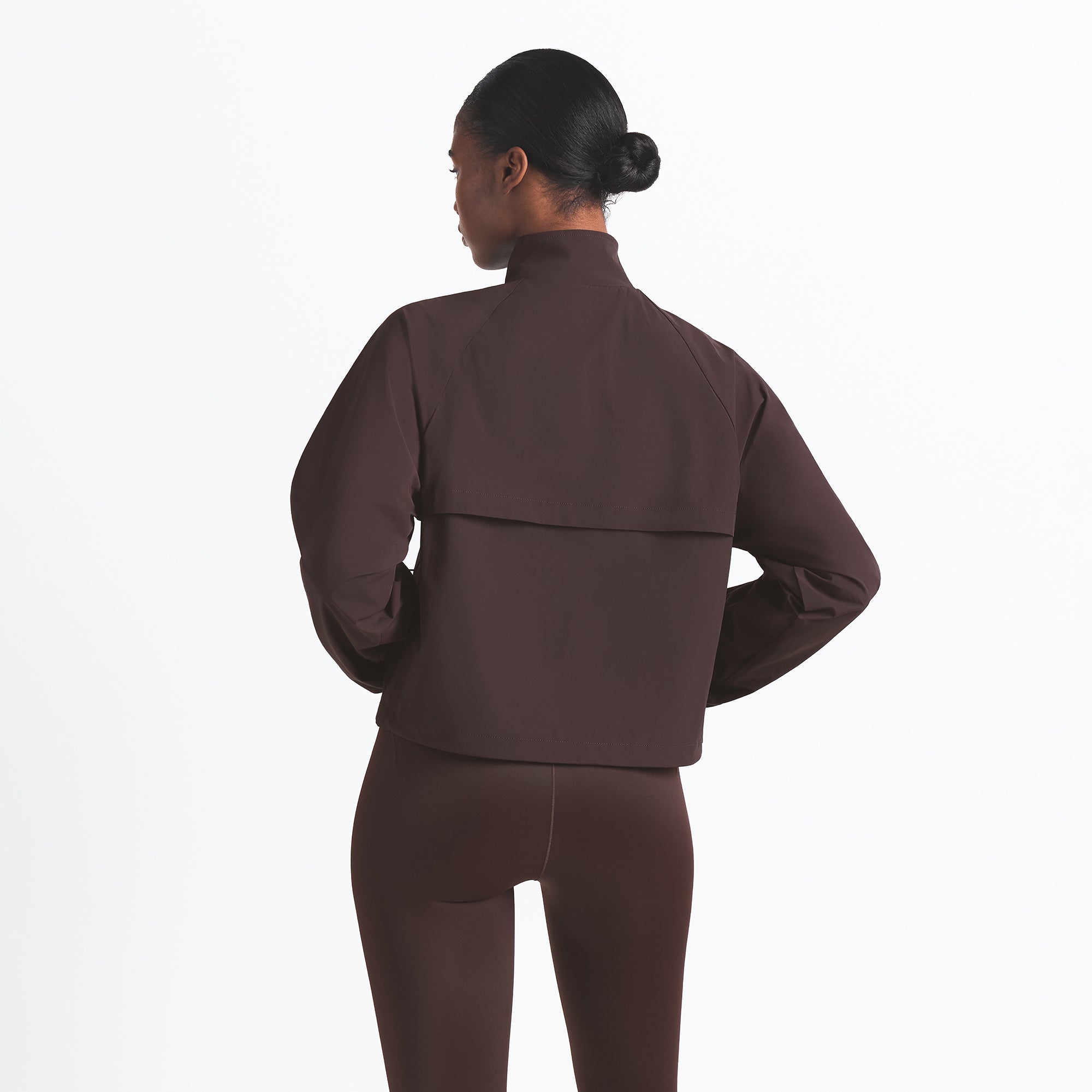 Finish off your workout look with this half-zip, made from our lightweight Woven Nylon fabric. Features a flattering mock neck, welt zipper pockets, adjustable bungee, and seam details.
