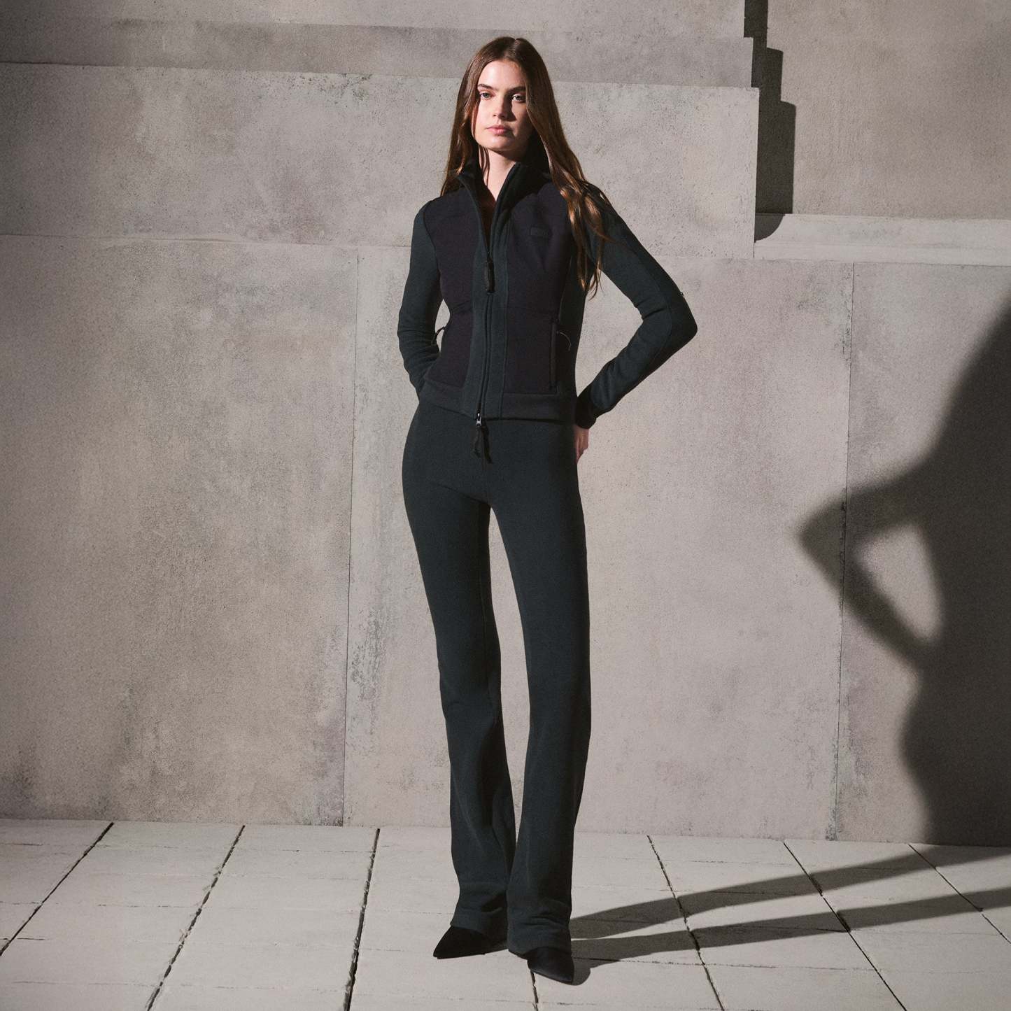 - High rise, Sits at natural waist, Pocket at center back waist, Fits tight to body, Extra long length for stacked effect, Inseam: 38"