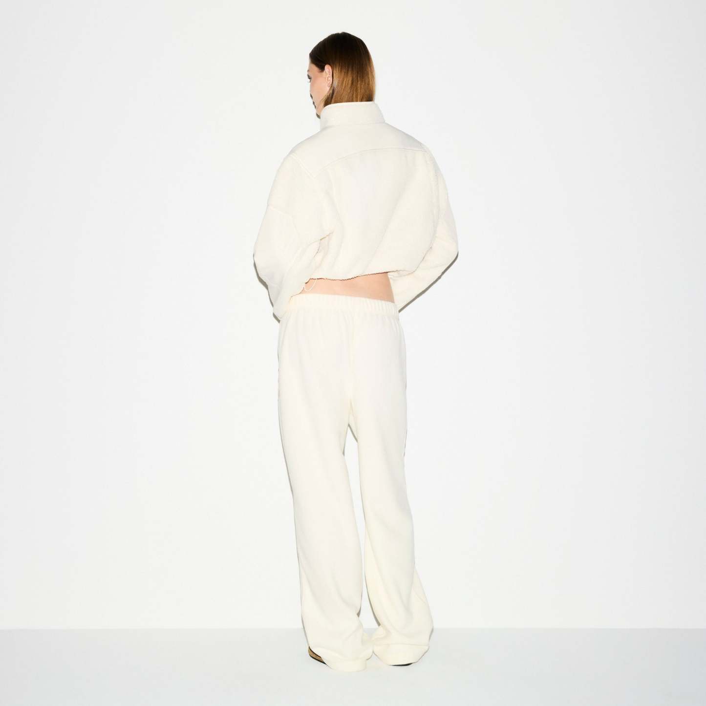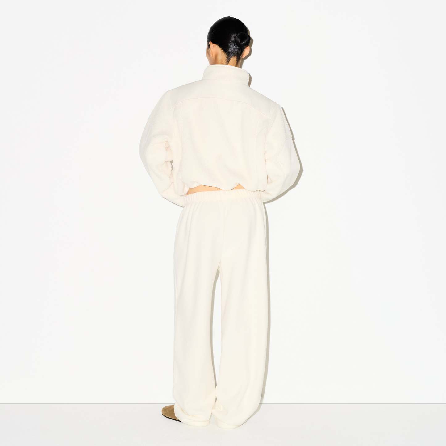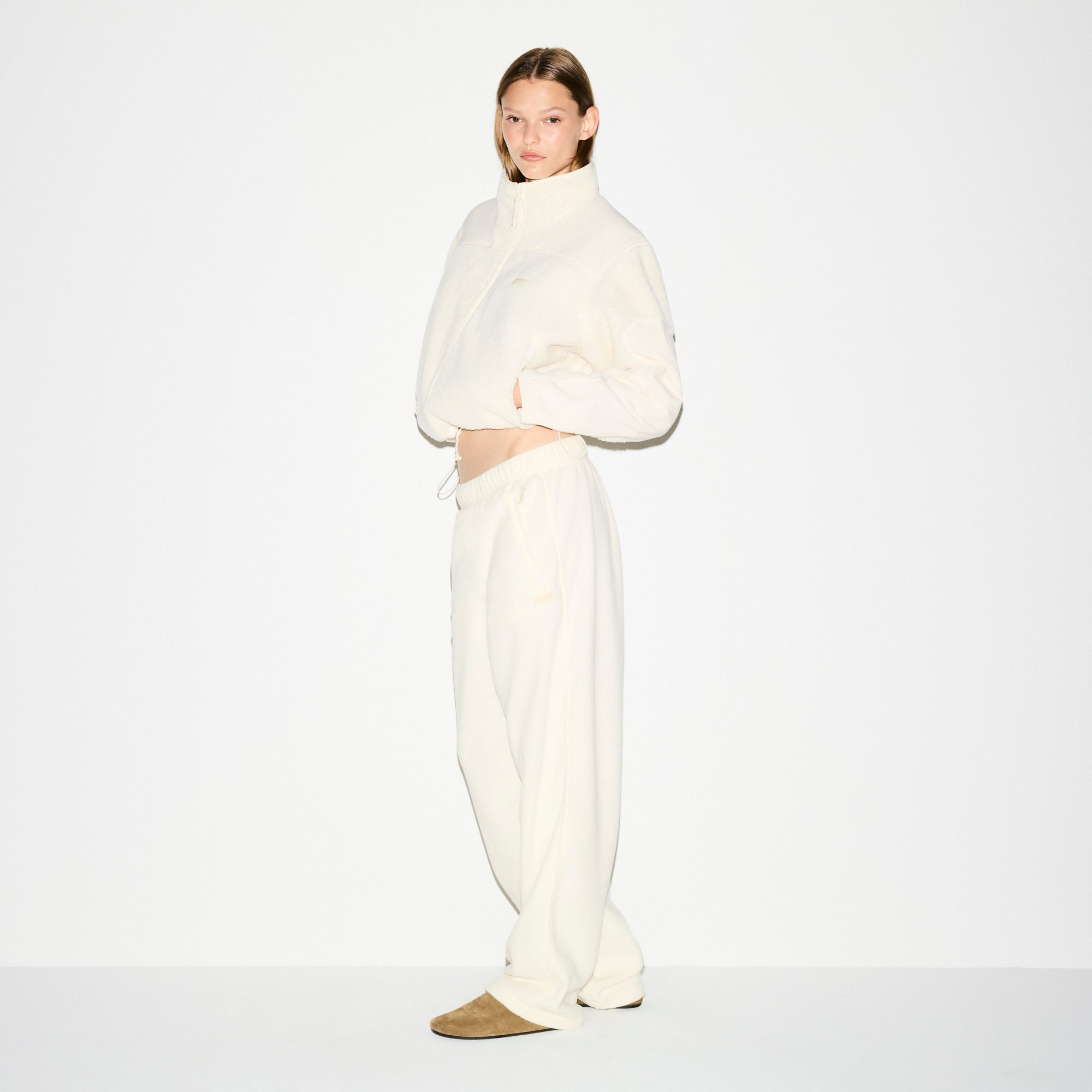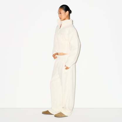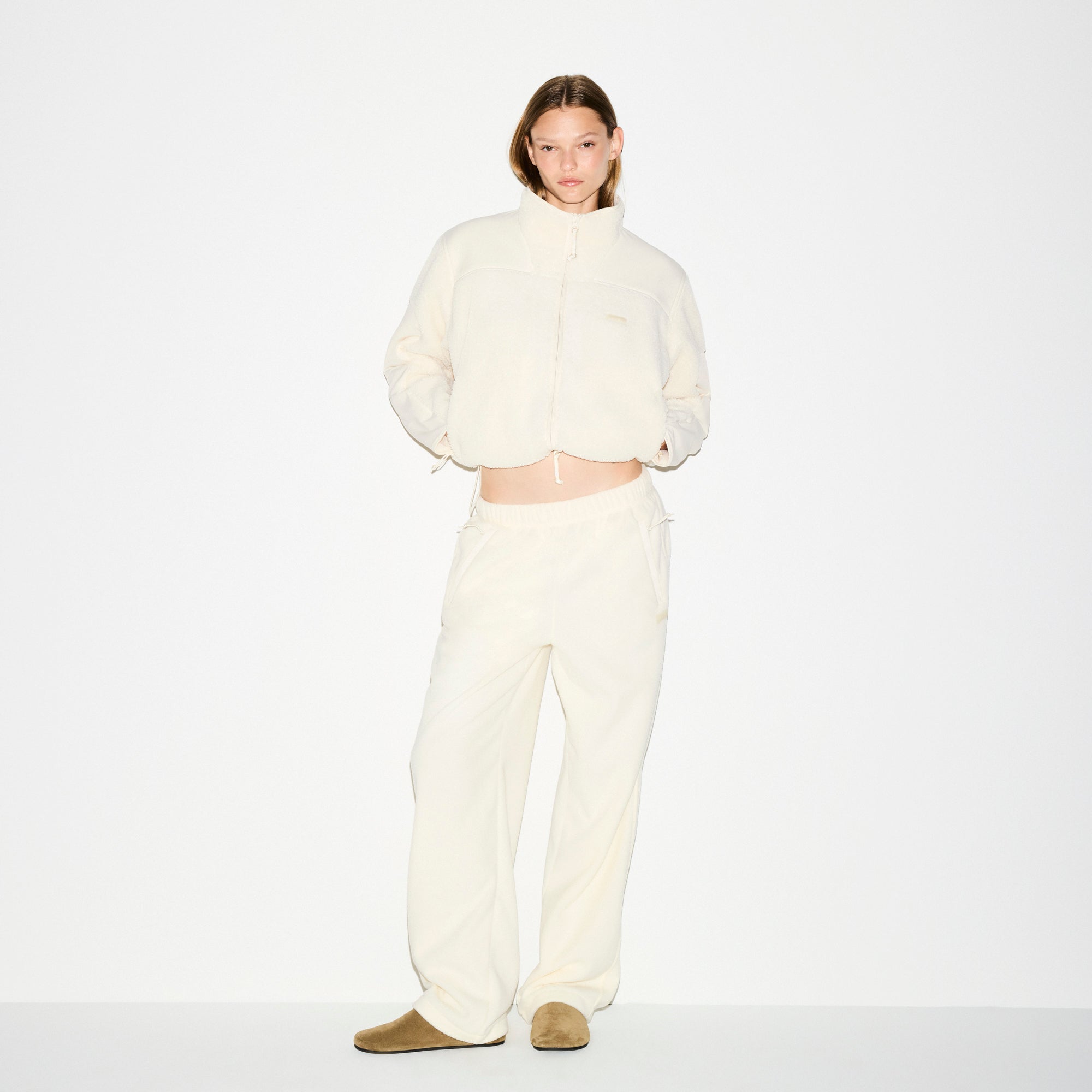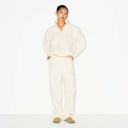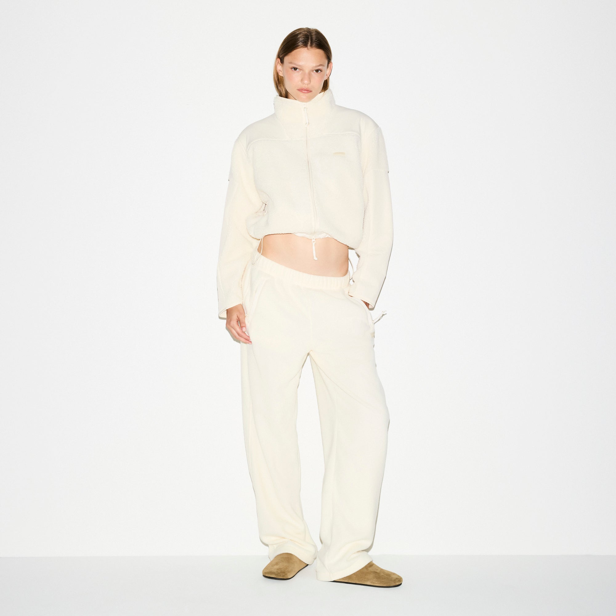 Warm up your cold-weather wardrobe with this chic straight leg pant, designed in our plush, mid-weight polar fleece. Features side zipper pockets, contrast detailing, and an interior bungee cord for an adjustable fit. Fits true to size.