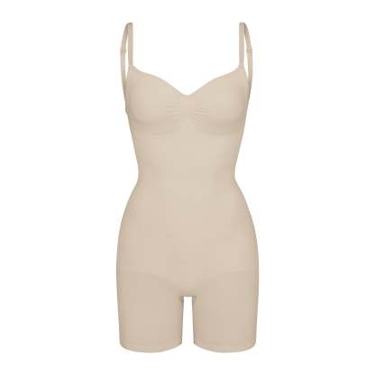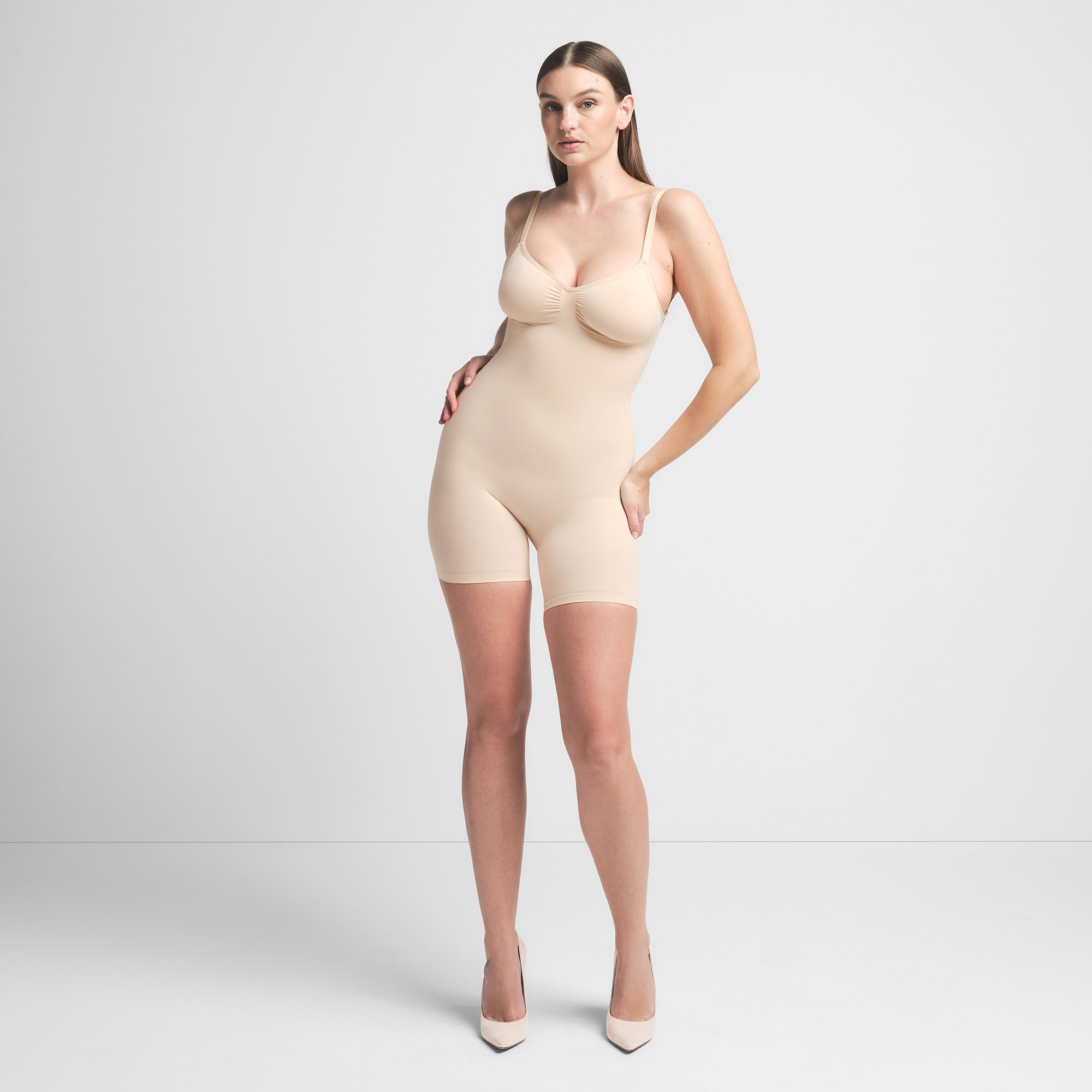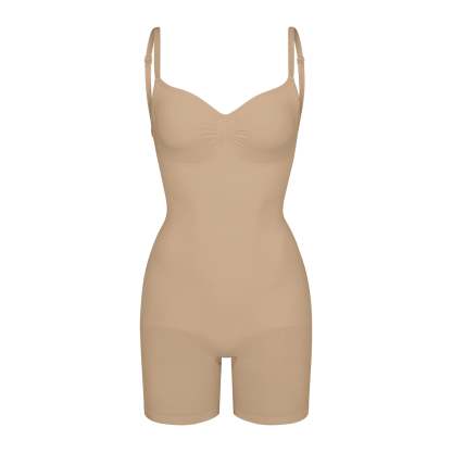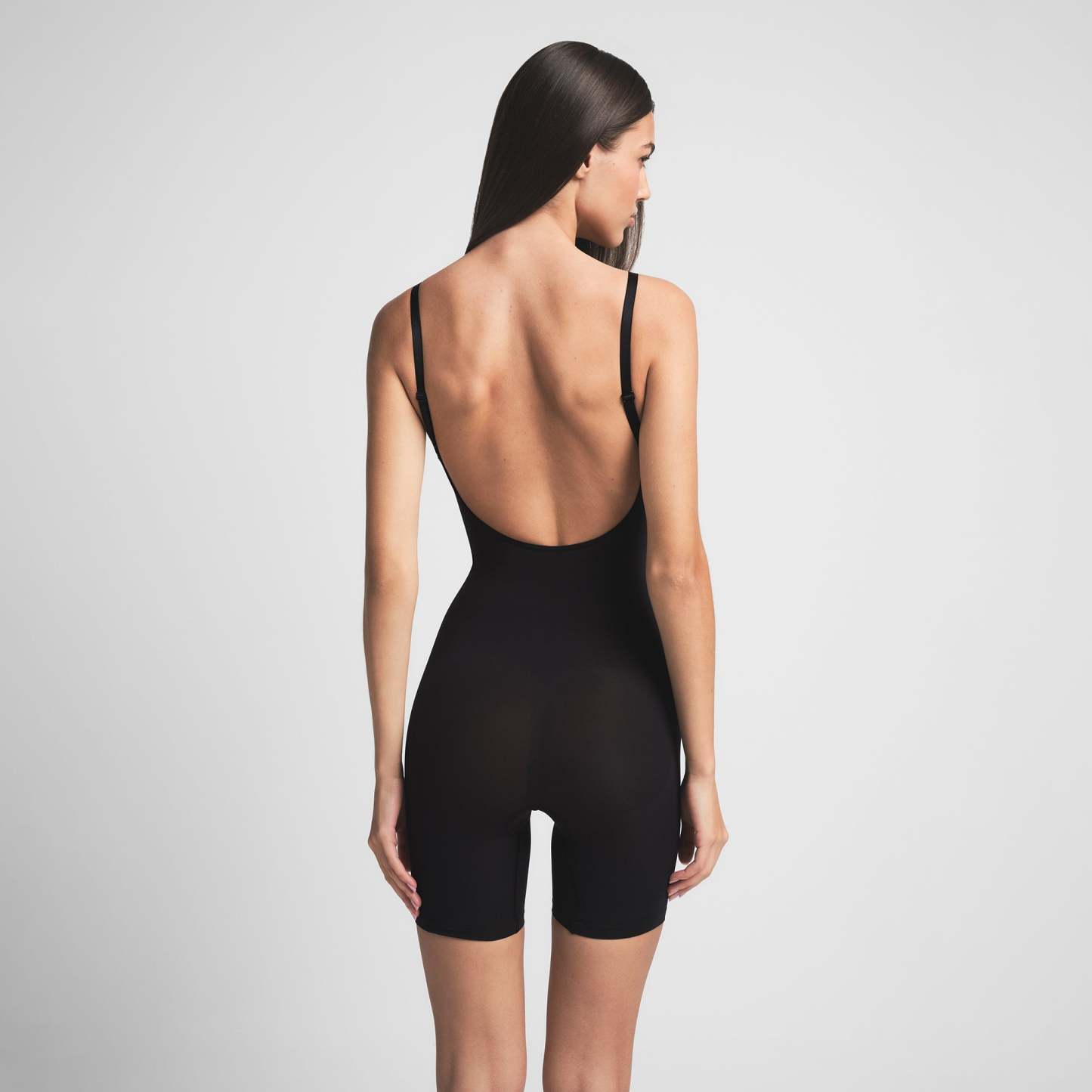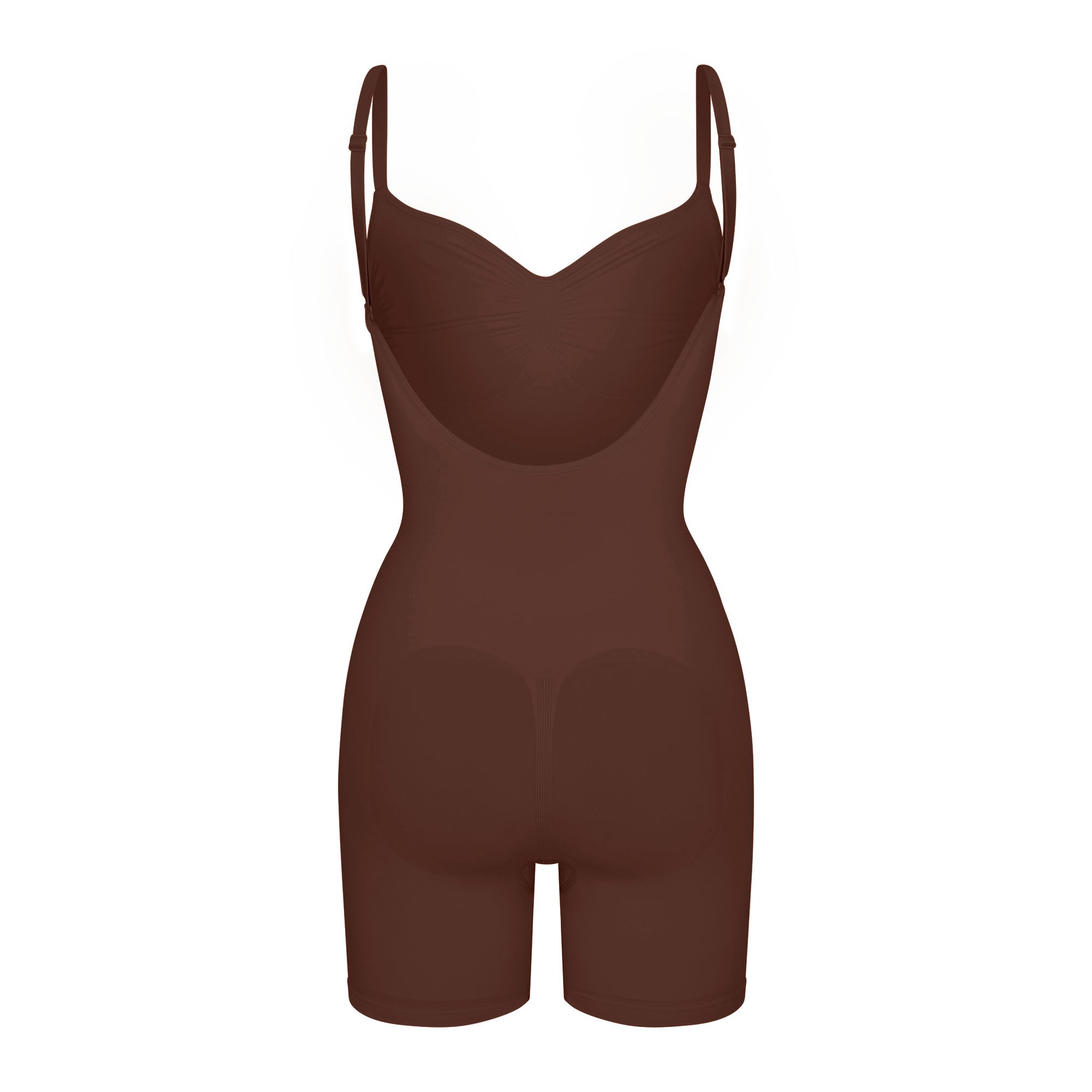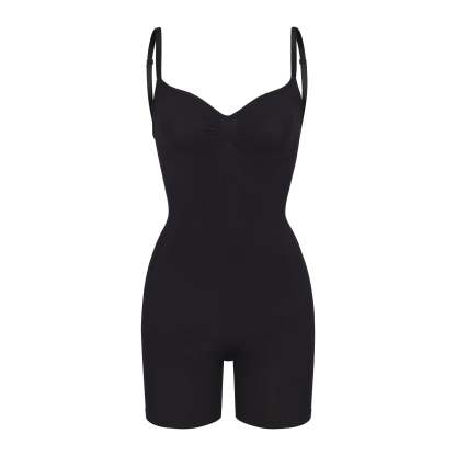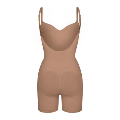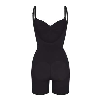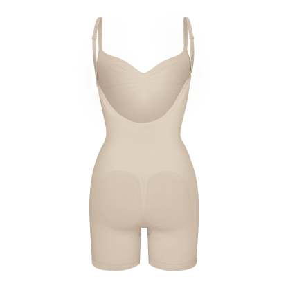 Scoop front neckline, Adjustable, convertible straps with hooks that can be worn as shoulder straps or cross-back, Strong compression along tummy, core and waist, Pockets at butt to lift and add definition, Open gusset, Low back style pairs well with low back dresses and tops