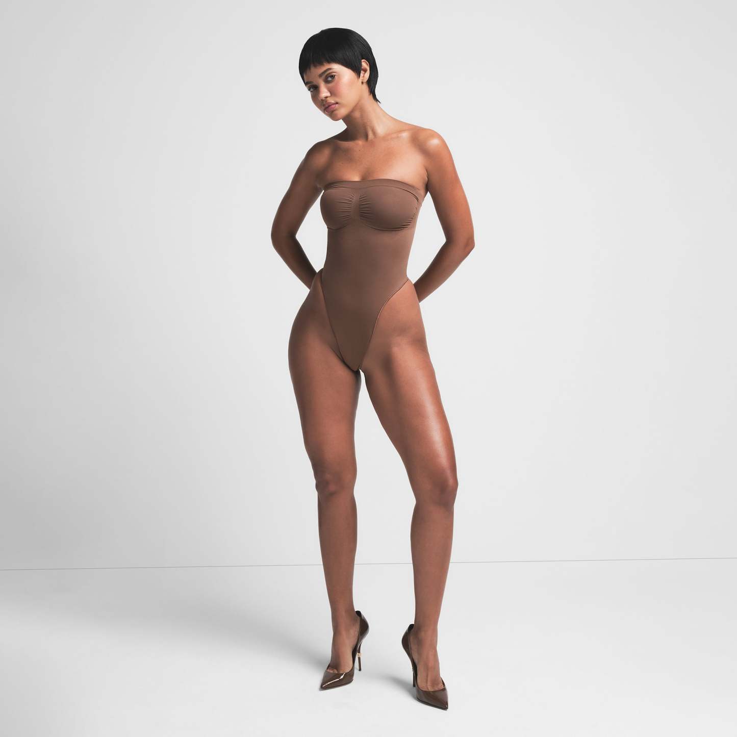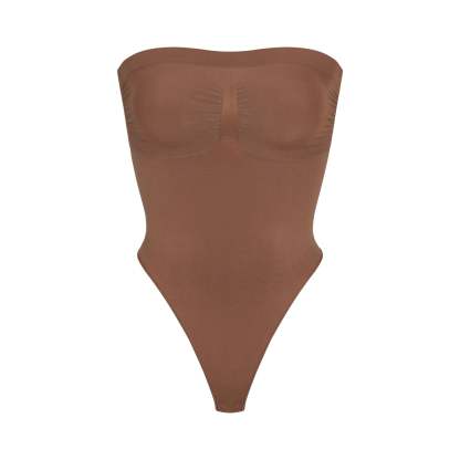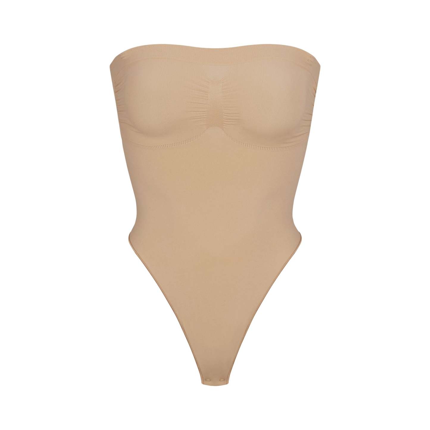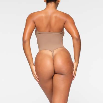 Strapless neckline, Designed with removable adjustable straps that can be worn multiple ways, Shoulder straps, cross back, halter, Pique stitching along center front and sides to offer support and breast definition, 100% Cotton gusset with snap closure, Thong back, minimum coverage
