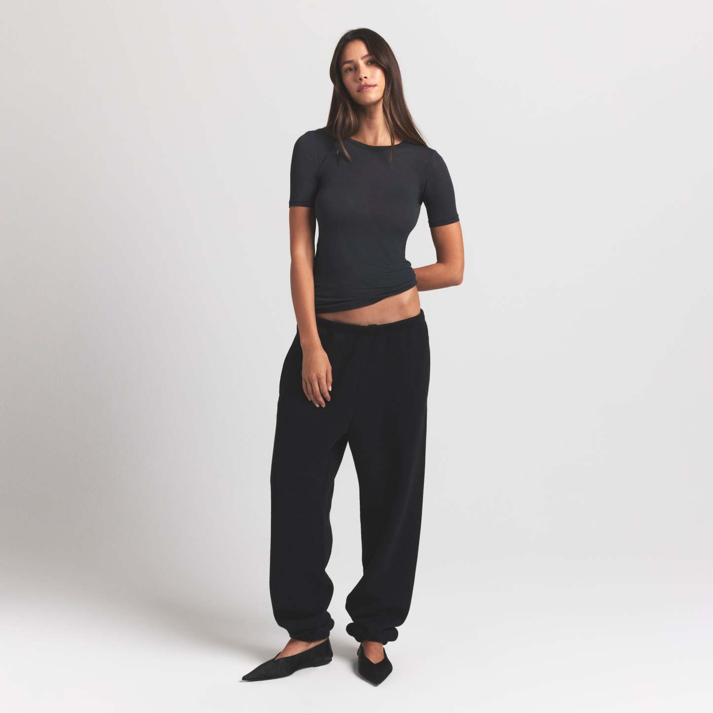 Samantha is size 4, 34B, and 5’10.5” (179cm), wearing SKIMS S