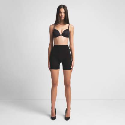 Extreme low back designed to be worn with low cut dresses, Soft stay boning at side seam to help prevent rolling, Supports and smooths thighs, Supports and lifts butt, Enhances natural shape of body, Mid Thigh, Silicone back waistband, Open gusset