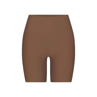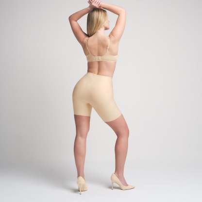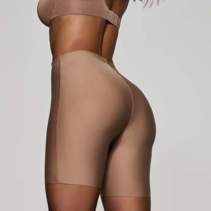 Mid-Rise, Embedded butt pad, Closed gusset, Full length, Raw cut leg opening