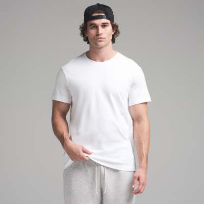 The new standard of classic. Constructed with 100% cotton, this incredibly-soft everyday staple is perfect for lounging and layering in supreme comfort. Features a crew neck and short sleeves. Fits true to size.