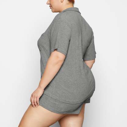 Meet the ultra-soft sleep set of your dreams. This classic button-up sleepwear top and fitted shorts have a classic look and ultra-comfortable feel. Features chest pocket details and interior drawstrings. Fits true to size.