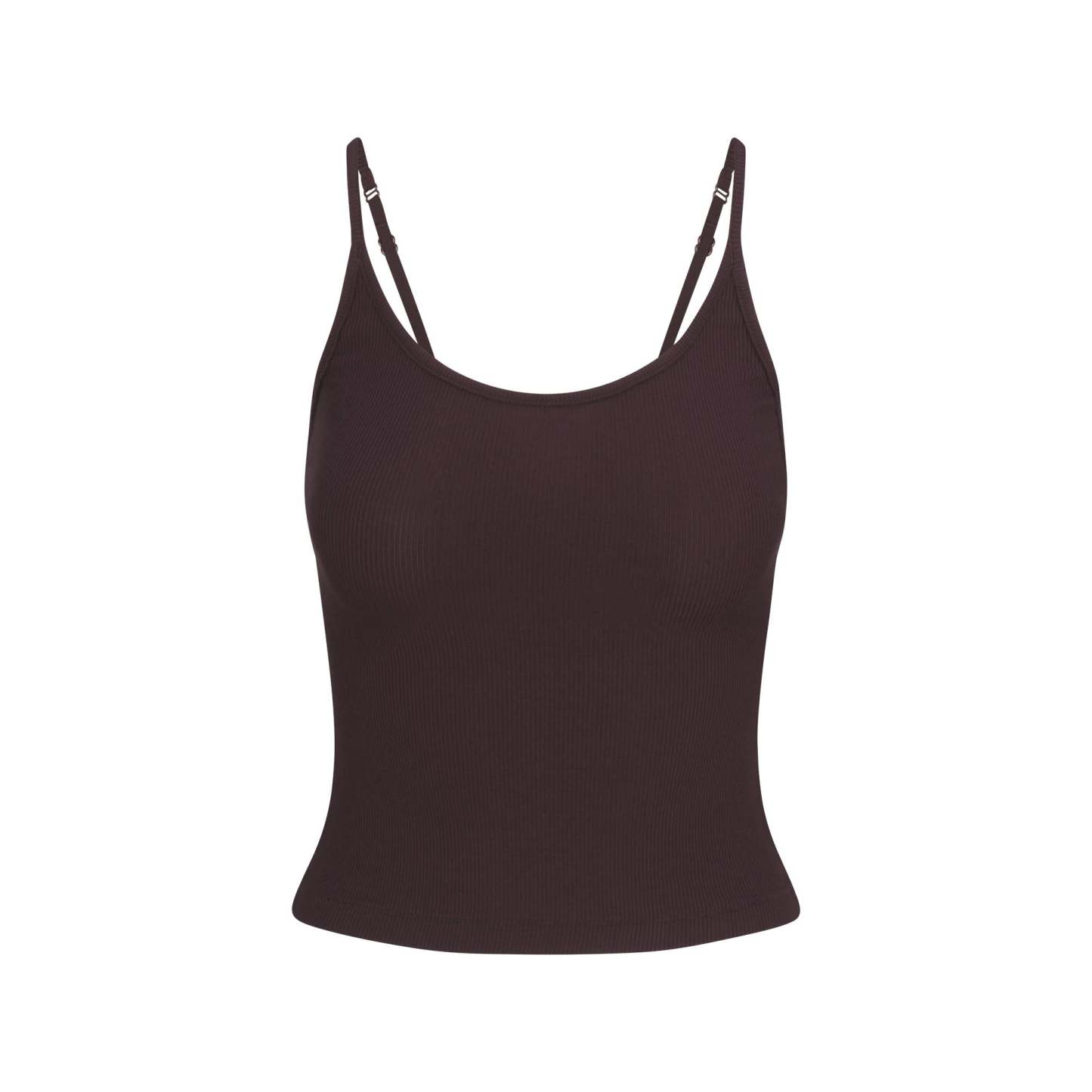 Dream in comfort. Made with our ultra-soft modal ribbed fabric, this sleep set includes a relaxed tank with a scoop neckline, adjustable straps, and SKIMS logo detail at the center back neck. Features a straight leg pant with a soft knit elastic waistband and interior adjustable drawstring. Fits true to size.