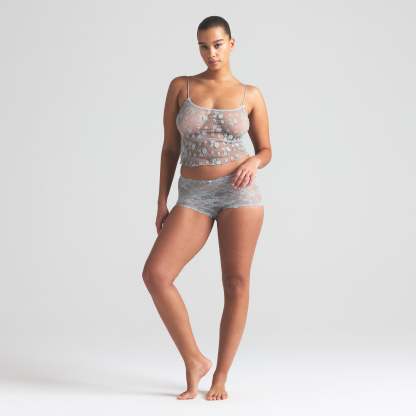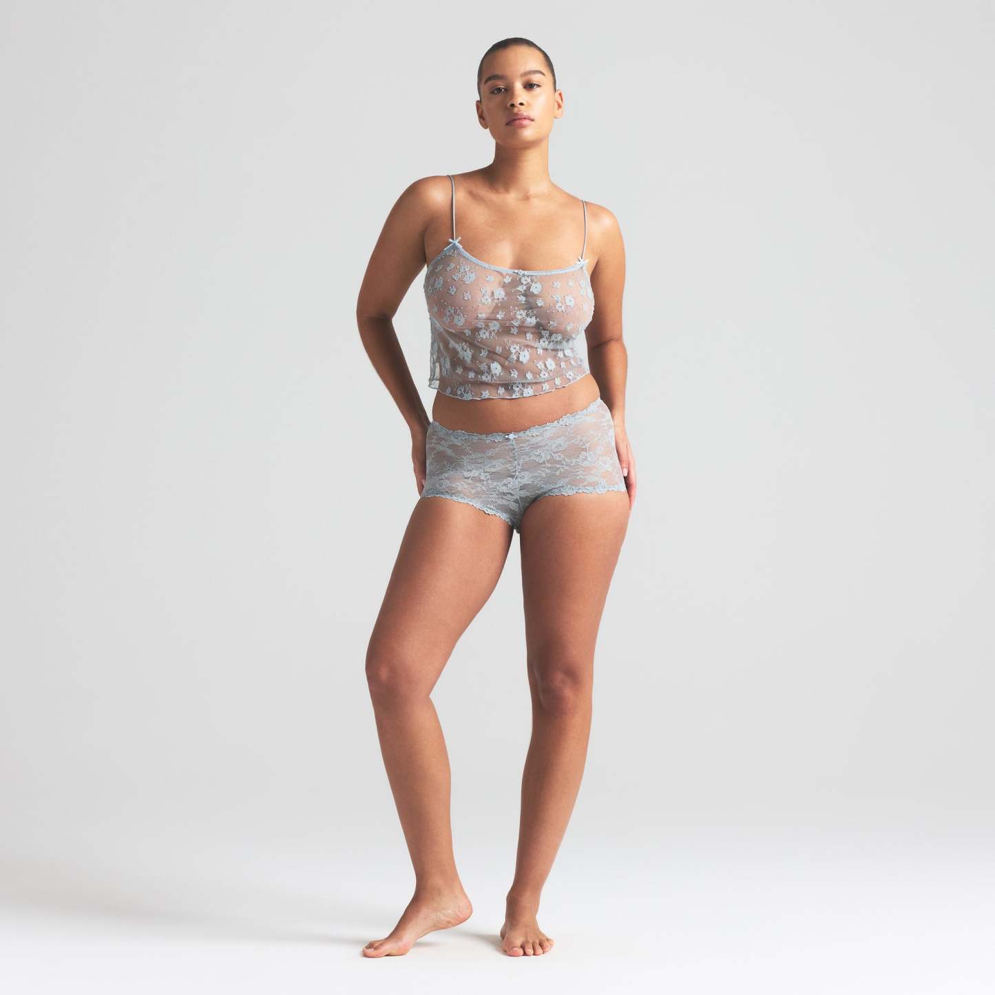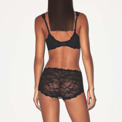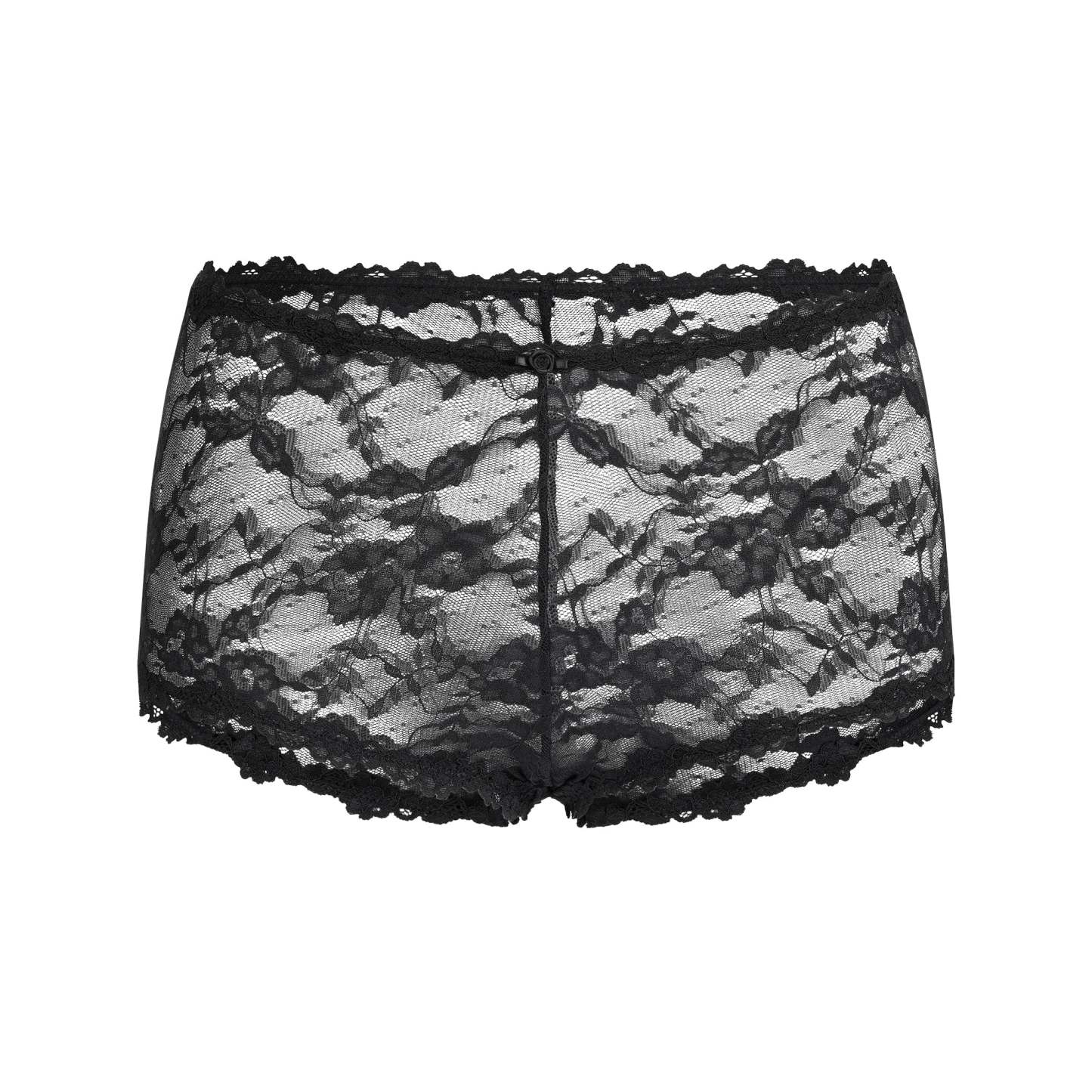 A sultry, sheer boy short panty with stretchy all-over lace that complements your curves perfectly. Features a mid-rise fit, lace trim along the waist and leg opening, a rosette detail at the center front, full back coverage, and a cotton gusset. Fits true to size.
