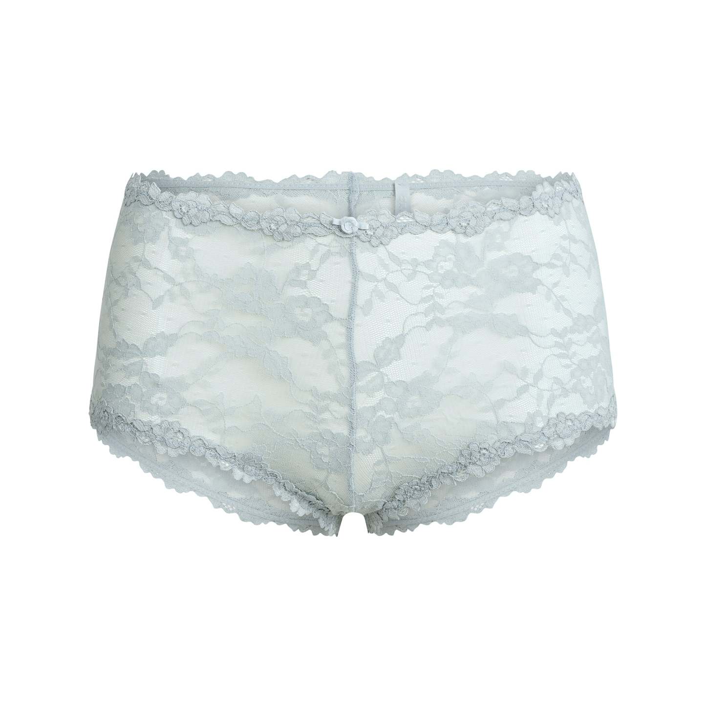 - Mid rise boy short, Lace trim along waist and leg opening, Rosette at center front, Maximum back coverage, 100% Cotton gusset