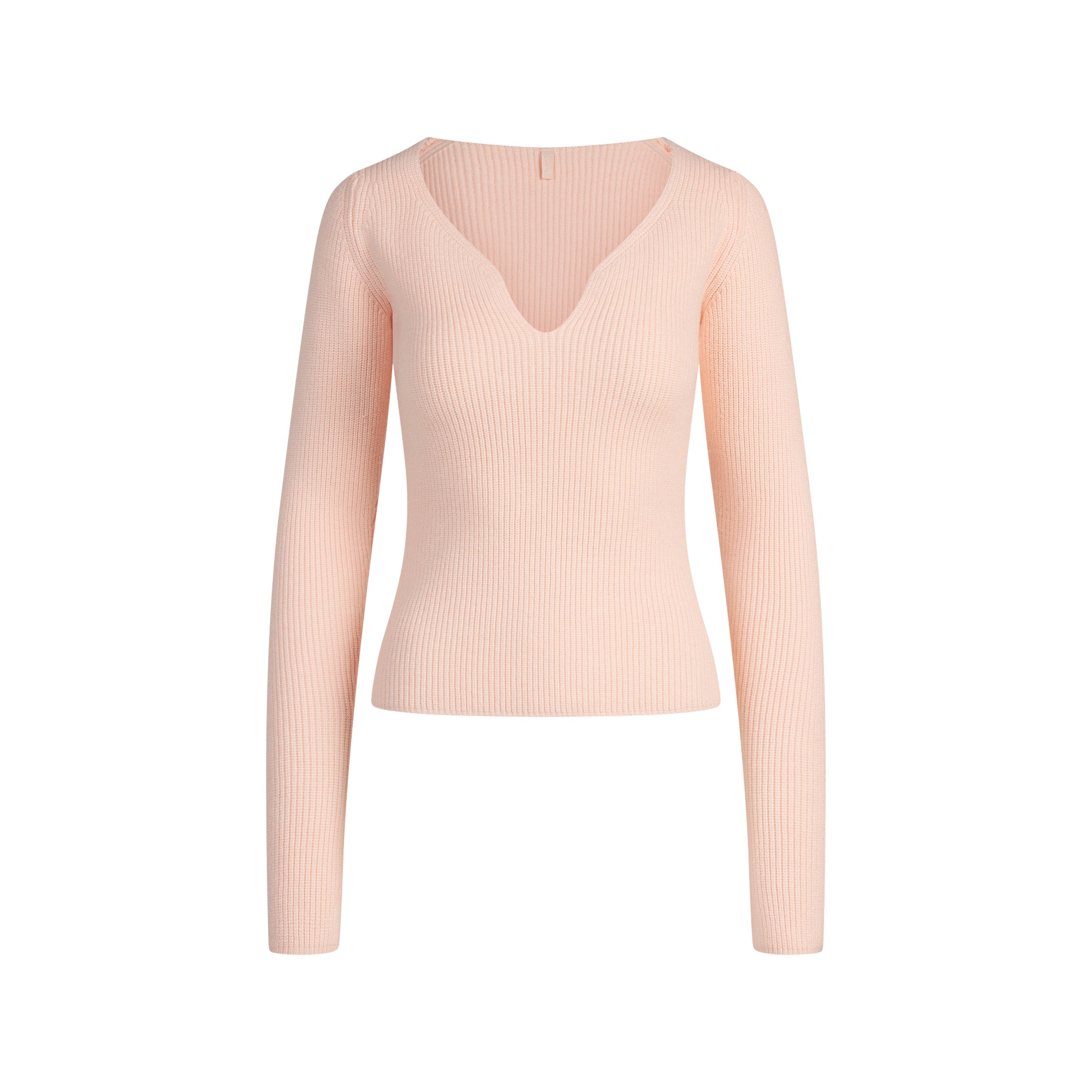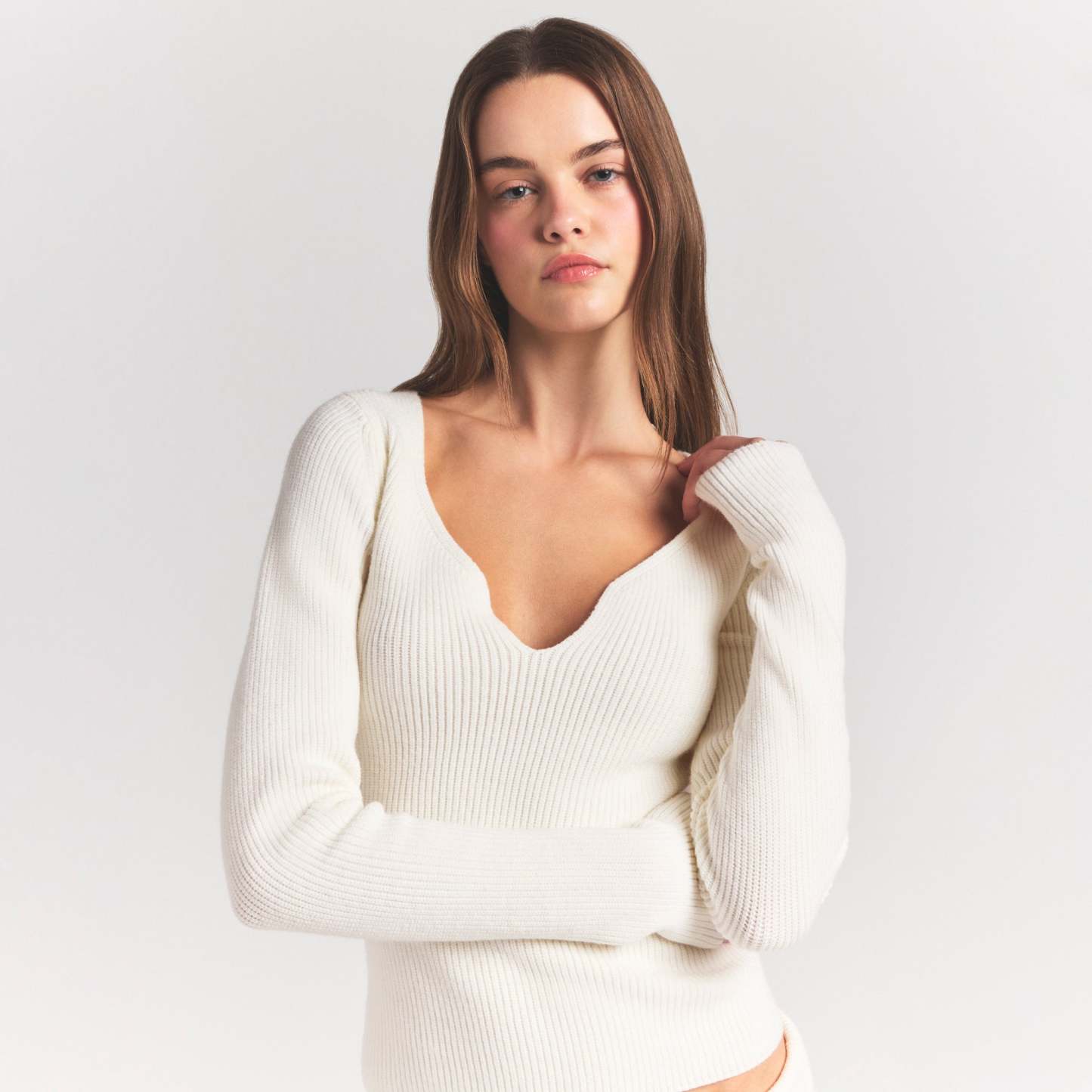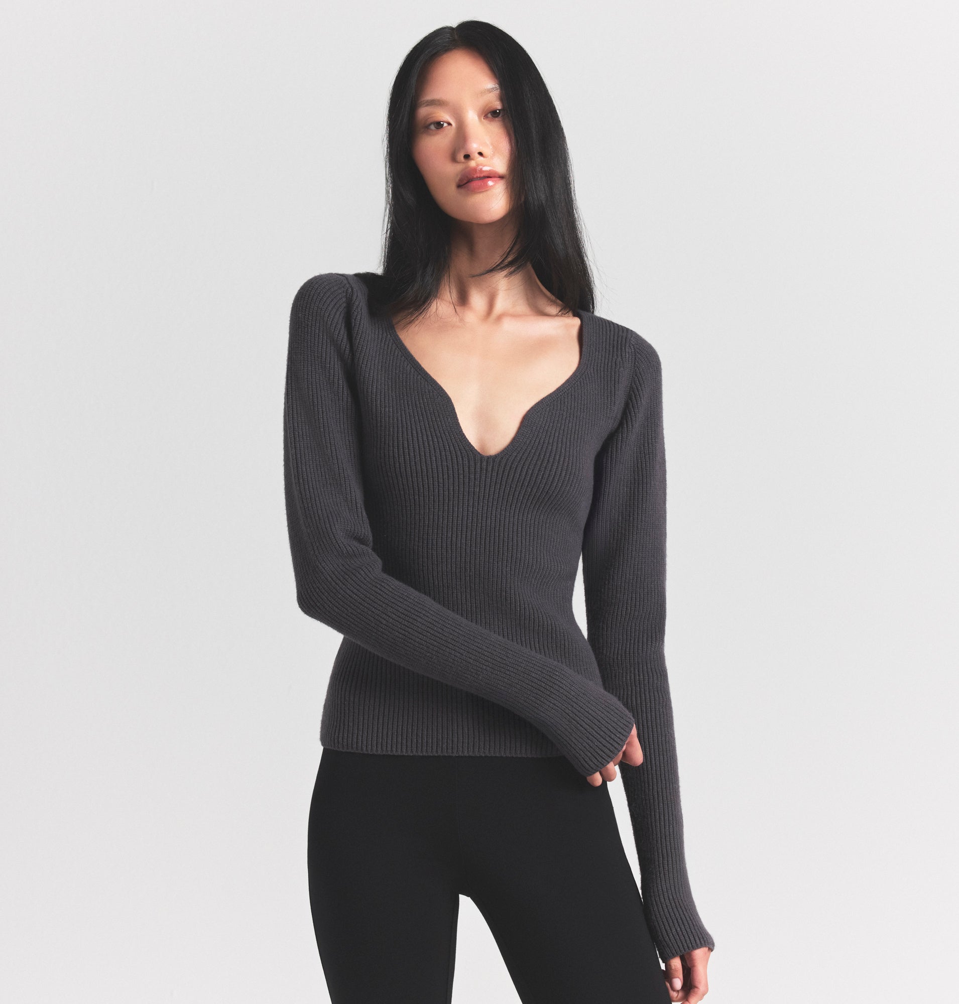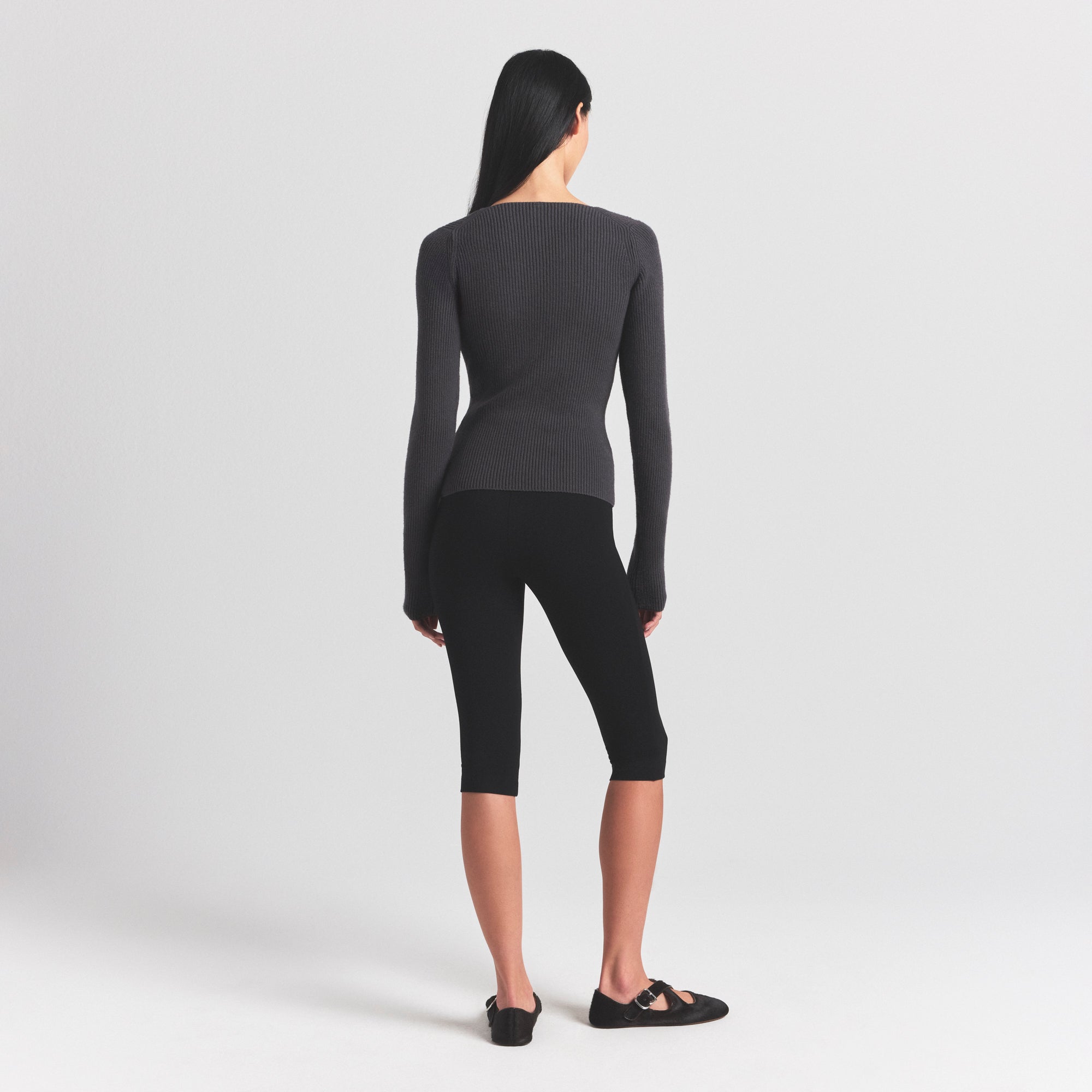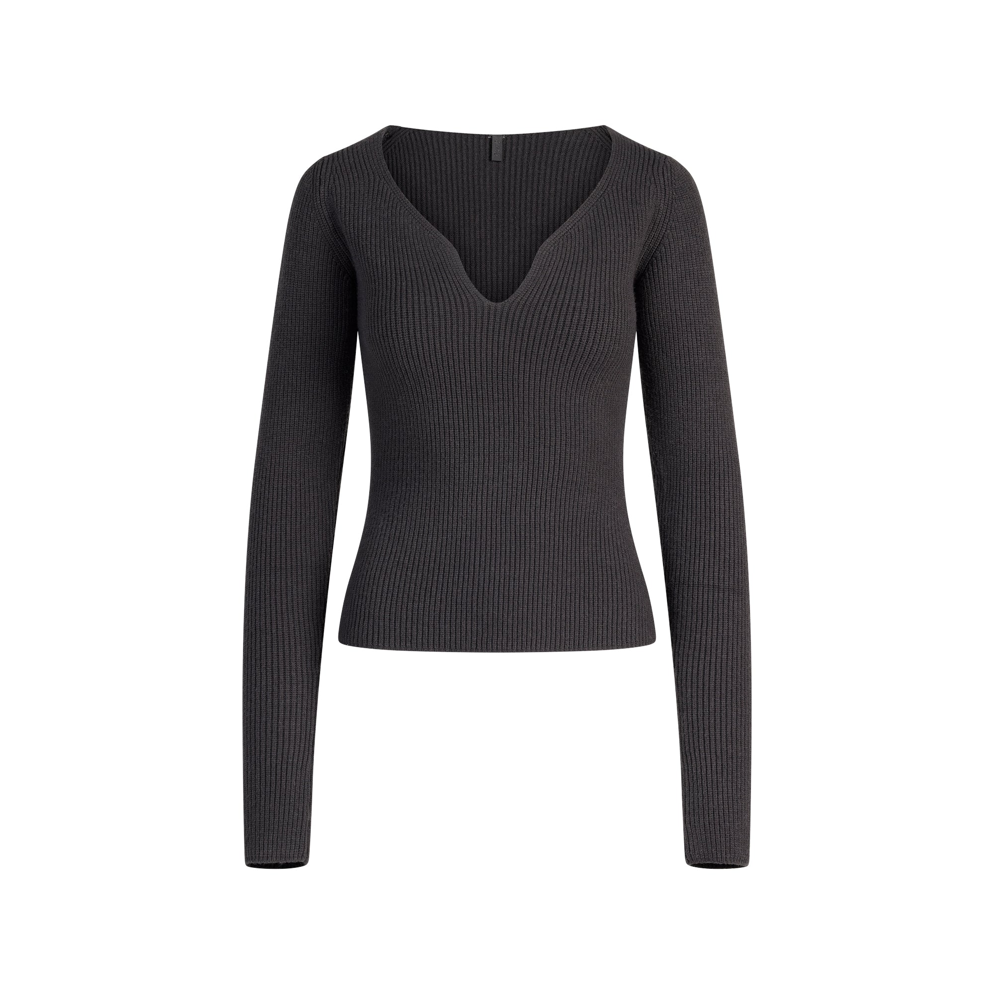 A little bit snuggly, a little bit sultry. With an ultra-flattering cut and a cozy ribbed knit fabric, this sweetheart-neck long sleeve can be dressed up or down to suit your mood.