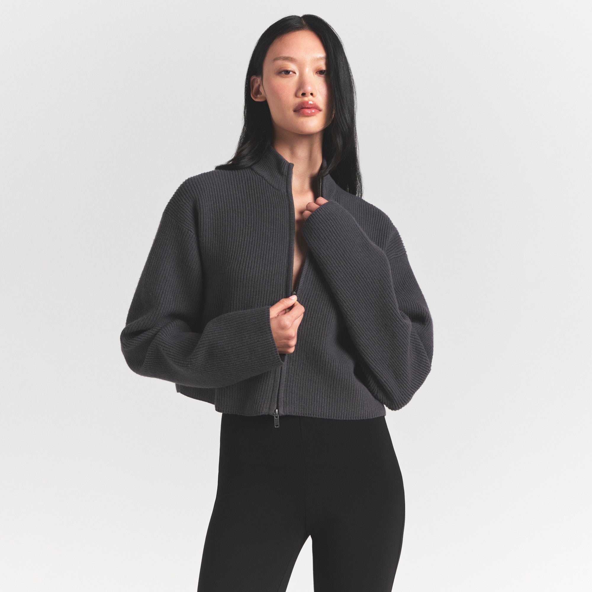 Peak cozy, but make it polished. This mock-neck sweater is an effortless way to elevate any look. Featuring a soft, plush knit, center zip, and a relaxed fit.