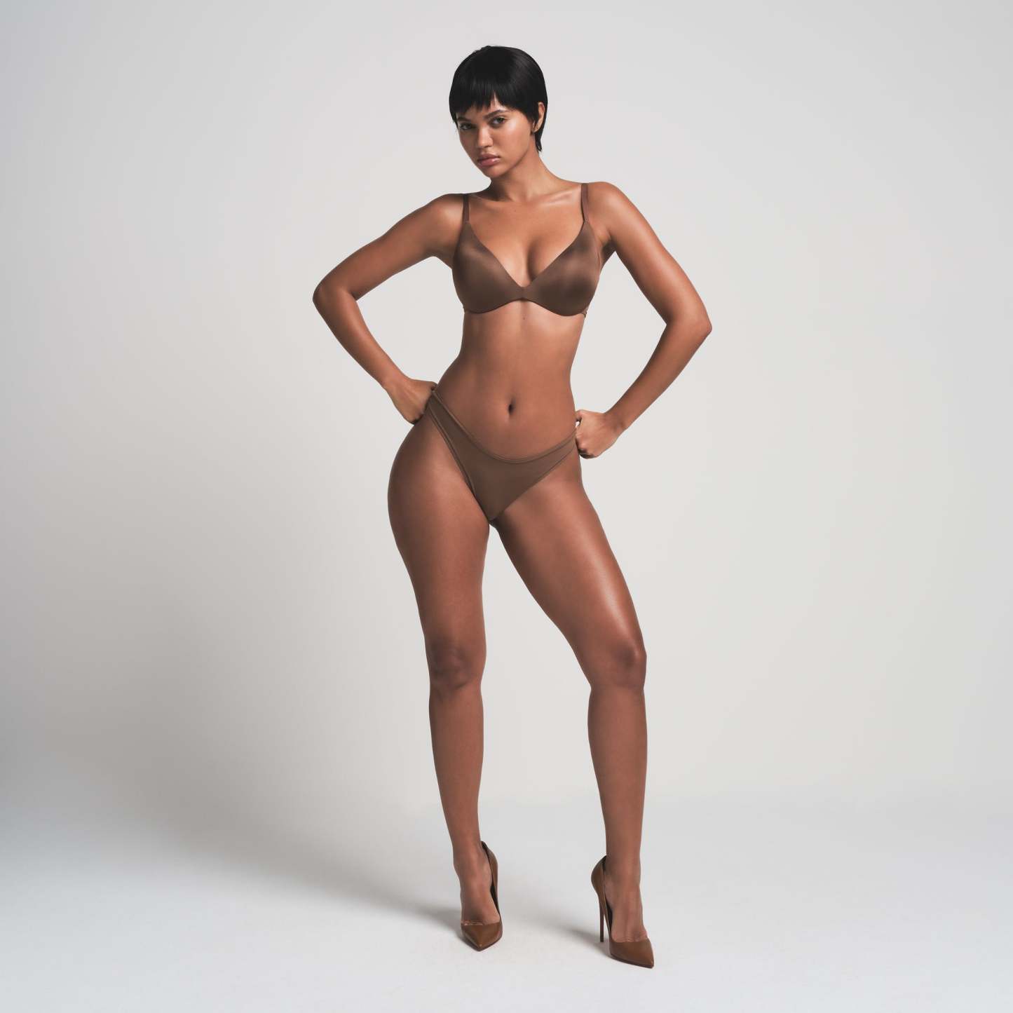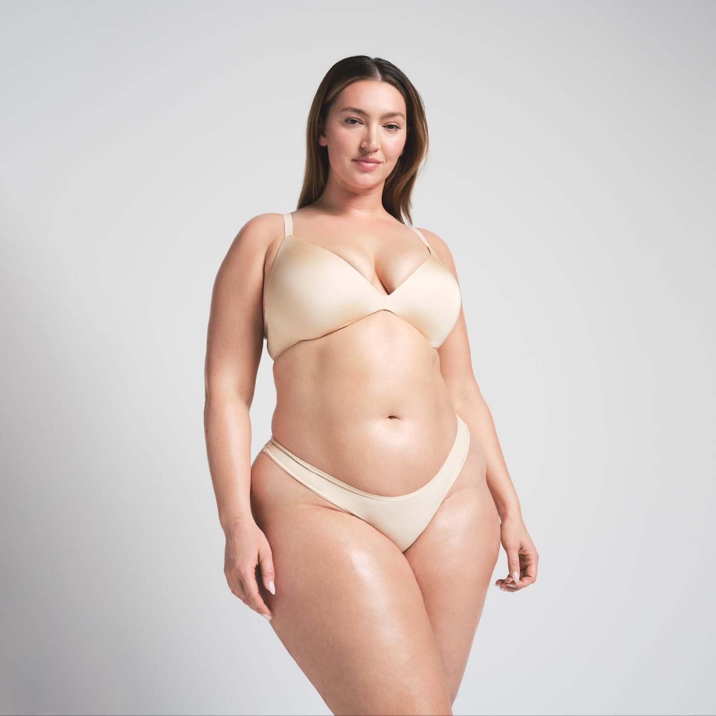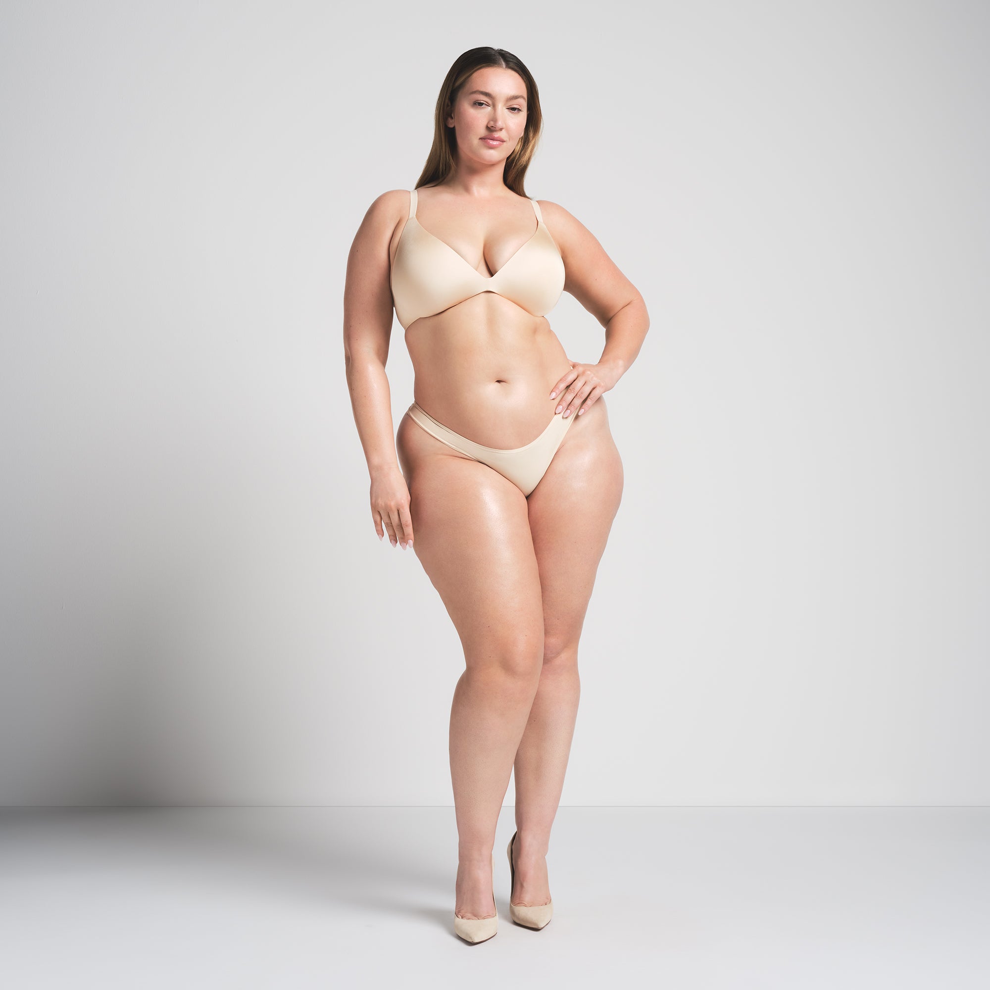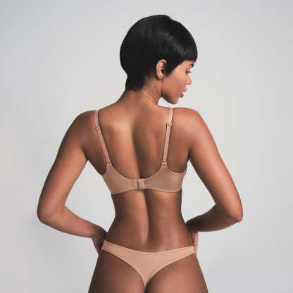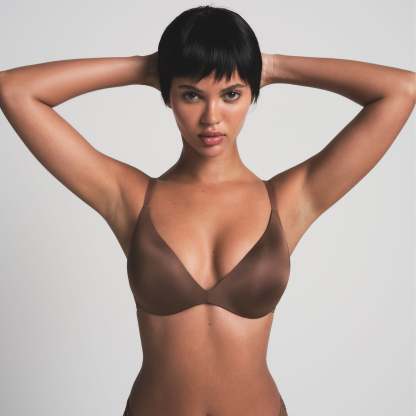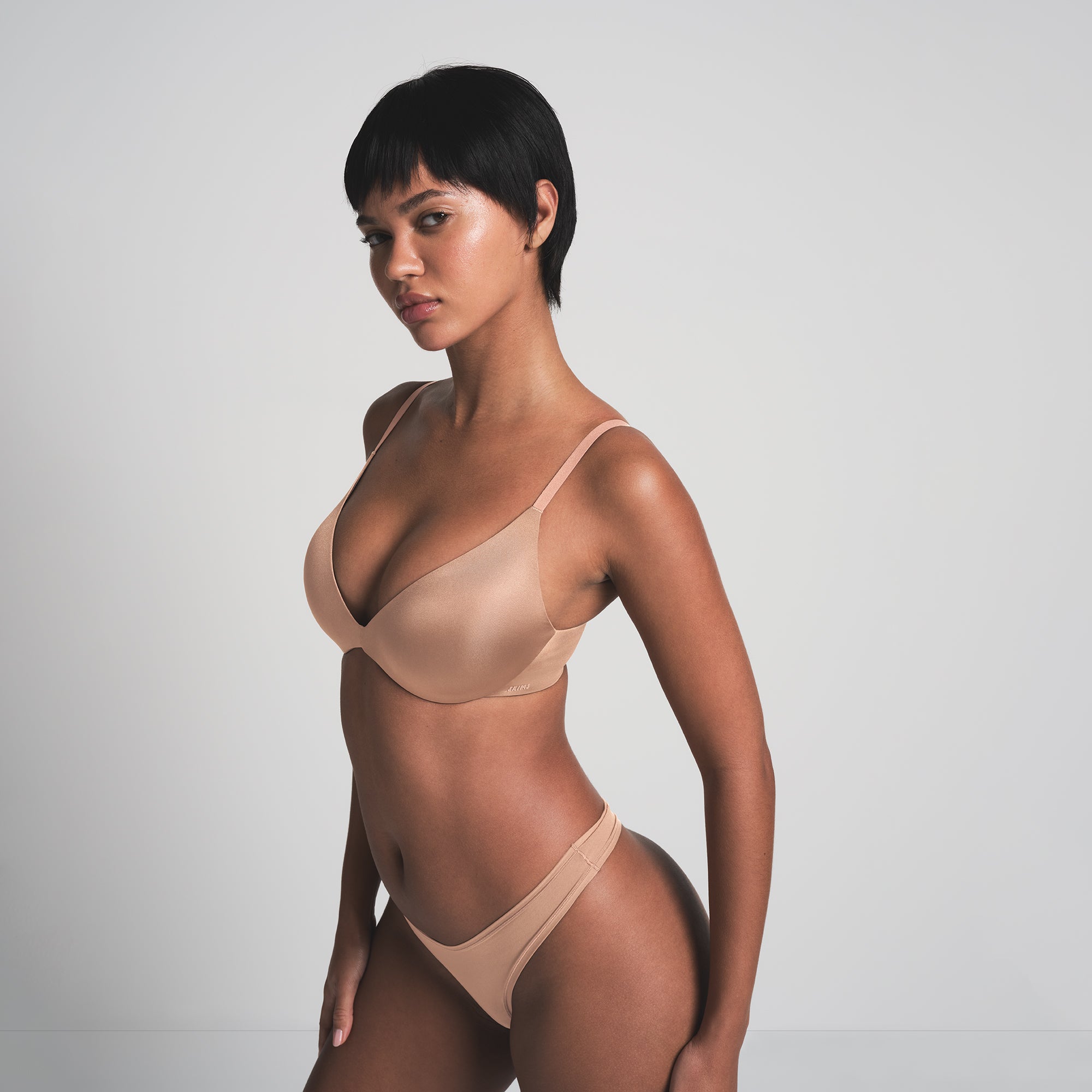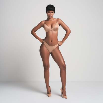 Boost your bust and maximize your cleavage in this comfortable, wireless plunge super push-up bra that adds one cup size and provides a supportive lift. Features fully adjustable straps, foam pads, wide microfiber wings for smoothing, a tonal silicone SKIMS logo at the front wing, and a hook and eye back closure. Fits true to size.